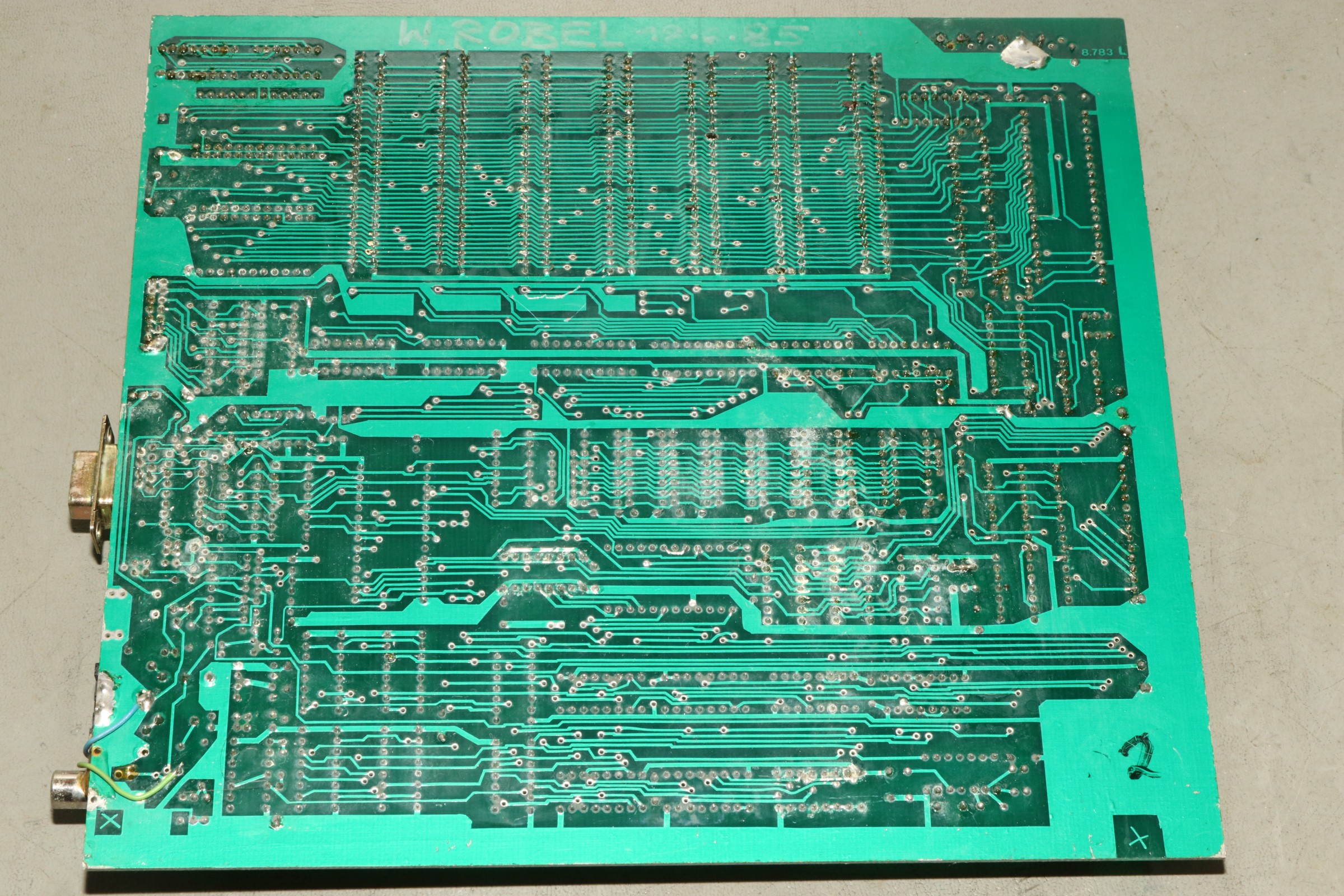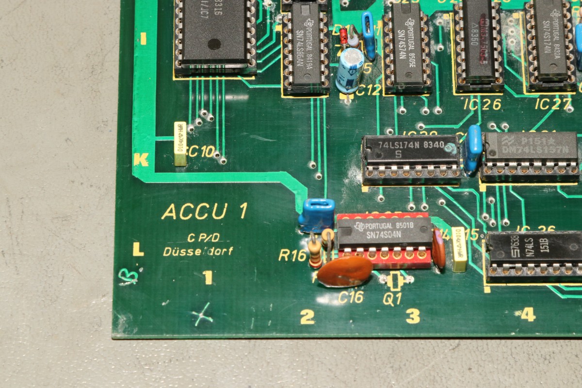 {ACCU 1 - APPLE ][ Clone} Der ACCU 1 ist ein seltener Clone eines APPLE ][ und er hat für mich eine ganz besondere Bedeutung! Diese Platine war nach dem ZX-81 mein erster "richtiger" Computer, mit dem man auch sinnvoll programmieren (sowohl in Basic, als auch in Maschinensprache) konnte. Und es gab auf 5 1/4 Zoll Disketten Unmengen von Spielen, mit Sound und sogar in Farbe (wenn ich denn einen Farbmonitor besessen hätte...). Der Clone ist von der Firma CP/D Düsseldorf - über die ist leider im Netz nichts mehr zu finden. Hier noch die Rückseite in voller Schönheit. Die unbestückte Platine hab ich um 1984 von einem Klassenkameraden gekauft, die gab's billig, weil die Platine zu stark beschnitten war und man eine Leiterbahn per Kabel flicken musste. Der Quarz war ab... ich hab ihn mal ersetzt... Und dann wollte ich es wissen: geht die Platine nach so vielen Jahren noch? Wow! Das hätte ich nicht gedacht! Die Investition in gedrehte IC-Sockel hat sich doch gelohnt... Und dann sah ich noch meine eigene Beschriftung auf der Unterseite... Leute, wie die Zeit vergeht... 18.06.1985. Ein Jahr vor meinem Abitur. Ich hatte eigentlich keine Ahnung, was das für ein Computer wird, aber ich wollte ihn auf jeden Fall haben... Aber was ist ein Computer ohne Eingabemöglichkeit? Eben: sinnlos! In den Weiten meiner Elektroschrottmessiedeponie war doch noch was... genau... eine ELZET 80 Tastatur mit Parallelkabel. Dreckig und vergilbt... aber immerhin mit Reset-Knopf! Ich konnte mich nicht mehr erinnern, ob ich die je an meinem ACCU angeschlossen hatte, aber der Stecker passt, die Kabel sehen nach denen aus, die ich mal bei Conrad gekauft hatte... und die Pinbelegung scheint zu stimmen. Da ist in der Tastatur mal wieder fast so viel Rechenleistung wie im Computer. Im EPROM ist das Controllerprogramm und man kann dort wohl auch Sondertasten einprogrammieren... Ein NE555 für den sauberen Reset - ja, das hatte ich mal gelötet. Und hey: die Tastatur tastet! Nun bin ich schon einen guten Schritt weiter. Und da hab ich auch noch mein cooles Computergrafik-Buch gefunden, welches ich dereinst selbst in einem Ingolstädter Buchladen für teuer Geld erstand... Nächstes Ziel: Diskettenlaufwerk anschließen. |