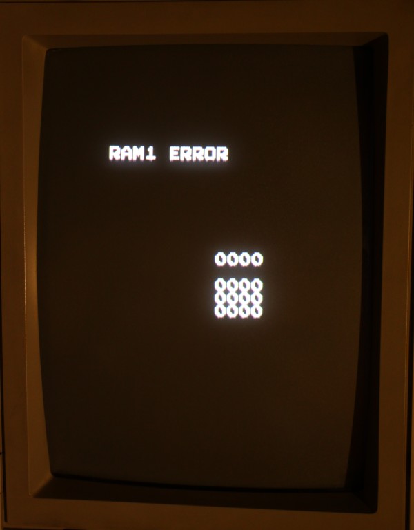 {Diagnose} Galaga 88 liefert einen eindeutigen, aber nicht dokumentierten Fehlercode nach dem Aufstart. Ursache war ein nicht nachvollziehbarer Kurzschluss "irgendwo" auf der Platine wg. loser Kabel... RAM1 Error steht wohl im User Manual, aber nicht mit den Adressen 0000 danach... ![]()