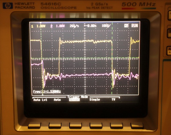 {Fehlersuche} Laut Handbuch bezieht sich der Fehler 1 auf die drei schnellen RAMs im rechten unteren Eck der CPU-Platine. Also ist eine Überprüfung der dortigen Adress-, Daten- und Control-Signale angebracht. ![]() ![]() {Reparatur} Leider ändert der Austausch der RAMs nichts am Verhalten. Das Signalbild ist gut, wie man am Beispiel von OE# und D0 erkennen kann. Keine Signale, auch nicht solche bei den benachbarten Speicherbausteinen sind irgendwie korrupt. Somit vermute ich einen Defekt in einem der umliegenden Custom-ICs... Da versagt meine Kunst mal wieder... schade. ![]() ![]()