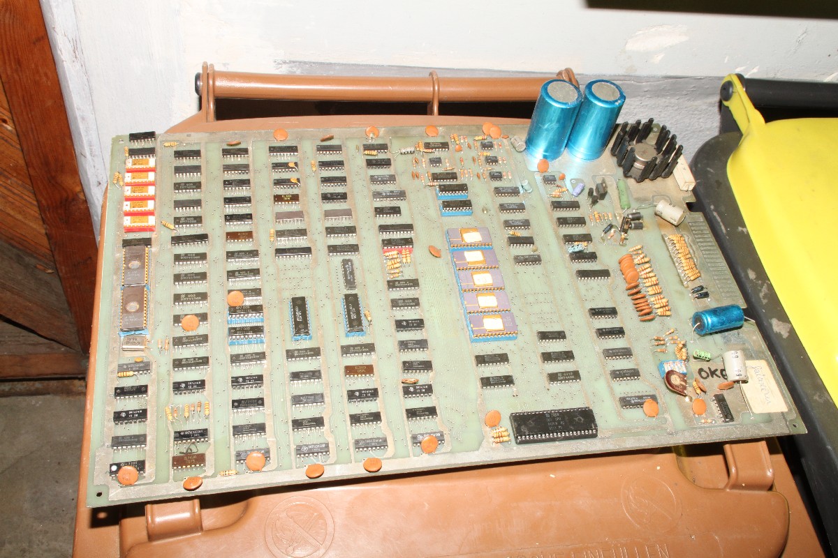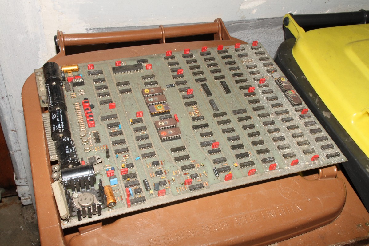 {Fehlerbeschreibung} zwei Galaxian Bootleg PCBs in traurigem Zustand... {Diagnose(n)} Die Inbetriebnahme der "guten" Galaxian liefert das ernüchternde Ergebnis: Bild ja, aber Programm startet nicht (statische wirre Zeichen auf dem Schirm). Das sieht nicht gut aus. Ich entscheide mich für radikale Maßnahmen: die korrodierte PCB dient als Ersatzteilspender, die "gute" wird aufgebaut. Ich werd' noch irre... Alle Latches und Buffer auf dem Datenbus scheinen gut zu arbeiten, ich werde nicht herumkommen, alle Kandidaten auszulöten und zu ersetzen, da die mittleren Logikpegel immer noch vorhanden sind und das Beschreiben des Video-RAMs stören. Legt man den Finger auf das RAM, so kann man die lustigsten Effekte am Bidschirm zaubern, weil der 50Hz Netzbrumm den Logikpegel zufällig gerade mal so über die High-Schwelle hebt... Ach ja, Bootleg-Platinen sind extrem empfindlich, was das Auslöten mit dem Heißluftfön angeht... 350°C sind da schon fast zu heiß, das Glasfaserzeugs delaminiert irre schnell... |