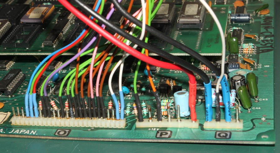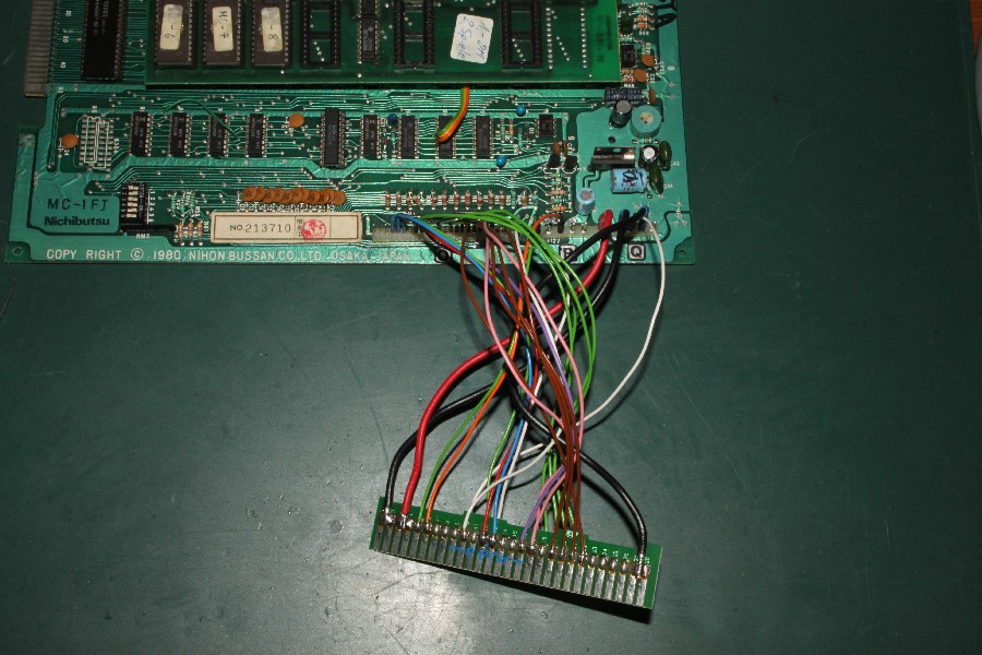 {Adapterbau} Moon Cresta gibt es offensichtlich in verschiedenen Varianten: mit Platinenstecker und mit dre Pfostensteckerleisten. Letztere ist mir in die Finger gefallen. Die Frage war jetzt: Stecker entfernen und Kabel einlöten oder Kabel sauber an die Stecker löten. Da ich ein Freund von Originalem bin, habe ich mich entschlossen, die Stecker dran zu lassen und die Kabel an die Pfosten zu löten. Sauber, versteht sich.