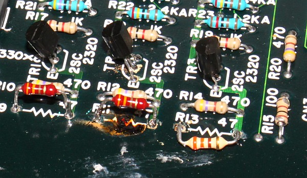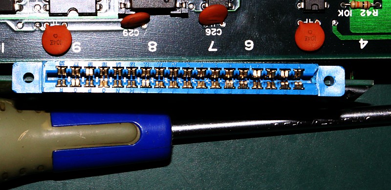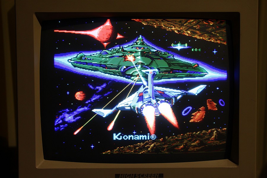{Fehlerbeschreibung} Die Farben sind zu dunkel, im Schwarz leicht rötlich, wenn man hell aufdreht. Außerdem ist einer der Buttons daueraktiv (Item-Select, sehr lästig...), damit wird man ganz schnell ganz schnell, weil das Speedup Item das erste ist.... {Diagnose} Wer findet den ersten Fehler? {Reparatur 1} Klar: 330 statt der nötigen 47 Ohm, da hat wohl mein Vorgänger nicht die richtigen Werte in der Grabbelkiste gehabt! Die vielen verschiedenen Widerstände oben drüber sind die D/A-Wandler, danach die Videoverstärker für R, G und B mit Ausgangswiderstand 50 Ohm (47)... {Reparatur 2} Und schon sind die Farben wieder hell und klar, wie am ersten Tag. Und Nemesis ist eines der oldschool-Bonbon-bunten Games! Jetzt das Problem mit dem Select-Knopf. (ist es eigentlich normal, dass Nemesis Button 3 als Fire-Button benutzt?) Ein Blick auf den Konami-Adapter offenbart Grausames: hunderte von Platinen haben die Federkontakte ruiniert, bis hin zum Kurzschluss (15/O)... Aber daran lag es nicht: einer der Optokoppler hat einen Schuß, hätte man halt sofort alle austauschen sollen... {Ergebnis} PC817 ist ein Ersatz, die Original 2401 von NEC gibt es nicht mehr, noch nicht mal mehr ein Datenblatt... Schöne Farben, schöne Optokoppler - Patient lebt wieder. |