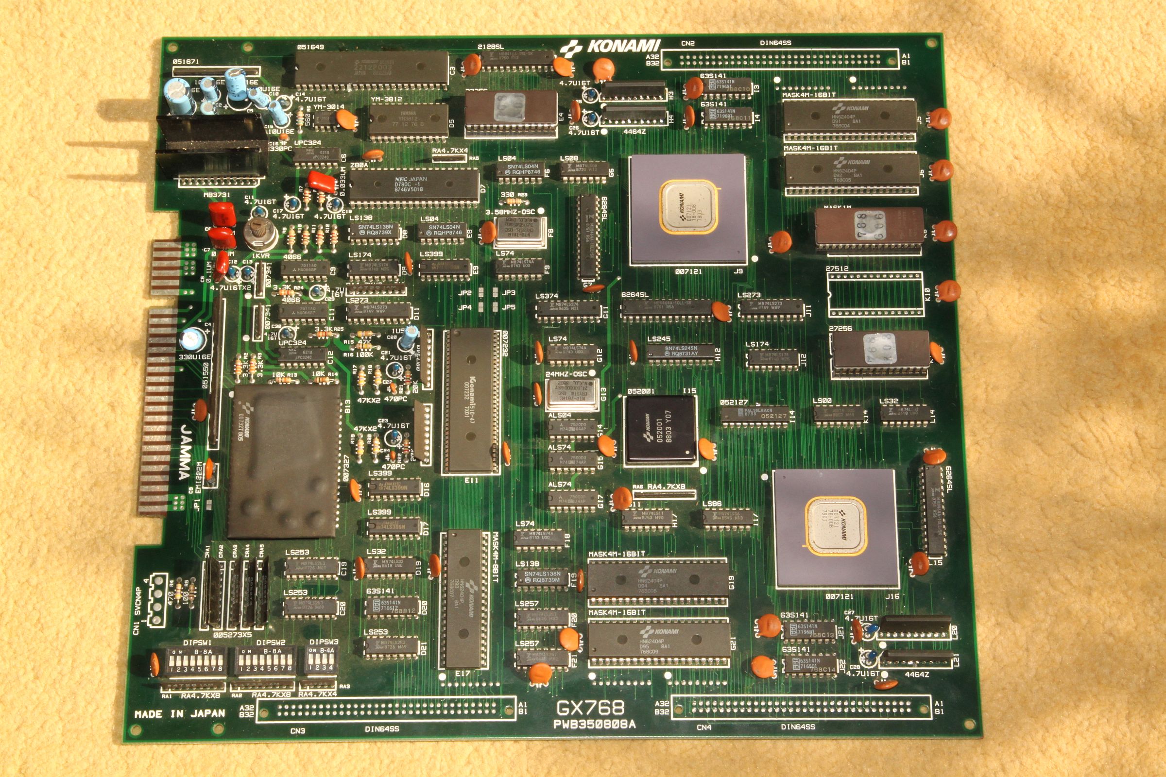 {Fehlerbeschreibung} Eine Haunted Castle (Uäch... Konami Custom Hell...) mit korrupten Sprite-Grafiken {Diagnose} Der Besitzer hatte bereits die Video-RAMs gewechselt, ein bekannter Fehler auf dieser Platine, die außerdem zu defekten Durchkontaktierungen neigt, die Dinger sind hier echt extrem klein... Der RAM-Tausch führte offensichtlich zu einer signifikanten Verschlechterung... {Reparatur} Wenn man die Grafik-RAMs an den Beinchen berührt, ändert sich das Fehlerbild in "noch schlechter"... Das deutet auf nicht verbundene Signalleitungen hin. Ich vermaß die Signale an den Video-RAMs... Eine der Adressleitungen war dauernd Low, kein gutes Zeichen! Um herauszufinden, wo diese Adressleitung, die offensichtlich durch vorheriges unachtsames Auslöten unterbrochen worden war, im Custom verschwand, hoffte ich auf identisch aufgebaute Video-Einheiten und klingelte den "gesunden" Part durch. Schon war der Pin identifiziert. Nun mal probeweise den gleichen Pin auf der Nachbarseite mit dem dortigen RAM verbunden: Juhu... schon klappt es auch wieder mit den Sprites. {Reparatur Teil 2} Oh Mann, es wäre ja so schön gewesen, aber nach genauer Durchsicht zeigt sich, dass immer noch Sprites völlig fehlen: der Schriftzug im Titelbild, die Figuren am Anfang, fliegende Knochen und Steine... Also tausche ich auch noch die beiden anderen RAMs. Juhu... schon klappt es auch wieder mit ALLEN Sprites. |
