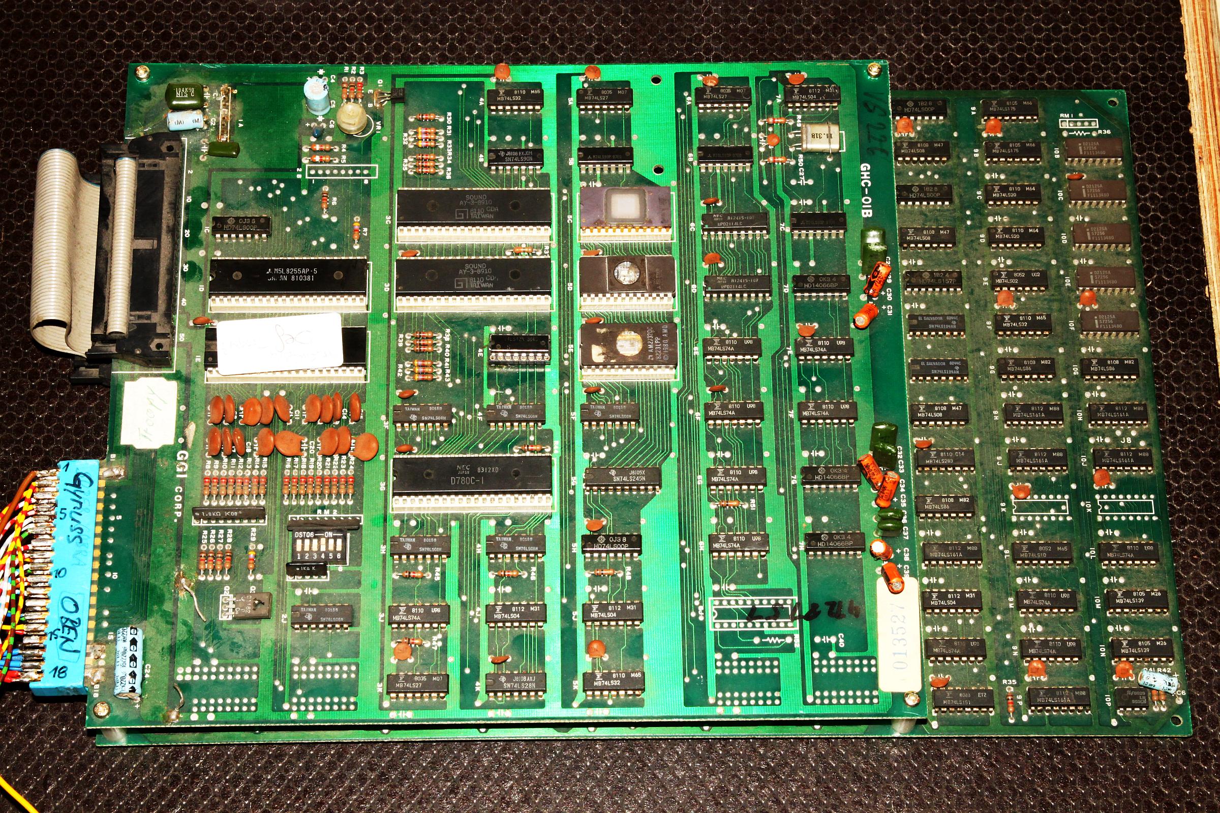 {Fehlerbeschreibung} Ein Spiel, welches es nicht gibt... Troopy geizt im Internet mit Infos, es handelt sich um ein Mr. Kougar-Clone. MAME kennt auf jeden Fall die Programm-ROMs nicht, dazu aber später mehr. Der Patient wurde eingeliefert mit schweren Grafikdefekten... {Diagnose} Die ollen EPROMs sind so marode in ihren Fassungen, dass alleine der Vorgang des Extrahierens für das Auslesen die Zahl der Fehler um mindestens 50% reduziert hat. Hier werde ich mal gedrehte IC-Sockel spendieren... Fortsetzung folgt. {Reparatur} Eine grundsätzliche Platinenreinigung und der Austausch der martoden Sockel gegen gedrehte IC-Fassungen zeigt Wirkung: ein Großteil der Streifen ist verschwunden, man kann das Spiel schon mal erahnen. Die ausgelesenen ROMs habe ich mal in MAME zur Emulation bei Mr. Kougar eingefügt: {Reparatur Teil 2} Woher kommen jetzt die GFX-Fehler? Manche Pixel flackern, sind also nicht stabil. Das deutet auf grenzwertige Datenpegel hin. Das Oszi zeigt: die Daten der zwei Mostek-EPROMs sehen nicht gut aus, 3V sind zu wenig: ...und nach dem Brennen neuer 2716-Eproms eines alternativen Herstellers (Intel) sieht das doch richtig gut aus. Nur die gelben Punkte in der untersten Zeile bekomme ich nicht weg... |