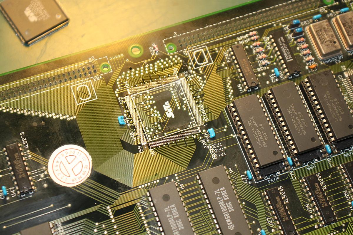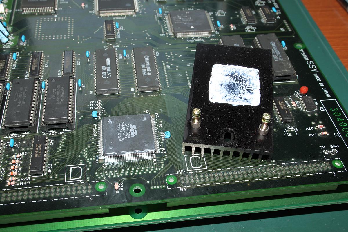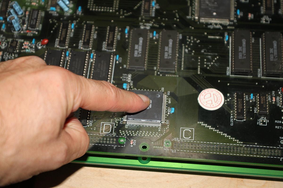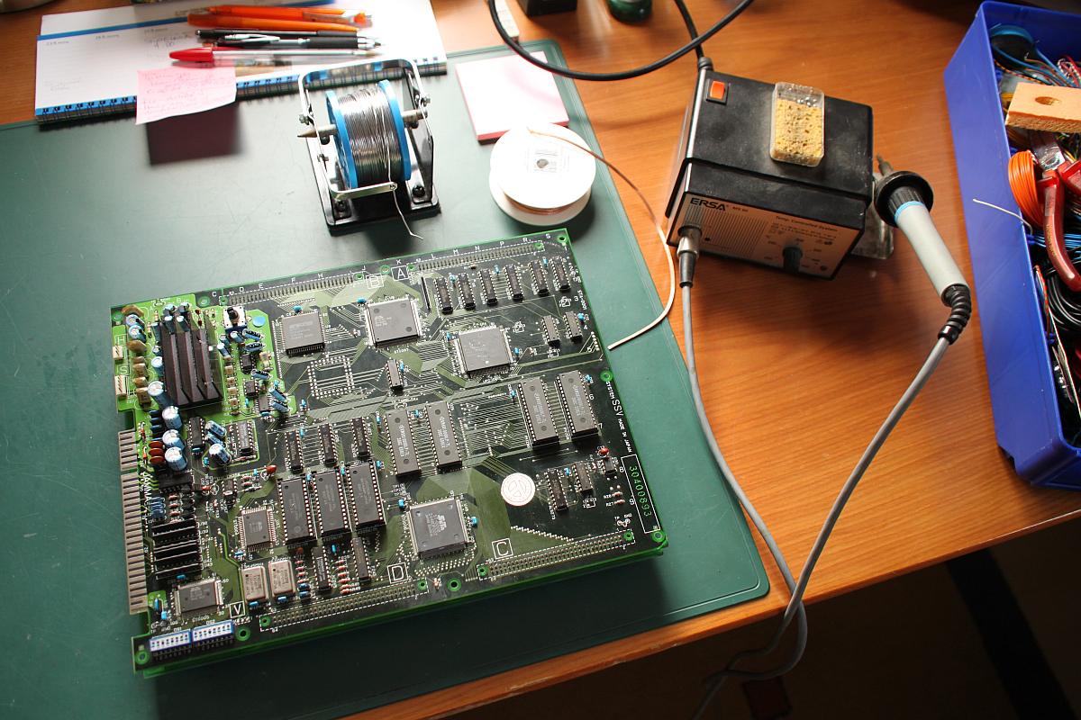 {Fehlerbeschreibung} Grafikprobleme, ROM-Fehler - bei dieser Baureihe ein häufiges Problem, doch dazu später mehr. Leider war ich bei der Reparatur dieses Kandidaten nicht nur nicht erfolgreich, sondern ich habe zum ersten Mal ain in der Elektronikfertigung bekanntes Phänomen erlebt: den Popcorn-Effekt. {Diagnose} Die Grafik-Customs auf dieser Platine sind mit Kühlkörpern bestückt, die aber - konstruktiv blöde - nur auf einer Seite verschraubt werden können. Somit ist eine asymmetrische Belastung garantiert und die Chips strecken irgendwann die Beinchen der unbelasteten Seite in die Luft. Zumal sie im Betrieb recht warm werden... Der Schaden äußert sich in Speicherfehlern und - wenn das Spiel startet - in vielen bunten Streifen im Bild. Ein Fingerdruck auf den Custom kann den Betrieb wieder herstellen, aber so kann man ja nicht gut spielen... {Reparatur(Versuch)} So freute ich mich schon auf eine rasche Reparatur. Der erste Versuch, die Beinchen des Chips auf der einen Seite einfach festzulöten und das überflüssige Lot mit Entlötsauglitze zu entfernen, brachte leider keine Besserung. Also musste wohl oder über der Chip komplett runter und nach Reinigung der Kontakte wieder drauf. Eine Herausforderung bei den feinen Kontaktpins... Und dann geschah, was ich bisher nur von Erzählungen der alten Hasen aus der Elektronikfertigung kannte: der Popcorn-Effekt. Mit einem Knall wurde der Einsatz meines elektronich temperaturgeregelten Heißluftföns kommentiert. Zuerst dachte ich, die Leiterplatte hätte sich irgendwie verzogen, doch nach gründlicher Reinigung fiel mir auf dem Custom eine Unebenheit auf: {Fazit} Dass die Platine danach überhaupt kein Bild mehr hatte, war klar. Der Kunde war nachvollziehbarer Weise nicht beglückt und mich hat das Ergebnis auch nicht gerade zufriedener gemacht. Aber der Popcorn-Effekt ist ein seltenes Risiko, welches sich mit vertretbarem Aufwand nicht vermeiden lässt. Bauteile mit längerer Lagerdauer müssen in der Industrie stundenlang gebacken werden, bevor sie gelötet werden dürfen. Das geht natürlich bei einer solchen Platine nicht. Somit bleibt das Risiko für den, der sich an der Reparatur versucht! |