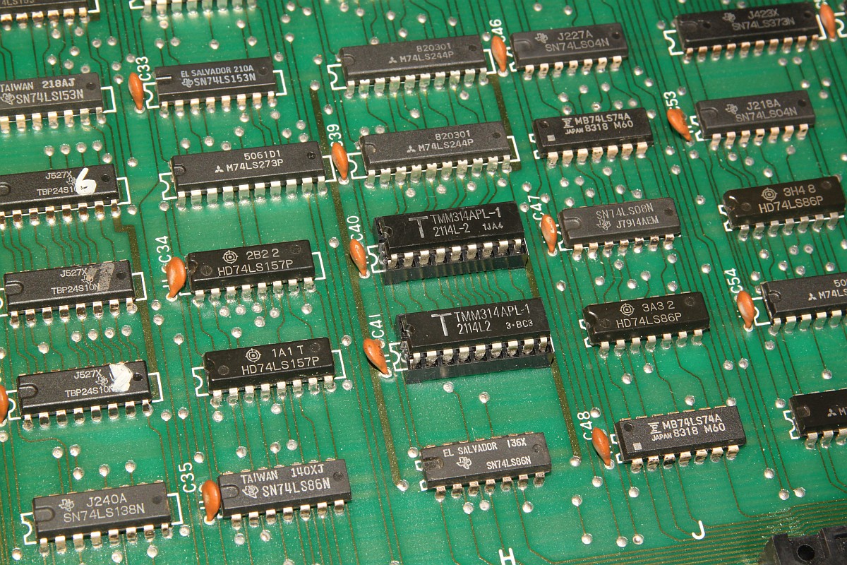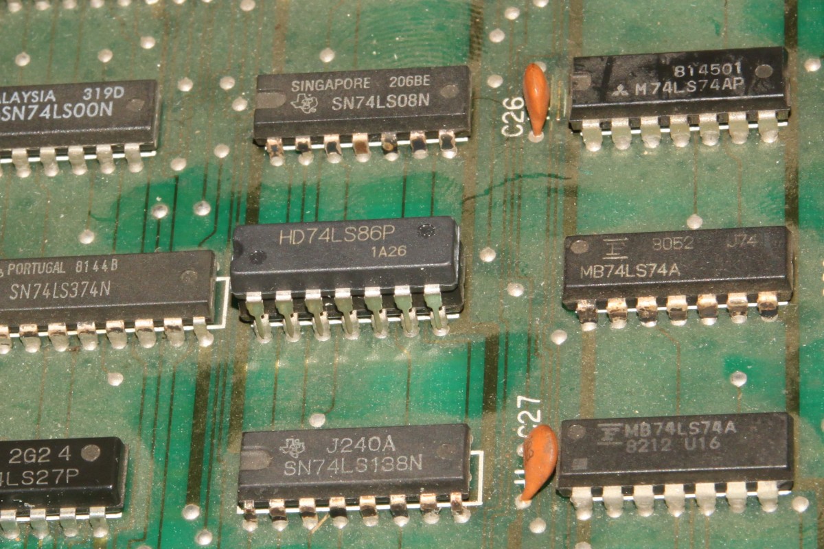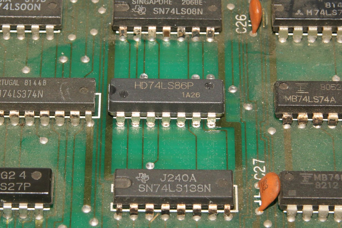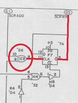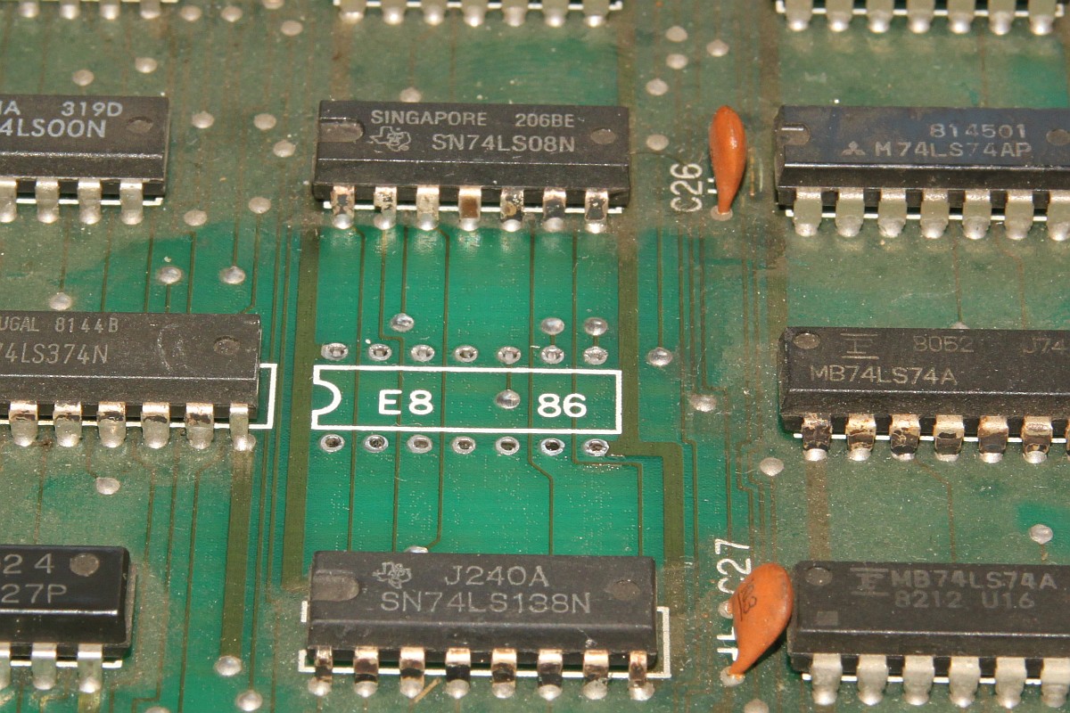 {Fehlerbeschreibung} Eine originale Capcom 1942 - Fehlerbeschreibung des Kunden: starke Grafikfehler im Hintergrund... {Diagnose 1} Upps, ja, die Fehler sind in der Tat stark. Seltsame Streifen, einfarbiger Hintergrund... Interessantes Detail: die Streifen scrollen ordnungsgemäß mit und verändern sich nicht. Es gibt aber auch keine anderen Hintergrunddetails... {Diagnose 1} Eine nähere Inspektion der Platine bringt einiges ans Licht, es wurde bereits umfangreich repariert: alle RAMs haben schon mal einen Tausch hinter sich. Ganz passabel gemachte Arbeit... {Fehlersuche} Die Hintergrundtiles... da ist der einsame 6116 neben den sechs GFX-ROMs für zuständig... einfach mal tauschen... Da ändert sich das bild doch gleich deutlich: jetzt sind die Streifen weg und es hagelt Zufallsklötzchen... Minecraft Style... Der Hintergrund bleibt trotzdem statisch. Also vermute ich, es wird nicht ins Tile-RAM geschrieben. Das Oszi meldet: kein Write-Impuls am RAM. Der Schaltplan führt mich über ein Flip-Flop (alles High) zu einem 74LS86-Gatte, dessen Ausgang irgendwas um 1,5V liefert... Das kann ja nicht gehen... {Reparatur 1} Huckepacktest und Logikaustausch, dann klappt's auch mit der WR#: {Reparatur 2} Eben wollte ich die 1942 versenden, hab noch mal den Jamma-Adapter vollbestückt, so mit Ton und allen Tasten und so... Kein Ton beim Einschalten. Mist. Ein wenig gespielt, plötzlich kommt Ton. Fazit: keine Schußgeräusche, die Hälfte vom Ton fehlt. Gut, dass es den umfangreichen Selbsttest gibt... die ersten 16 Töne gehen nicht. Das Ende vom Lied: {Fazit} Vom Sound-RAM-Fehler im Selbsttest sollte man sich nicht irritieren lassen, der kommt fast immer, es funktioniert aber trotzdem alles. Und nach Austausch des Soundgenerators knallt es auch wieder, wenn man wen trifft. |
