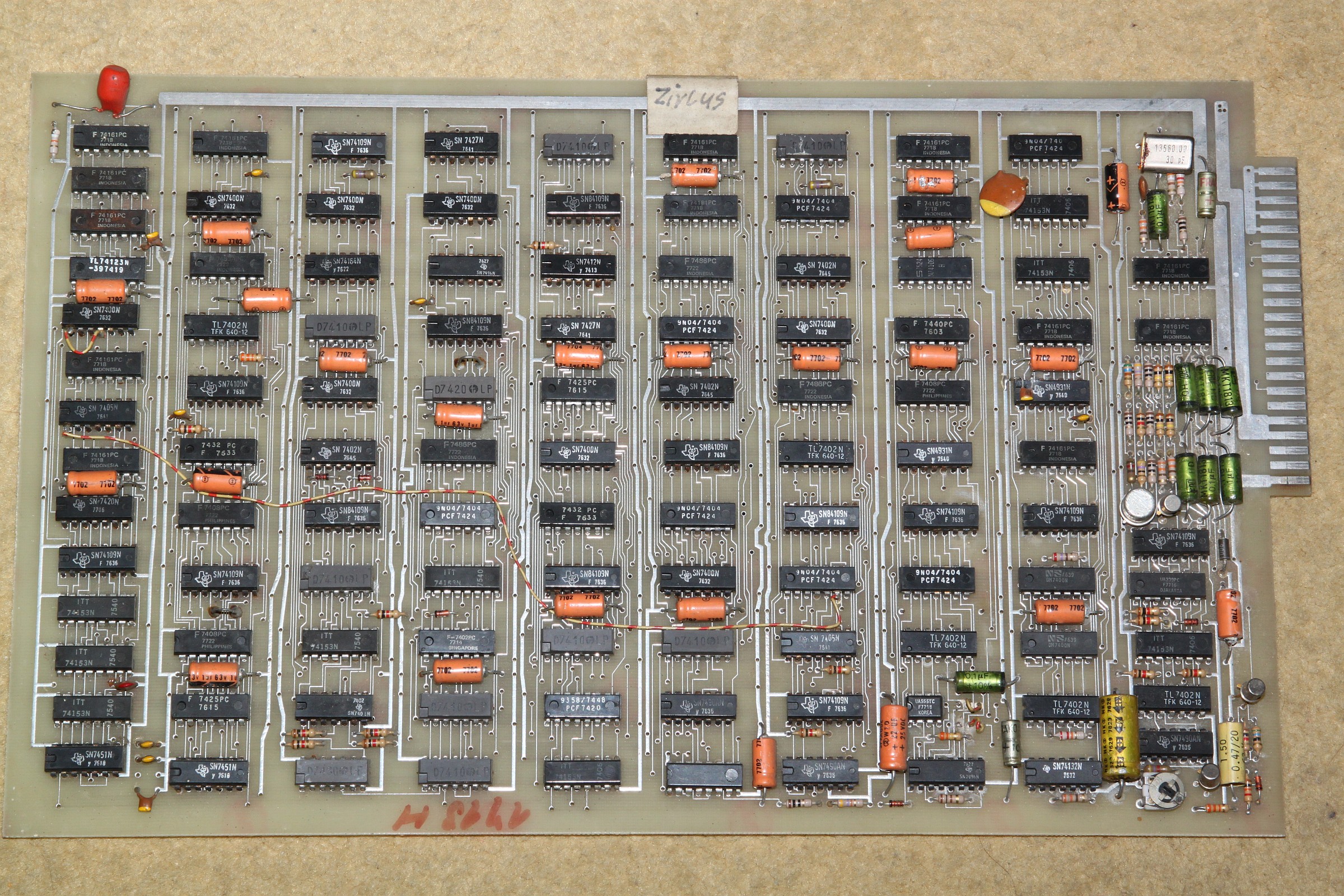 {Eine unbekannte diskret aufgebaute Arcade-PCB von Lich} Keiner konnte mir bisher etwas über diese Platine sagen. Von der Komplexität her scheint sie nicht besser, als irgend ein Pong-Clone zu sein... {Anschließen} Plus und Minus bei 5V sind schnell ausgemessen. Video ist da schon schlimmer... Also erst mal einen Adapter basteln, dann mit dem Oszi die Videosignale heraussuchen und dann feststellen, dass das Teil separate H-Sync und V-Sync liefert. Also muss ein Sync-Adapter her: {Erste Reparatur} Auf den ersten Blick ist schon mal der Quarz defekt, weil kein Takt kommt. Das ist schnell repariert und dabei auch gleich den zerbrochenen Widerstand am Quarz gefixt... {Nicht viel los aber alt!} Das aktuellste Bauteil auf der PCB ist von 1977... vielleicht ist das ein Hinweis. Und die Inbetriebnahme liefert ein bewegtes, aber langweiliges Bild... Aber außer einem kleinen Quadrat, welches geduldig von unten nach oben auf dem Schirm wanderte und waagerechten Streifen, die alle 10-20 Sekunden eingeblendet werden, ist bisher noch nicht passiert. Keiner der verfügbaren Eingänge hat irgendwas am Spielverlauf geändert... |