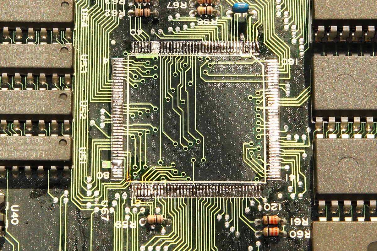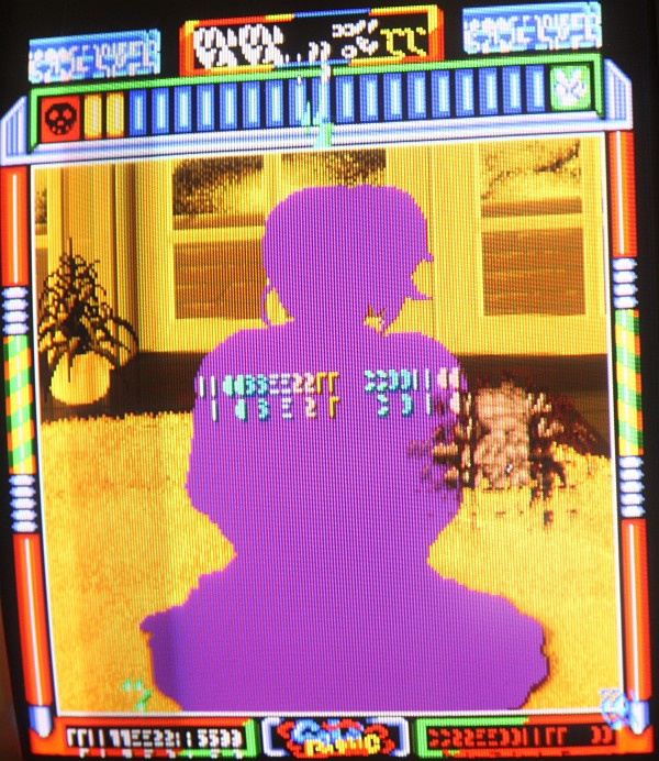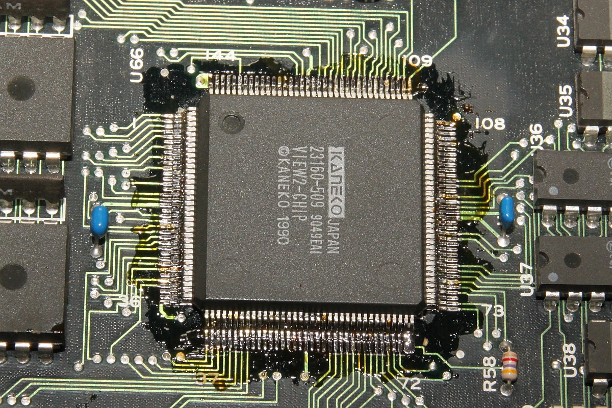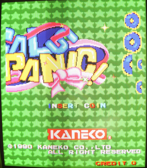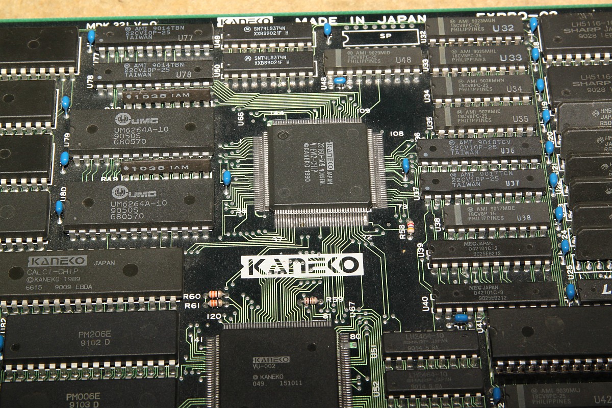 {Fehlerbeschreibung} Die Platine startet schon mal mit einer kapitalen aber fast nicht lesbaren Fehlermeldung: {Diagnose} Diese resettet immer wieder... Epromdrücken hilft nicht, Platine biegen schon: Der Speichertest läuft durch und das Spiel startet: {Fehlersuche und Reparatur} Na toll. Da werde ich wohl mal den Custom nachlöten müssen... Flussmittel drauf und sauber verlöten... {Inbetriebnahme} Schon startet alles problemlos, auch ohne mechanische Gewalt... {Reparatur 2} Ach nee, noch mehr Grafikprobleme, also den zweiten Custom auch noch bearbeiten, aber da sind fix die Pads ab, die Leiterplattenqualität ist echt mies! Da bleibt mir nichts anderes übrig, als den Custom ablöten, die Beinchen geradebiegen, die Pads vorsichtig verzinnen und den Custom wieder drauflöten. Ganz einfach. Was für ein Aufwand für ein nicht ganz so beliebtes Spiel. Aber eigentlich haben alle Arcade-PCBs ein Recht auf einwandfreie Funktion... ;-) |