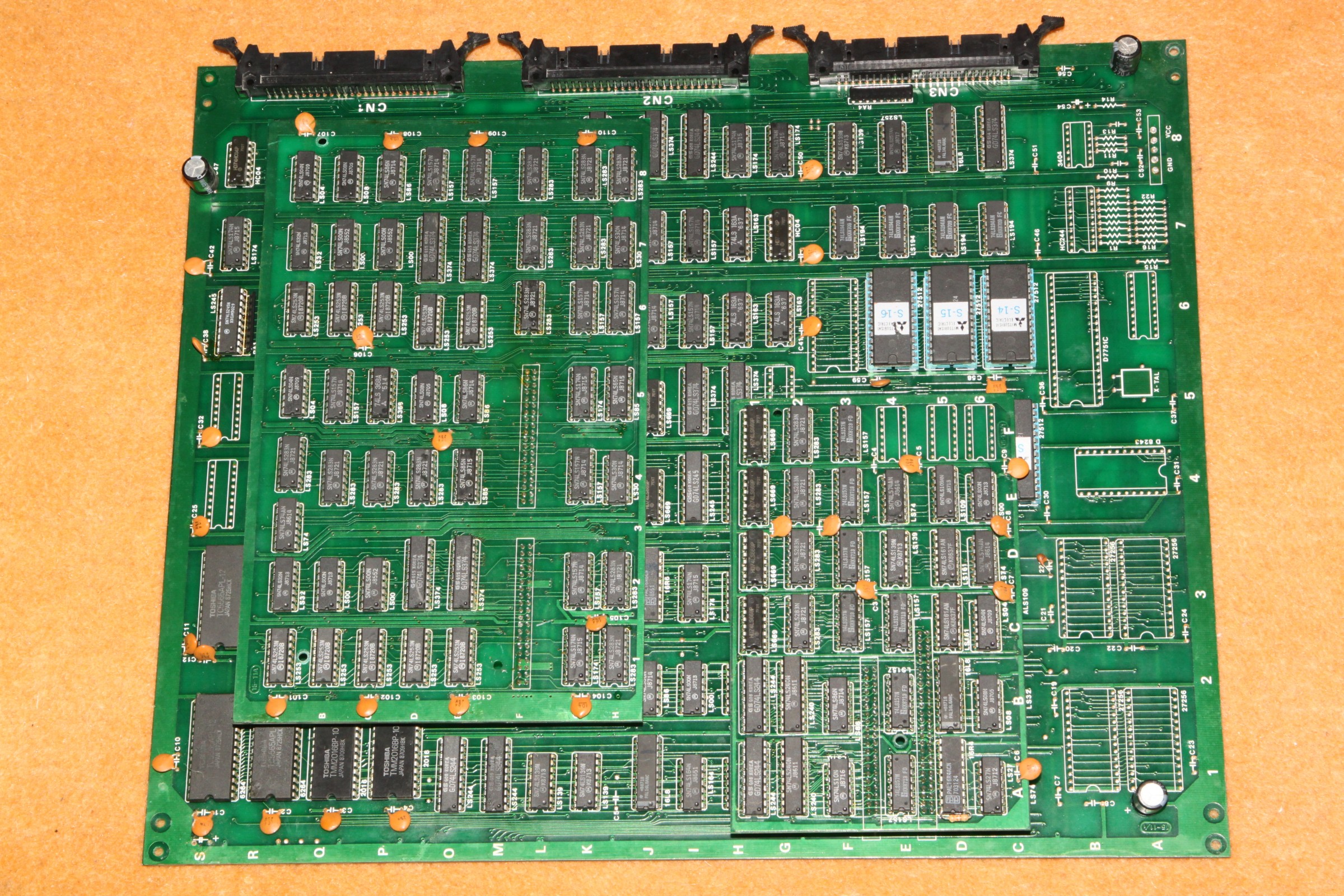 {Fehlerbeschreibung} S.D.I. - ein sauber gearbeitetes Bootleg eines SEGA System 16A Systems... Eingeliefert mit massiven Grafikfehlern. {Screenshots} Sprites funktionieren, Textlayer geht auch - aber die Tiles sind korrupt: {Fehlersuche} Die Fehlersuche ergab korrupte Datenleitungen am Tile-ROM, welches sich übrigens weit weg von den Tile-GFX-EPROMs befindet... Präventiv hab ich mal einen bidirektionalen Buffer getauscht, was aber nichts gebracht hat... {Reparatur} Dann fiel mir auf der Unterseite der PCB ein massiver Kratzer auf und ich nahm den Glasfaserstift zur Hilfe, um den Durchgang der Leiterbahnen zu prüfen: alle drei durch... Dann mit ruhiger Hand Fädeldraht gelötet... Und mit Heißkleber fixiert: {Erfolg!} Schon klappt es wieder mit den Tiles... Manchmal sollte man sich auf die einfachen Dinge konzentrieren. ;-) |