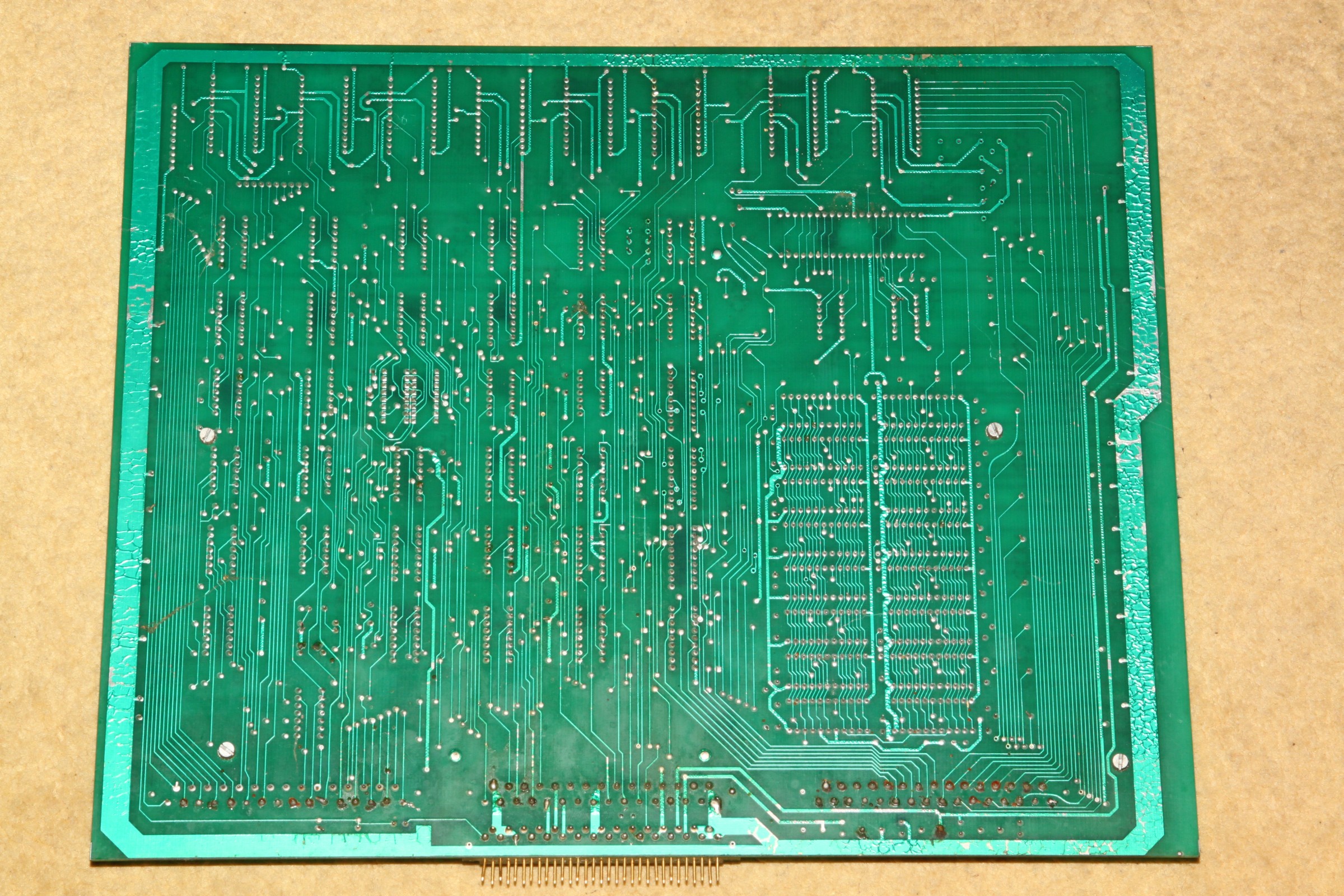 {Space Attack EPROM Version} Ein Video Games Lich Clone von Space Invaders. Hier in der EPROM / PROM-Variante. Erstaunlich, dass Lich für beide Varianten völlig unterschiedliche Layouts gefertigt hat. Der Markt muss wirklich sehr großzügig gewesen sein. {Zustand} Und jetzt noch Details, die ich Euch nicht vorenthalten möchte. Die Annahme von Reparaturplatinen setzt das Vorhandensein verschiedener Impfungen gegen Tetanus, Maul und Klauenseuche und Ebola voraus. DAS kostet extra... {Test} Nun musste ich sie einfach anwerfen. C-Videokabel geholt (das Teil hat keinen RGB-Ausgang!) und siehe da: Gameplay geht, Bild hat Streifen... {Analyse} Sodele, gerade die Programm-ROMs ausgelesen. Die PROMs SBB2616 lassen sich als 2716 nur dann auslesen, wenn man Pin 21 in die Luft biegt. (Beim EPROM Vpp, hier separater Chip-Select)... Drei davon sind bekannte Space Invaders Test ROMs, das dritte ist unbekannt. Habe sie gerade nach Österreich gemailt, MAME wird wieder Zuwachs bekommen. In MAME sieht das dann so aus: Es hat mich interessiert, worin der Unterschied zwischen der Lich Space Attack und der Space Invaders besteht... NWDIFF meldet mir: Also nur 7 Byte Unterschied... Na toll, wer macht denn sowas? ;-) {Reparatur} Ach ja, da waren ja noch die Streifen im Bild... |
