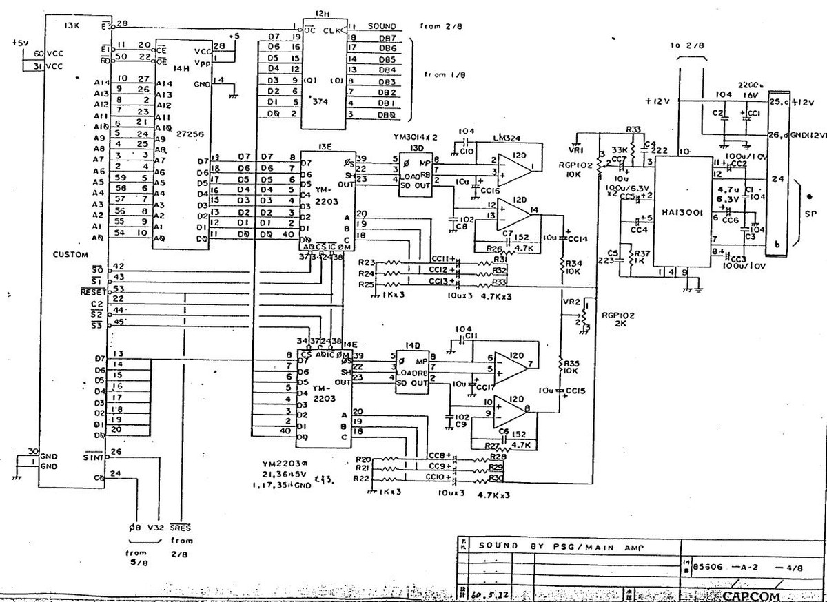 {Ghost 'n Goblins} Hatte ich schon 2014 auf dem Tisch - Grafikfehler behoben... der Nachteil, wenn man aus Faulheit nur Power und RGB verkabelt, dann fallen einem die anderen Fehler nicht auf. Also dachte ich mir, bevor das Ding zurück zu seinem Besitzer geht, teste ich noch mal alles durch. Adapter gebastelt - keine Reaktion auf Münzeinwurf... Ghost 'n Goblins hat den Nachteil, das es mit einem verlockenden 2x28-poligen Stecker ausgestattet ist - aber kein JAMMA! Daher scheint mir, werden gerne mal die Eingangskreise zerschossen... Drei 74LS367 defekt... Teile raus... Sockel rein... Natürlich Bootlegmäßig wieder mal eine Leiterbahn gehimmelt... Super - Das Spiel geht. Münzeinwurf, Steuerung, alles gut. Sound: Nope! Gibt's eigentlich irgendwas, was an dieser PCB funktioniert? Die Oszisuche im Soundkreis zeigt einen schlappen Datenbus D2 und D3... Ohje... der Originale Capcom Schaltplan arbeitet mit einem Custom - das Bootleg hat aber gut nachgebaut und den Custom durch einen Z80 mit RAM ersetzt... sonst alles ähnlich: Ganz schön was an Teilnehmern am Datenbus... Ich fange mit dem Bustreiber an: Der war's natürlich nicht... dann eben der RAM... War's natürlich nicht... Den YM-2203? Auch nicht... Z80 getauscht - nix. EPROM lässt sich perfekt lesen... Der zweite YM-2203 verbessert auch nichts... Beide YM raus: keine Besserung. Aus Verzweiflung Brenne ich das EPROM trotzdenm neu: ein Datenbit geht wieder, neues RAM: das zweite Datenbit kommt... Das Ende vom Lied: RAM und ROM haben sich gegenseitig runtergezogen und der eine YM ist defekt. Das EPROM alleine hat sich aber lesen lassen, komisch. Bis auf den YM-2203 hab ich alles da - eingesteckt: Jetzt geht auch der Ton, zumindest die eine Hälfte! Leider hat die Post wenig Rücksicht darauf genommen und einige Beinchen völlig verbogen: Egal, bekommt er halt eine Prothese - und das Schöne dabei: er funktioniert einwandfrei. GnG in voller Soundvielfalt! |