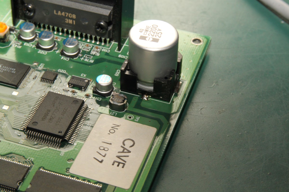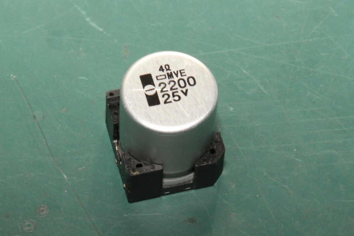 {Fehlerbeschreibung} Cave Ibara Notoperation - Der Elko ist ab und will nicht wider drangehen... Manche Reparaturen scheitern einfach am falschen oder nicht vorhandenen Werkzeug. Dabei sind sie technisch nicht sehr aufwändig. So hier bei Ibara: der fette SMD-Kondensator ist ab und geht auch aufgrund der riesigen Kupferflächen mit einem ungeregelten Lötkolben nicht wieder richtig dran... Wieder ein Beweis, dass man bei gutem Werkzeug nicht sparen sollte! Hier ist der pöse Pursche: Da gehört er hin - die Lötperle zeugt von vergeblichen Aufschmelzversuchen. Sauber machen: Der Elko von unten: in der mitte jeweils die Anschlüsse, die Kontakte daneben dienen nur der mechanischen Befestigung - Das Footprint der Cave-PCB passt dazu nicht ganz, aber egal... Schön vorverzinnen, dann fließt es auch schön, das Lötzinn... Voila! Schon fest... Was für ein Spiel... Ich finde hier gar nicht raus, worum es geht... zu viel Information auf dem Schirm. Ach ja, die Unterseite... das hatte ich schon mal: Cave hat öfter Drosseln auf der Unterseite die abstehen, da hat wohl schon mal jemand nachgelötet... Fehlkonstruktion ab Werk! |