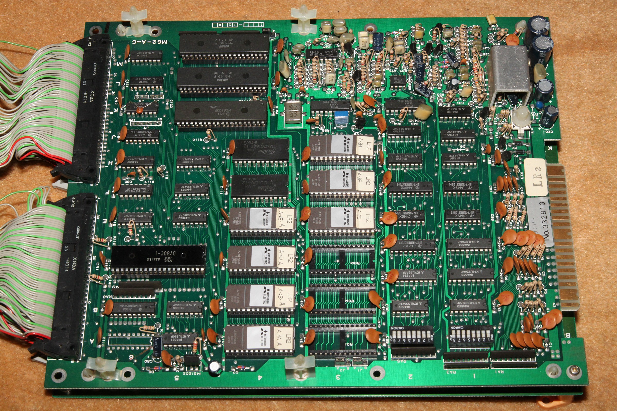 {Lode Runner} Heute: ein schönes Original: Lode Runner - sauber aufgebaute PCBs, übersichtlich, kein Schaltplan... {Diagnose} Heute: ein schönes Original: Lode Runner - sauber aufgebaute PCBs, übersichtlich, kein Schaltplan...Adapter bauen, anschließen, kein stehendes Bild - auf den Fotos sieht es besser aus, als es ist... {Reparatur} Kein Sync... woran kann das liegen? Da hilft nur eine Durchgangspiepser-Orgie vom Stecker bis über drei Platinen. Composite Sync wird von einem 74LS08 zusammengbaut und über einen 1kOhm Widerstand an die Steckerleiste gegeben - bei 75 Ohm Eingangswiderstand der gängigen Monitore ist das eine suboptimale Idee - vom Signal bleibt nichts übrig! Ein Überbrücken mit 68 Ohm (ich hatte leider nur SMD da) behebt das Problem sofort: Ach, so sieht es doch schon besser aus - das Spiel ist echt gut gemacht. Ich spielte es damals gerne auf dem Apple ][... Auf der untersten PCB sind die Kandidaten: der obere Kreis zeigt den 1KOhm Widerstand, der untere Kreis den 74LS08, der das Composite Sync generiert: |