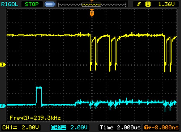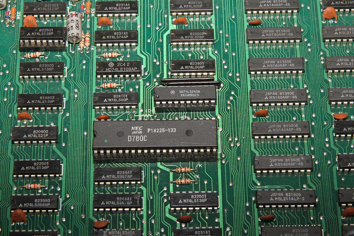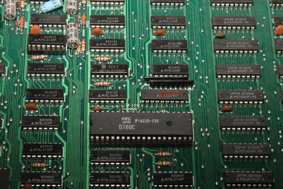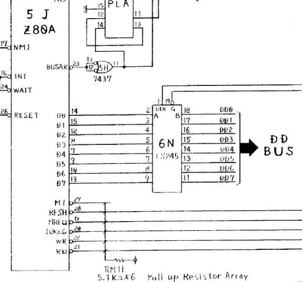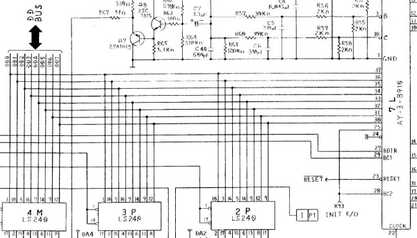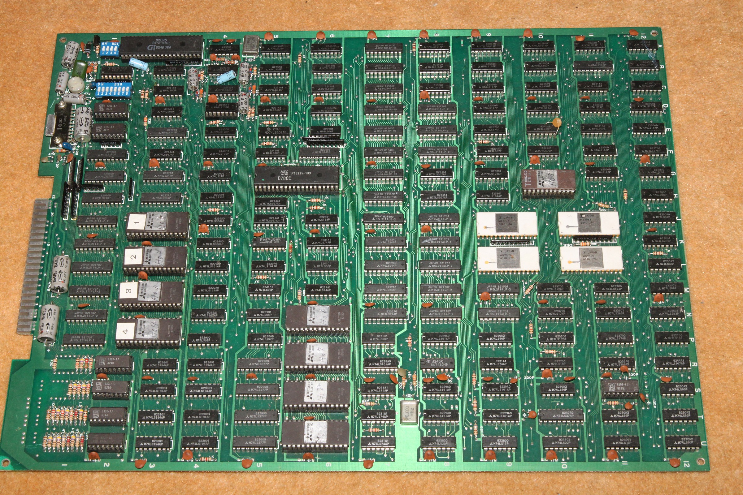 {Popeye Bootleg} Das Bild ist dem Bootleg entsprechend. Der Popeye Titelschirm hat massive Grafikfehler und Farbprobleme, das hatte ich aber bei einem baugleichen Bootleg auch schon und kann es somit auf das Bootleg schieben - Pfuscher, elende... {Fehlersuche} Der Elko hier hat sich schon halb ausgezogen, den sollte ich aus Kurzschlussvermeidungsgründen beizeiten ersetzen! Nachdem ich einen kompletten Jamma Adapter gelötet habe, entdecke ich einen erheblichen Sounddefekt. Sinnloses Gedudel entströmt dem Lautsprecher, nur im Hintergrund kann man das Coinen erahnen, alles geht in einer Kakophonie des Grauens unter... Der Datenbus des AY-3-8910 sieht ziemlich schwach aus... Klar, dass der Soundprozessor daraus nichts Gescheites erkennen kann... Der Nintendo-Schaltplan ist von den Bootleggern nur in Teilen kopiert worden, hilft hier aber trotzdem ganz gut: Auch die 2114 RAMs werden von diesem Datenbus versorgt... Alles kommt aus diesem Bustreiber raus: Schritt 1: diesen erstzen - die Huckepackmethode hat allerdings nichts gebracht und den AY aus der Fassung nehmen hat den Datenbus auch nicht stabilisiert - irgendwie befürchte ich, dass der Ärger noch wo anders liegt... {Fehlersuche} Weiter geht's: Bustreiber gewechselt - Ergebnis: keine Änderung Der Schaltplan hilft nicht wirklich, manches am Bootleg ist doch deutlich anders aufgebaut, als im Original Nintendo Plan. Die drei 74LS240 sind aber gleich. Sie hängen am Datenbus und lesen die Eingangssignale aus... Dabei gleich mal die Leiterbahnen beschädigt - die Bootlegqualität ist wieder mal unterirdisch... Ergebnislos wieder rein und die Leiterbahnen geflickt - wieder eine Stunde für nix... Die letzte Chance: 4 Stück LS244, die Leiterbahnen bleiben ganz, dafür delaminiert die PCB gleich großflächig... Ergebnis: keine Änderung... Also alles wieder rein und noch 'ne Stunde auf gut Glück gemessen, alles erscheint gut, bis auf die extrem niedrigen Datenpegel. Eine Ursache kann ich nicht finden. Nachdem ich folgende Bauteile entfernt / getauscht habe, kapituliere ich vor diesem Boot-Dreck! |