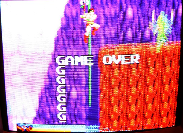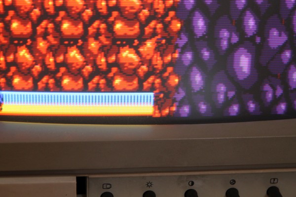 {Rastan Reparatur - die Dritte} Um diese PCB geht es: {Wiederholungstäter} manchmal kommen sie wieder... Ich hatte bereits einen schwachen Bustreiber getauscht - wir berichteten darüber: Rastan Reparaturbericht - aber die Freude des Kunden hielt nicht lange. Darauf tauschte er den zweiten Bustreiber und in Folge der Operation gleich mehrere Leiterbahnen. Hat aber nix geholfen. Dann landete der Patient wieder bei mir. Die Grafikfehler sind wieder da, jetzt noch massiver als vorher und je nach Temperatur oder Luftfeuchtigkeit sind sie mal massiv wie hier, oder sie sind fast nicht zu sehen. Also muss das Oszi mal im Grafikbereich suchen: DER Datenbus sieht mies aus. Das ist ein Grafik-RAM, das direkt aus dem daneben liegenden Custom gefüttert wird. Der wird doch nicht... ? Nein, bei RAM_WR# sehen die Daten gut aus, die niedrigen Pegel liegen nur bei RAM_RD an. Uff... Huckepackversuche bei RAMs sind selten von Erfolg gekrönt, aber bei einem grundlegenden Ausgangstreiberproblem versuche ich das mal... 6116 mit 35ns hab ich sogar da... Das sieht doch mal gut aus (ist noch nicht 100%ig, aber ich hoffe, das liegt an den parallel geschalteten RAMs...): Sodele, weiter geht's. Erstmal das RAM raus: Schön gesockelt: Endlich sind alle Objekte da, wo sie hingehören. Aber was ist das? Nach einigen Sekunden Laufzeit plötzlich Pixelartefakte auf dem Schirm... Geht an der PCB eigentlich irgendwas??? Kältespray ist bei sowas ein guter Helfer: eines der Linebuffer RAMs ist am Sterben. Auch den noch raus und sockeln: Alles sauber - hoffentlich sehe ich diesen Kandidaten nie wieder! |