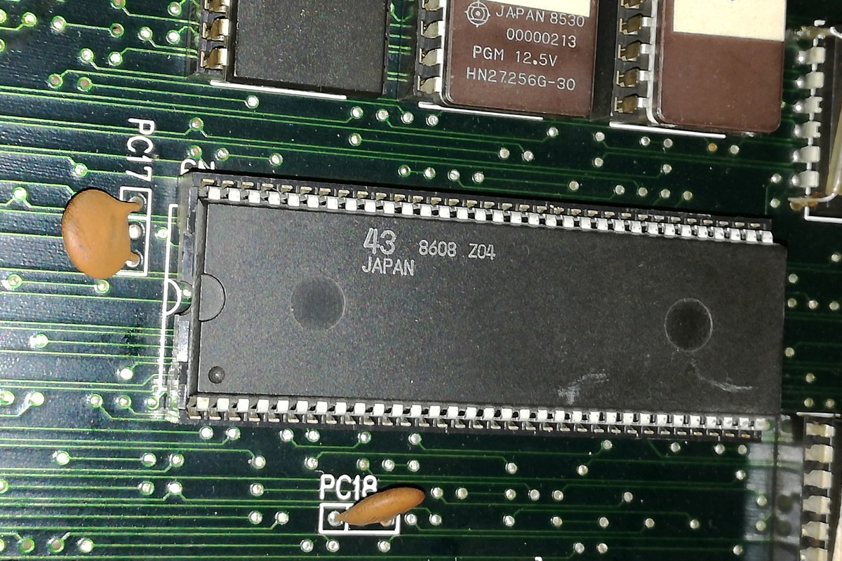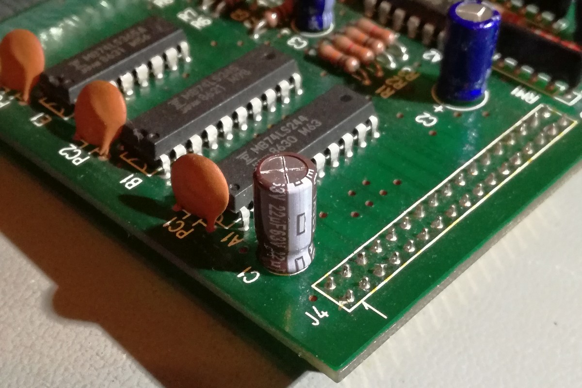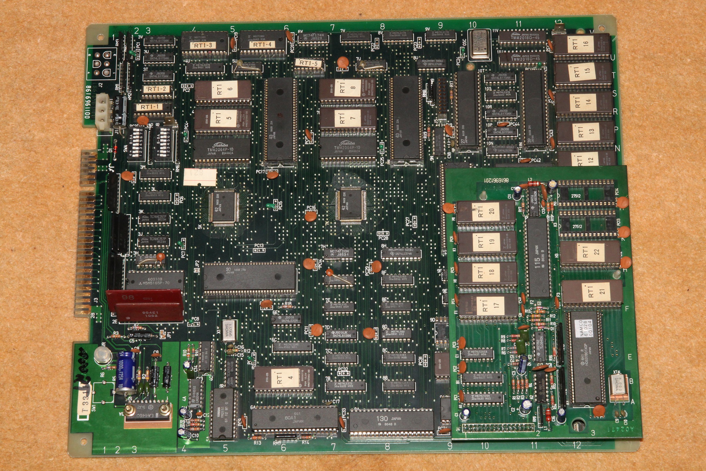 {Rolling Thunder Symptome} Mist - nicht meine eigene... ;-) Symptome: Tonausfall bei Berührung und Grafikfehler - falsche Farben und flackernde Pixel... Ein Spiel, was ich noch gerne hätte - der alten (TM) Zeiten wegen... Hier gut zu sehen: manche Farben werden falsch dargestellt, Pixel flackern ganz leicht... fällt kaum auf, sollte aber trotzdem repariert werden. Doch dazu später! Zuerst wollte der Kunde den Tonfehler beseitigt haben: der Ton fällt bei leichter Berührung der PCB im Soundbereich aus, ich vermutete zuerst einen Haarriß im Bereich des Postis. Doch dann stellte ich fest, dass der Ton nicht einfach an und aus geht, sondern zuweilen auch beim Wiedererscheinen völlig falsche Sounds auftraten, die nach einiger Zeit wieder normal wurden... das musste also im Digitalteil der Sounderzeugung zu finden sein. Mein Oszi führte mich zur Quelle der Takterzeugung: Ganz schön blöd bestückt, das war von Anfang an so, ein Wunder, dass das je funktioniert hat. Ein einfaches Rausbiegen des Quarzes behebt den Fehler sofort und die digitale Sounderzeugung fühlt sich nicht mer so "taktlos"... Fortsetzung folgt (hoffentlich). {Rolling Thunder Grafikfehler} Machmal verliert man - manchmal gewinnen andere... Manchmal gewinnt auch niemand. Der Custom 43 (Tile Generator Controller Whatever) füttert den Tile Color Table PROM mit Adressen: Die sehen allgemein so aus: Bis auf eine: Das erklärt deutlich, warum bei den Hintergrundgrafiken (Tiles) die Farben nicht stimmen und manche Pixel sogar flimmern - der Tausch der beiden Customs lässt den Fehler wandern, es ist eindeutig der Custom defekt! Hier mal das Malheur im Schaltplan: Interessant, dass schon mal jemand die Überspannungsschutzdiode abgeknipst hat - da war sie wohl schon mal gebraucht worden, vielleicht erklärt das die Defekte auf der PCB. Eine hübsche PCB eigentlich, aber hier kann ich leider nichts ausrichten. {Es wird doch noch alles gut!} Manchmal passieren Dinge, da glaubt man im Traum nicht dran - ein Forums-User schickt mir Überreste einer Schlachteplatte! Einfach so. Ich fasse es nicht... ;-) Danke Tom! Und schon sind alle Farben wieder richtig! Und nach diesem schönen Erlebnis hab ich gleich noch mal nach dem Soundproblem gesehen - im Testmodus geht alles außer Tiernahrung. Ähhhh... Voice. Das wird auf der Extra-Platine erzeugt und über einen Elko ausgekoppelt, der sehr exponiert rumsteht. Das hat ihm nicht gut getan. Ein neuer Elko rein und schon klappen die Türen wieder, und die Schüsse knallen, und die tödlich Verwundeten schreien.... einfach schön. Rolling Thunder ist eines der Spiele, die mich besonders an meine Zeiten in der Spielothek erinnern und die ich (noch) nicht selbst besitze. Daher hat mir diese Reparatur ganz besonders viel Freude gemacht! Schön auch, dass es die Arcade-Foren gibt, in denen man sich beim Erhalt der alten Technik einfach und unkompliziert gegenseitig hilft! |