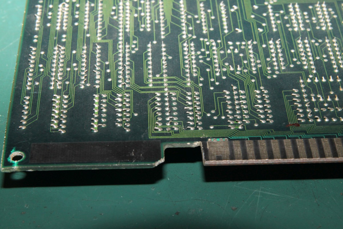 {Truxton Reparatur} Ein neuer Patient, quasi eine Notaufnahme zwischen all den Langzeitkranken... Starke Grafikfehler, nur jede zweite Zeile der Tiles wird dargestellt, Sprites fehlen völlig: Truxton ist mir schon aufgefallen als ein Kandidat, der auf der Unterseite sehr lange Pins aufweist, die - weil eng gebaut - sich gerne in kurzschlüssiger Weise treffen... Hier sieht das auch grenzwertig aus. Hier hilft aber leider kein Geradebiegen, der Fehler geht einfach nicht weg... Was machen mit einer PCB, von der es keinen Schaltplan gibt? Richtig: Baustein für Baustein nach irregulären Signalen durchforsten. Natürlich solte man bei Grafikfehlern damit auch im Grafikbereich anfangen. {Fehlersuche} Nach geraumer Zeit fand ich ein Output Enable Signal an einem der Bustreiber, welches nicht gut aussah... In der Kette führte das zu weiteren "komischen" Signalpegeln... Das Signal zieht sich über die ganze Platinenbreite und bedient ca. 6-7 Bausteine. Endlich fand ich die Quelle: ein 74LS74 Flipflop mit schlechten Augsgängen: {Reparatur 1} Raus damit und neu rein: Mist aber auch: das Ausgangssignal des neuen Bausteins ist genau so schlecht... einer der 6-7 Bausteine muss folglich über seinen Eingang (!) das Signal verhunzen... Das sieht man schnell, wenn man das Ausgangsbeinchen freistellt: {Reparatur 2} Gewissensfrage: welchen der 6-7 TTLs soll ich als erstes auslöten, um den Fehler zu finden? Ich entscheide mich aus dem Bauch heraus für den 74S10, weil er als S-Typ höher belastet ist, als die übrigen LS-Typen: Ohne den Baustein ist das Taktsignal endlich stabil - die Tiles sind endlich komplett, Sprites fehlen aber noch völlig - na ja, irgendeinen Sinn muss der Baustein ja haben... Ich habe keinen 74S10, aber zumindest einen 74LS10... einen Versuch ist es wert, könnte schlimmstenfalls einfach zu langsam sein... Alles gut: alle Sprites sind da - mein Lieblingsspiel ist vollständig genesen! Nur für die, die es interessiert: hier ist mal die Kette der betroffenen Bausteine markiert: Klar, dass bei einem einzigen defekten Signal eine ganze Menge nicht mehr geht... Noch ein Hinweis zu Truxton: diese PCB ist nach den Regeln der EMV Störfestigkeit sehr gut aufgebaut! Die PCB ist Multilayer, in den inneren Lagen befinden sich Masse und +5V - perfektes Spiel, perfektes Design. Großflächige Innenlagen bedeuten aber auch großflächige Wärmeverteilung beim Löten und Entlöten. Man darf sich hier nicht einbilden, ICs mit dem Lötsauger aus der Platte zu bekommen, es hilft nur der Heißluftfön! Alles Andere führt meist zu Tränen. |