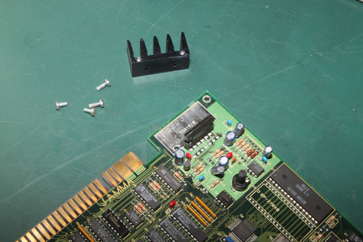 {Gaelco World Rally} Ein kleiner Snack zwischendurch: World Rally ohne Ton. Ein interessantes Verhalten: den ersten Münzeinwurf hört man noch ganz kurz, dann ist Stille und der AMP wird in aller Seelenruhe heiß... Bei der Gaelco World Rally frage ich mich immer: ist diese Platine zu reppen nicht irgendwie wie eine Zeitbombe neu zu lackieren? Immerhin tickt in diesem Teil die Decryption-Knopfzelle - und die ist nicht so ohne Weiteres wechselbar... Alternative: fix verkaufen, solange das Spiel noch geht... Die Sound-Ecke... Ein praktisches Utensil: der Audio-Verfolger. Gab es mal billig bei Pollin, mittlerweile leider aus dem Programm verschwunden. Unverstärkte Audio-Signale sind mit einem Oszi hoher Bandbreite nahezu nicht zu sehen. Man kann sie quasi nicht vom Rauschen unterscheiden! Ein kleiner Verstärker mit Lautsprecher kann hier gute Dienste leisten, wenn man wissen will, bis wohin das Audio-Signal noch funktioniert. Gag am Rande: der Verstärker auf dem Board funktioniert, wenn man den Audio-Verfolger an den Eingang hält. Dann wird der Masseversatz so hoch, dass der "einbeinige" Brückenverstärker wenigstens halb tut... Noch mal für die, die sich immer noch wundern, warum manche ihrer PCBs am JAMMA-Kabelbaum akustisch abrauchen. Es gibt Audio-Verstärker, die erwarten eine Lautsprecherlast gegen Masse. Ein Pin Lautsprecher, der andere: 0V. Alles gut. {Reparatur} Weiter geht's... Wenn der Postmann klingelt: Erst den Kühlkörper abschrauben - lange Schrauben für den IC, kurze Schrauben für die Platinenbefestigung! Heißluft - zu faul heute... Gute Entlötlitze - gute Ergebnisse: Alles sauber. Erst den AMP auf den Kühlkörper schrauben, dann den Kühlkörper mit AMP auf die Platine und dann erst löten! Abzwicken, einschalten, geht! |