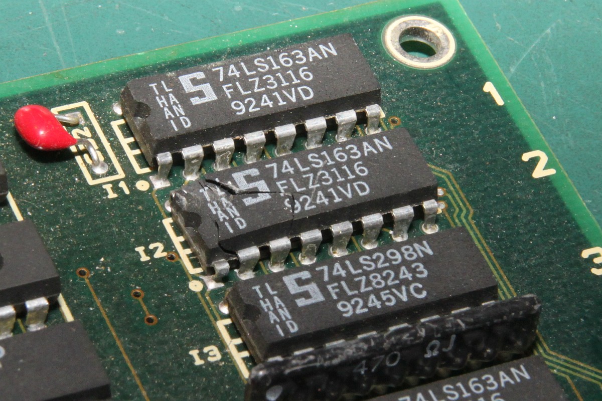 Alten TTL mit dem Enlötsauger rauspopeln - hoffentlich sind keine Leiterbahnen beschädigt...