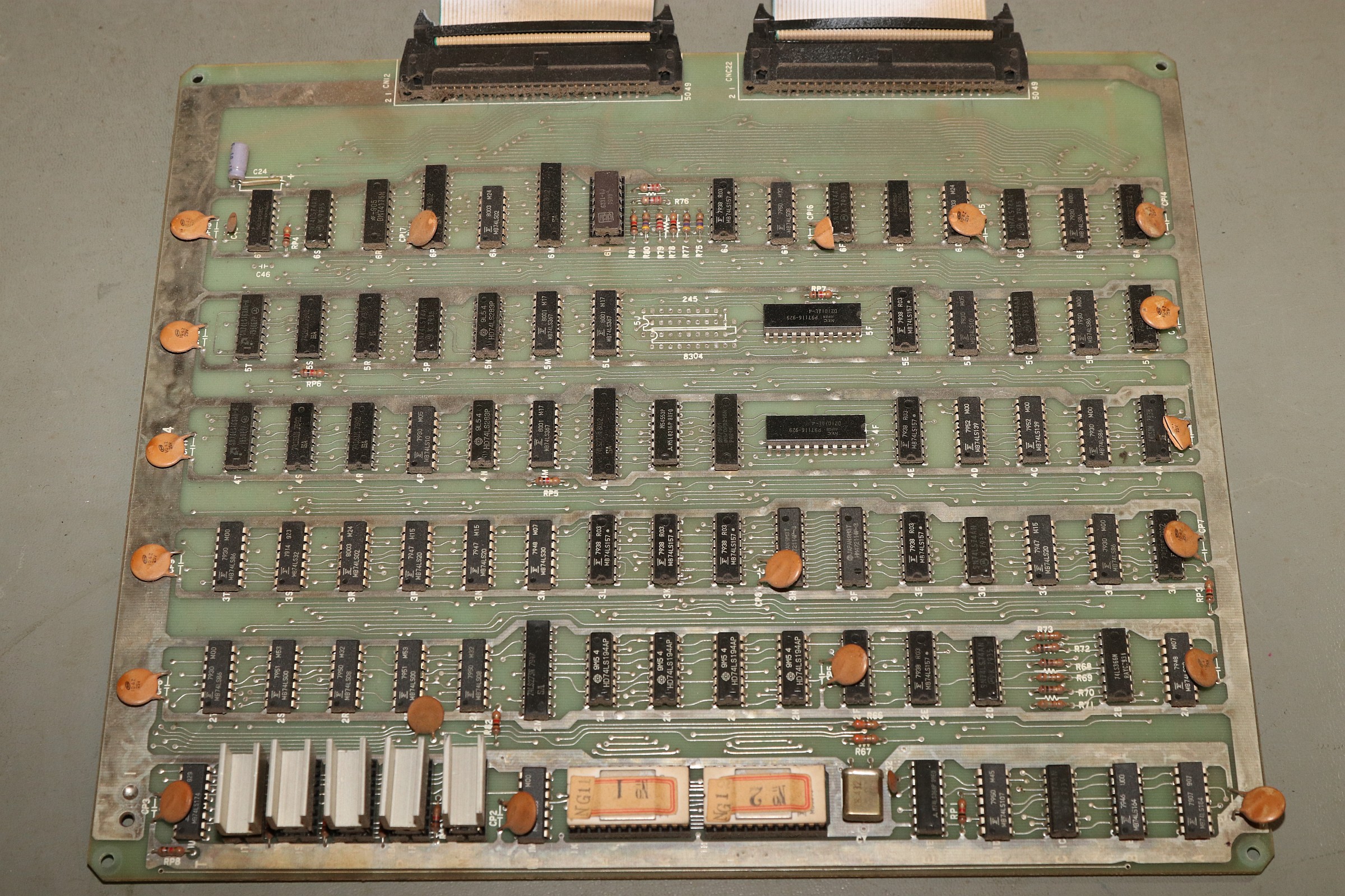 {Galaxian} Keine Reparatur ist wie die Andere - und heute habe ich eine Galaxian auf dem Tisch, die auch nicht ist, wie viele andere: Hier das ROM-Board mit der Besonderheit 2708-EPROMs - das heißt in der Konsequenz drei Versorgungsspannungen: 5V, 12V und -5V... Diese müssen separat zugeführt werden - ein wenig unpraktisch! Dafür gestaltet sich der Laboraufbau servicefreundlich - wenn man genug Platz auf dem Tisch hat. Der Kunde meinte, er hätte RAM Fehler 2, das kann ich nicht bestätigen. Geht doch, oder? Die Sprites der angreifenden Schiffe sehen etwas komisch aus: Yepp. Da ist was faul an der Sprite-Adressierung... Das Adressbus-Latch ist teilweise stuck-high - da könnte die Huckepack-Lösung helfen... War ja klar... ein Signetics "SA". Prone to fail! So muss Galaxian: Wie jedem sofort ersichtlich ist, hier befand sich der Fehler. Wo auch sonst? ;-) Und ja, ich habe natürlich nicht das Huckepack-IC drin gelassen, sondern einen fachmännischen Austausch vorgenommen!!! |