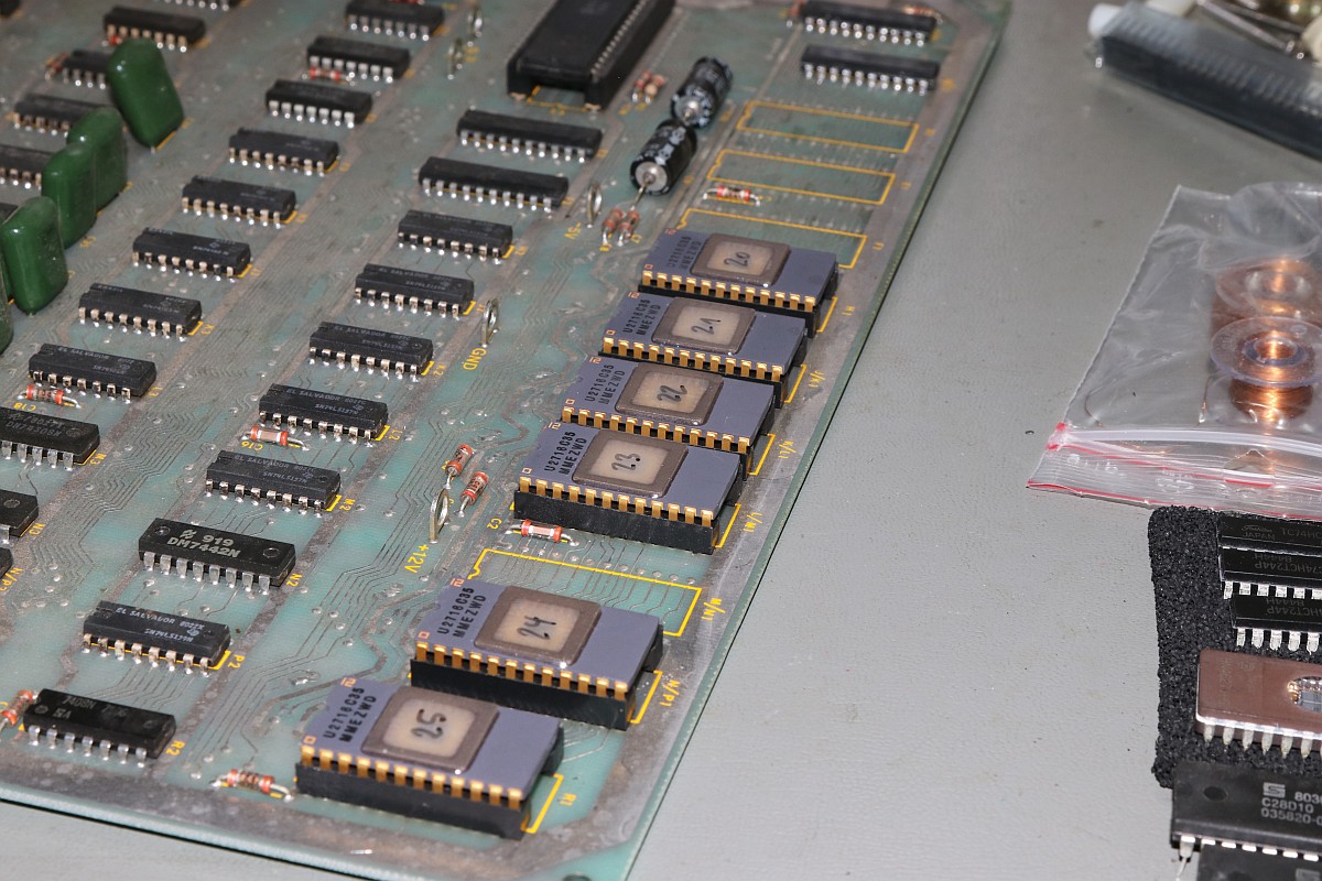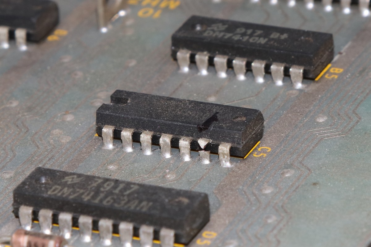 {Weil's so schön war - noch eine MC!} Wenn man schon gerade in Übung ist... hier noch eine dritte MC: Die massenhafte Verwendung der vorgealterten "SA" Signetics-Bausteine lässt Schlimmes vermuten. Der Datenbus ist erstaunlich schlapp... Die Platine meldet sich mit einem weißen Bild: Ich ersetze mal alle PROMs gegen EPROMs - das verbessert den Datenbus deutlich und nun ist auch der Watchdog befriedigt. Das weiße Bild bleibt! Doch nach Betätigung des Test-Schalters kommt plötzlich Leben in die Platte: Der Speicher schein in Ordnung zu sein, der Trackball-Ersatz läuft... wie kann das sein, dass es ohne Test-Modus kein Bild gibt? Komisch... Ich bin auch gespannt, wie's weitergeht... Mittlerweile ist wieder was kaputt gegangen, die Platine startet jetzt auch mit Test nicht mehr, der Watchdog bellt! Nächster Schritt: Bustreiber tauschen! {Weiter geht's!} Ich tausche Bustreiber und die CPU mitsamt Sockel: Zwei Datenbuspins schweben über der Nulllinie: Schwer zu finden - am Datenbus gibt es viele Teilnehmer! Da hilft nur gezieltes Abklemmen! Danach das Anlöten nicht vergessen! War ja klar, der Letzte war's: mit "SA"-Kennzeichnung. Wird nicht besser mit Ersatz - ich prüfe mit dem Durchgangsprüfer gezielt alle Daten- und Adressleitungen zwischen ROM und CPU... da fällt mir ein selbstgemachter Fehler auf: Nach der Reparatur wird es immer noch nicht besser. Ich teste die CPU nach dem Reset - sie sollte immer das Selbe machen, Resetvektor holen und anfangen... der Datenbus bleibt nicht statisch - sollte etwa die neue China-CPU... Ja, sollte sie. Die neue CPU war auch defekt. Beim Rückbau noch mal getestet: Bustreiber waren schlapp, ein ROM ist defekt, der 74LS125 war hin und ein Flipflop für den NMI war auch platt... und die CPU... alle TTLs waren "SA"-Typen. Memo an mich: in China billig gekaufte Chips bei Erhalt sofort prüfen! ;-) |