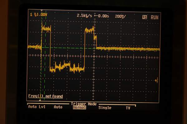 {P.O.W Bootleg} Ebenfalls zur Reparatur zugelaufen: ein Prisoners of War (P.O.W) Bootleg - nicht hübsch, aber immerhin Bild und Ton... die PCB: Putzige Streifen, gleichmäßig über's Bild verteilt - sie bewegen sich, treten sporadisch auf... Wenn ich die Versorgungsspannung von 5,3V auf 4,9V runterdrehe, sind die Streifen fast völlig weg... Die Sprite-Artefakte werde ich ignorieren, sowas ist kaum zu finden und lohnt bei dem Bootleg auch nicht wirklich. Mit 4.8-4,9V tut es ja ganz ordentlich. Aber die Soundprobleme sind heftiger. Es kracht und scheppert, dass sich die Lautsprechermembranen biegen... Gut, dass man bei POW alle Soundcodes im Testbetrieb durchnudeln kann - Musik läuft völlig unauffällig, nur die Samples klingen grauenhaft. Einer davon scheint eine Fehlprogrammierung zu sein - das scheint wohl einer einen Vorzeichenwechsel übersehen zu haben. Das EPROM auf der Tochterplatine ist leider eingelötet, typisch Bootleg - aber daran liegt es nicht, alle Samples klingen mies... Der OKI M5205 macht die ganze Arbeit - der Output sieht gut aus... (bis auf den einen Sprung). Analyse mit Oszi und Audio-Probe... Na super: Ein Kondensator ganz abgerissen, einer am Beinchen ab und das Beste: der Dual OpAmp ist defekt... Daran lag es. |