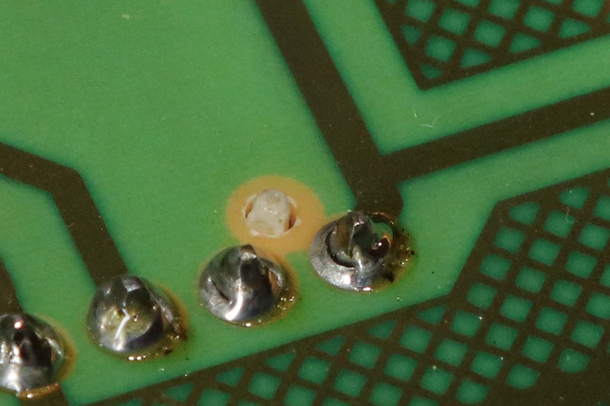 {Repair the Unrepaireable} DMD - Dot Matrix Display, also quasi eine flache Nixie-Röhre mit ganz vielen Punkten... teuer, empfindlich und in den falschen Händen an Leib und Leben gefährdet! Der Kunde beklagte den Ausfall seines Displays - nach Generalüberholung des Netzteils näherte er sich dem tatsächlichen Fehler: kalte Lötstellen am Spannungsversorgungsstecker durch permanentes Aus- und Einstecken... Doch den Stecker kann man nur löten, wenn man das Display aufklappt... was für eine Fehlkonstruktion... Hier die Fehlerursache, die noch Folgen haben sollte... Die kalte Lötstelle ist nur halblebig gelötet - das geht besser! Das Glas ist mit Schaumklebeband auf die Platine geklebt... mein Hinweis "Nylonschnur" kam zu spät... seine Variante "Messer" sollte sich bitter rächen... Die Zeilenanschlüsse gehen (wie die Spalten auch) über eine sehr dünne flexible Leiterkartenfolie... Wer denkt, man könnte das ablöten, irrt! Auf der Folie ist aufgedampftes Zinn, das wird bei der Herstellung mit einer heißen Kante auf das Glas und die Platine "gebügelt". Eine Demontage ist nicht vorgesehen! Diese blöden Flachbandfolien machen keinen Spaß - das ist kein Kupfer sondern aufgedrucktes Zinn... Hier ist das Ergebnis der Entscheidung "Messer"... So sieht das aufgeklappte Sandwich aus... Die Folienleiterbahn kann man vorsichtig von der Platine und vom Display lösen - das aufgedampfte Zinn bleibt auf dem Glas zurück. Danach werden die Kontakte vorsichtig mit Benzin gereinigt - Kleberrückstände lösen sich auf... Gott sei Dank! Die Kontaktflächen auf dem Glas nehmen Lötzinn an! Aber nicht zu lange versuchen, sonst löst sich das Material auf!!! Jetzt geht es an die Reparatur - erst mal die Stichwunde an den Spaltenanschlüssen - auch hier kommt man nur bei aufgeklapptem Display ran... Schwester, Skalpell bitte... Löten... Verbinden... Zuklappen. Dann werden die Zeilenanschlüsse vorsichtig verzinnt: Bevor es an die Zeilen geht, sollte man nicht vergessen, die Schaumklebestreifen zu ersetzen und das Display wieder auf die Platine zu kleben! Lötorgie mit ruhiger Hand: Demnächst get das DMD zurück an den Besitzer - ich bin gespannt, ob alles funktioniert - mangels Pin kann ich das hier leider nicht testen. Aber wir halten fest: wer das konstruiert hat, gehört geprügelt! Und wir halten außerdem fest: Reparaturen rechtzeitig in Hände von Fachleuten zu geben, reduziert die Wahrscheinlichkeit für Kollateralschäden... Leider werden wir so schnell nicht erfahren, ob die Reparatur geglückt ist, weil der Pin mittlerweile die Mitarbeit komplett verweigert. Aber das ist eine ganz andere Geschichte... |