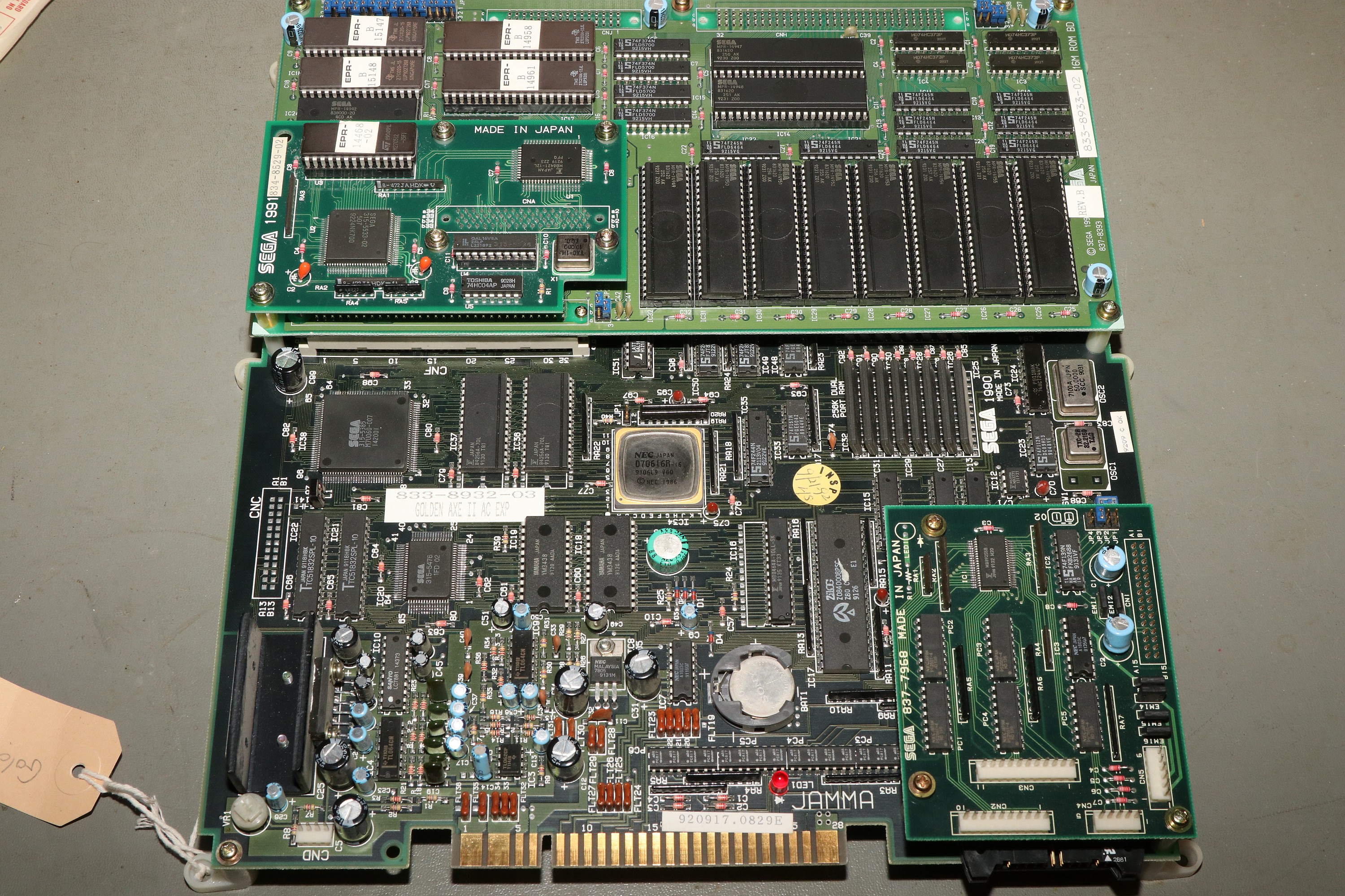 {Golden Axe II} für so etwas bin ich - so scheint es - einfach zu alt... Viel moderne Technik, SMD und THT gemischt, RAM-Bänke ohne Ende und diverse Zusatzplatinen in Sandwich-Bauweise incl. Protection-Einheit gegen Conversions... Die Sandwich-Bauweise macht einem Reparazzo das Leben zur Hölle. Auseinandergebaut könnte man messen, das Teil funktioniert aber nicht. Zusammengebaut funktioniert das Teil womöglich, man kann aber nicht messen. Danke, Sega! Hier mal das Motherboard mit Prozessor(en): Das Board für zusätzliche I/Os: Das üppige ROM-Board - hier residiert das Spiel: Und - damit es nicht zu einfach wird: das Protection-Board: So sieht das Teil aus, wenn alles sauber zusammengebaut ist: Fazit: bei diesem Patienten kann ich absolut nichts machen. Es gibt kein Bild, Sync ist da. Alle Quarz-Oszillatoren takten sauber, trotzdem ist die Hälfte der Platine tot. Grafikdaten werden keine gelesen. Ich vermute nach einem Ausflug zu Tante Google, dass die Protection irgendwie zuschlägt - Ersatzteile habe ich für so etwas gar keine, hier helfen nur bauähnliche Spenderboards. Schade, das ist immerhin eine absolut saubere Platine gewesen... {Noch ein kleiner Versuch...} auf dieser SEGA-Platine gibt es ja eine Verschlüsselung - wenn die Decryption-Unit einen Schuss hat, zeigt sich das auch oft an fehlendem Aufstart. Also habe ich flugs mal die EPROMs gegen die entschlüsselten Varianten gebrannt. Leider hat das hier auch nichts gebracht - jetzt habe ich alle Möglichkeiten ausgeschöpft! |
