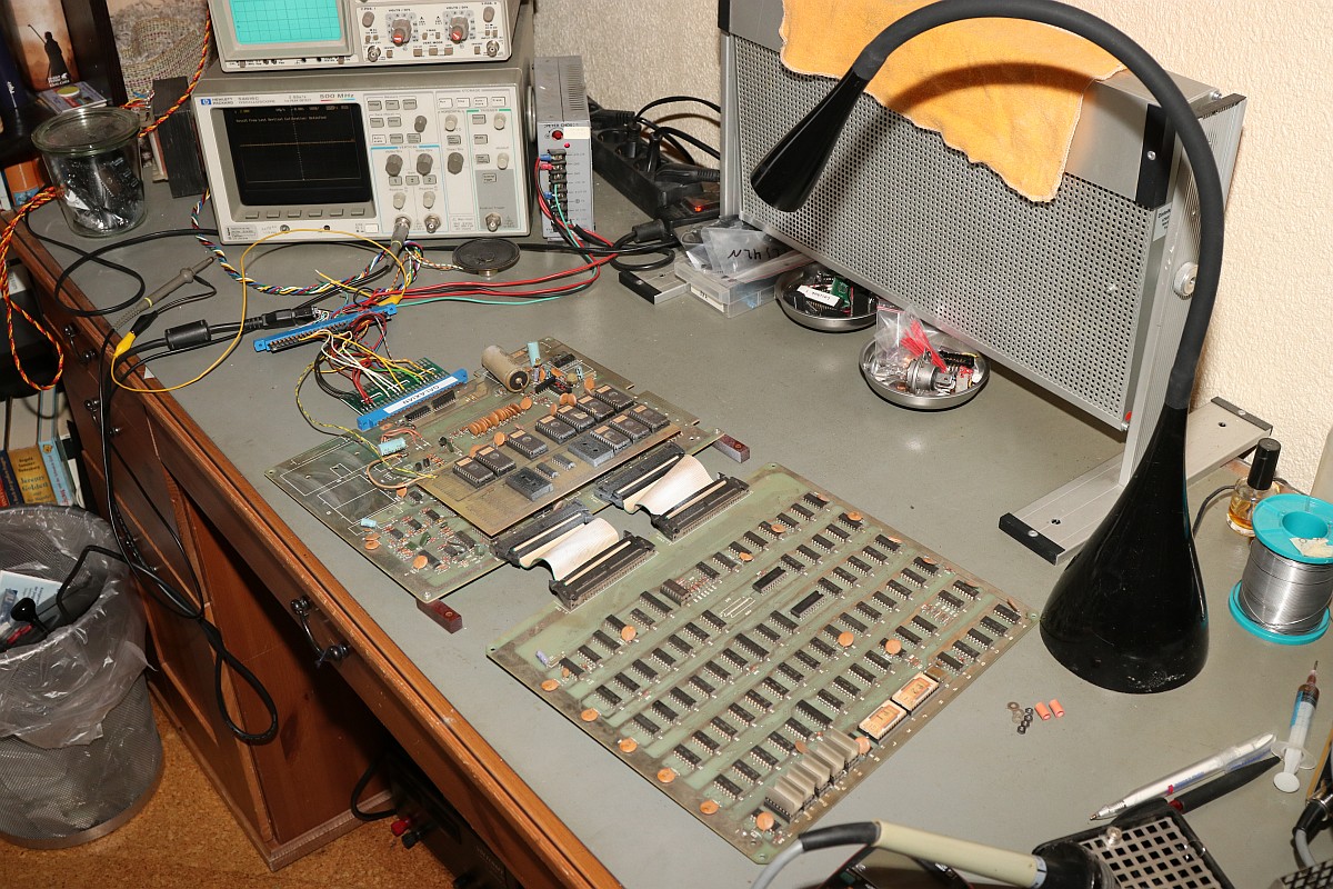 {Eine Galaxian} endlich mal wieder ein Klassiker mit leichten Grafikfehlern - sowas hatte ich schon länger nicht mehr! Besonders spannend: drei Versorgungsspannungen für die EPROM-Bank!