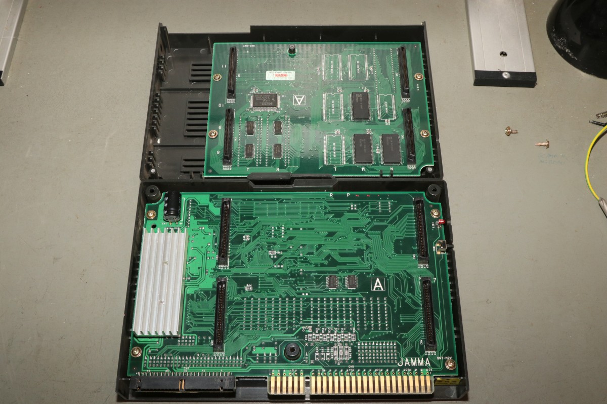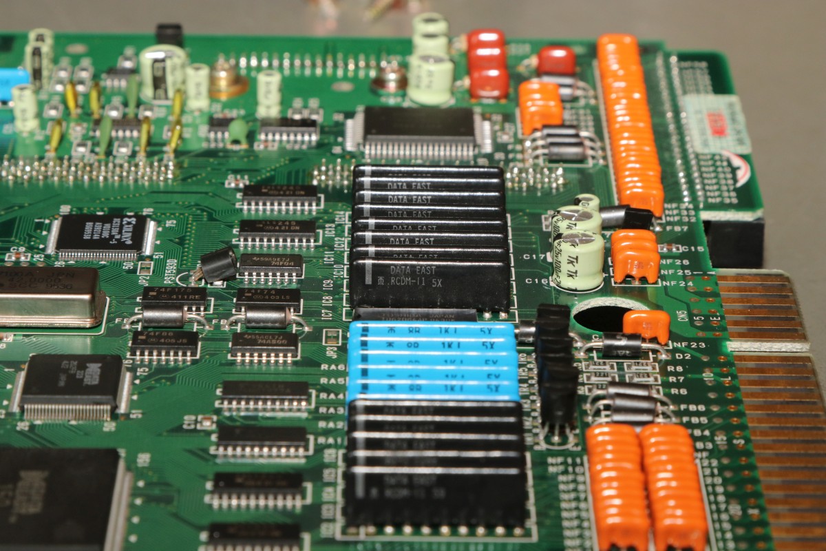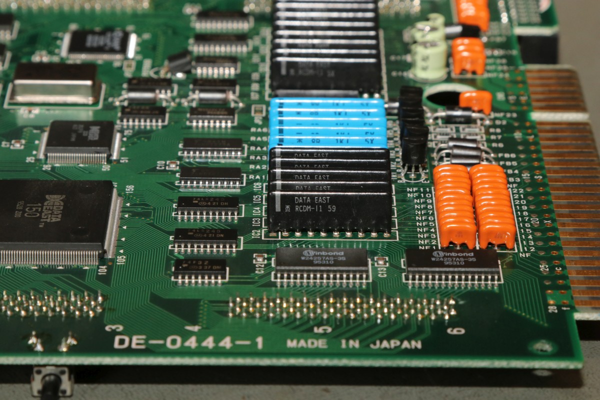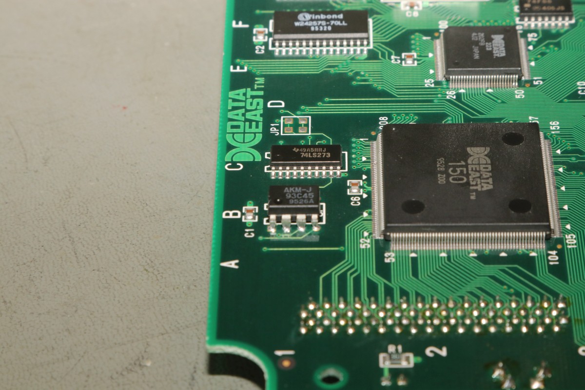 {Data East Hoops '96} Hatte ich noch nie: ein Data East MLC System! Ein ARM-Prozessor mit 7 MHz und quasi Cartrige-System, nur, dass die Cartridge das ganze Spiel ist... Man kann viel mit Arcadeplatinen machen, aber den JAMMA-Stecker verkehrt herum aufstecken ist eine schlechte Idee! Die 12V für den Audio-Verstärker liegen dann an Button 2 an und das mögen die Eingangsschaltkreise meist nicht. Die Box ist leicht aufzuschrauben, die Garantie ist vermutlich eh schon lange abgelaufen. Innen erwartet uns ein Mainboard und ein recht komplexes ROM-Board. Alle Platinengesamtfotos sind hochauflösend! Die Mainboard-Unterseite - links der Kühlkörper für den Verstärker. Die Mainboard-Oberseite: hier erwarten uns die Folgen des "Versteck-Spiels". ROM-Board-Unterseite: ROM-Board-Oberseite: Sogar ein EEPROM findet sich hier... Rot umrandet: Eingangsfilter, Hybrid-Customs mit Pull-Up und Schutzdioden und 74LS245 Bustransceiver. RCDM-I1 hatten wir schon mal, das Reverse Engineering ist HIER nachzulesen. Die sind hier massenhaft verbaut, es gibt ja auch einen Adapter für 4-Player-Steuerung! Es ist ein JAMMA... Der erste Hybrid zeigt natürlich Spuren - da ist schon der "Magic Smoke" entwichen... ... und die Schutzdiode hat mit dem Lack Blasen geworfen. Der 74LS245 ist natürlich auch platt - er wird im Betrieb heiß und der Testbildschirm erkennt eine ganze Reihe Tasten nicht mehr. Problem 1: der 74LS245 ist in Narrow SO20 Gehäuse - das ist so selten, dass ich es in der Bucht nicht bekommen... Aber Mouser hat noch welche! Warten wir auf die Bestellung! |