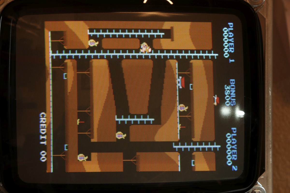 {Le Bagnard} Eine Le Bagnard mit Grafikfehlern... Sogar mit Speechchip... ...und 5V-Umbau... Der Patient stottert grafisch... ...auch bei den Sprites. Gottseidank ist das eine Platine, bei der alle Chips gesockelt sind - meine Auslötstation kann heute kalt bleiben... Das macht es aber nicht leichter, der Schaltplan ist vorhanden aber fast unlesbar... Wenn man dieses RAM entfernt, dann ist das Bild fast gut. Fast... Am RAM liegt es nicht. Nebenbei: dieser serienmäßig nachbestückte Widerstand führt manchmal zu einem Kurzschluss, dann sind die Sprites ganz weg. Ein Grund mehr für Platinenfüße! Nach einer Stunde Fehlersuche mit dem Oszi stelle ich fest: es gibt keinen Fehler, den man mit dem Oszi finden könnte. Doch die Platine bietet eine Möglichkeit, die andere Platinen nicht bieten: man kann sinnlos IC-Pärchen tauschen, bis sich das Fehlerbild verändert. So zum Beispiel... Klar: die Addierer waren es mal wieder - die gehen intern so kaputt, dass man das außen nicht mit dem Oszi sehen kann, sie addieren einfach falsch... (unter Anderem die Tile- und Sprite-Positionen...) Hätte ich doch gleich drauf kommen können... Ich frage mich immer: wer hat in der Entwicklung dafür unterschrieben, dass die ganzen Sockel bezahlt wurden? Ach ja - gut, dass ich noch mal alles geprüft habe - der Audio-Verstärker war auch platt. Mehr als Krächzen ging da nicht. Aber auch der ist brav gesockelt! |