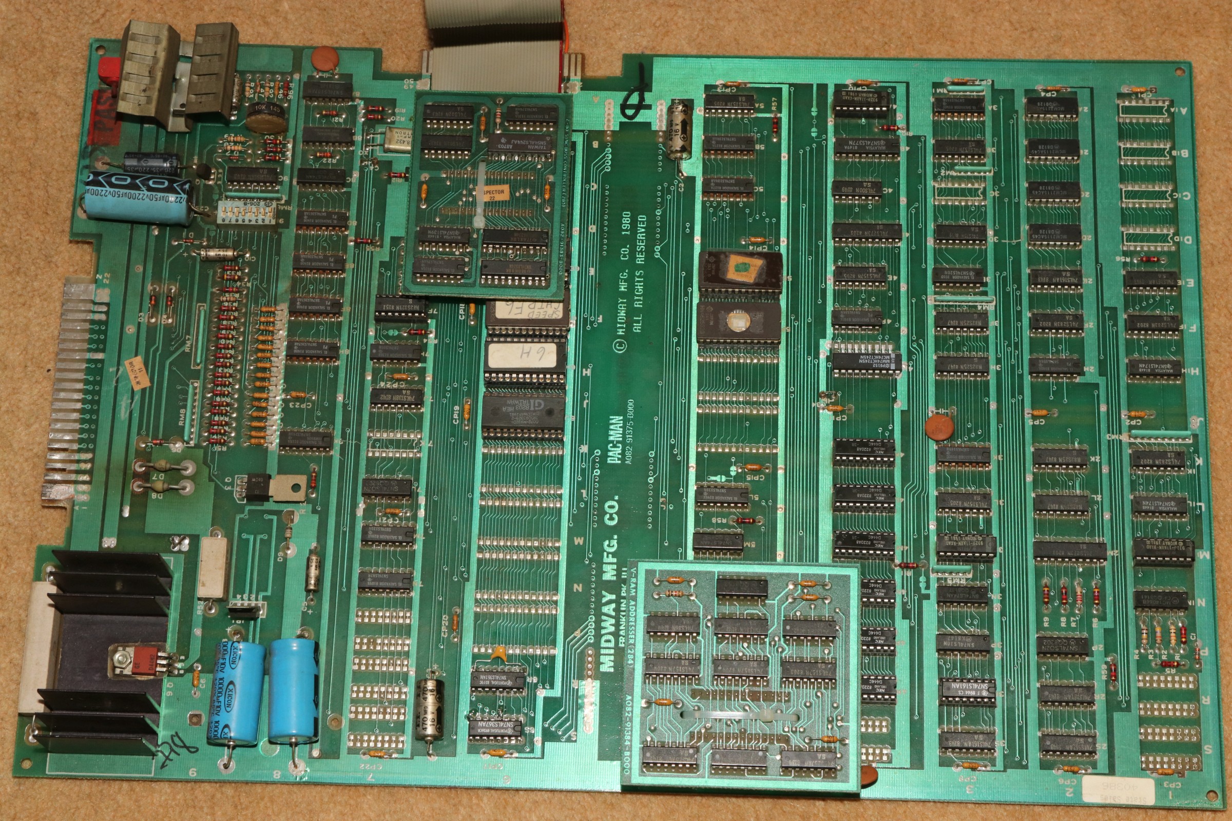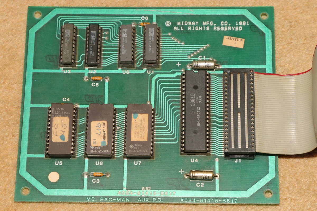 {Ms. Pacman} Mich erreichte eine originale Ms. Pacman mit der Diagnose: "Da geht nix..." Dieses "Wunderwerk" von Midway glänzt durch allerlei Besonderheiten. Zum Beispiel eine separate CPU-Platine mit diversen Custom-Chips: Und durch diverse Daughter-Boards. Das erste davon hat schon mal sichtbare Kontaktprobleme... Die darunter versteckten PROMs auch - die Beinchen sind wieder mal einfach abgerostet. Nicht nur an einem Baustein... Und die Sockel sind so derart grottig, dass ich sie gleich mal rausmache - das verringert langfristig Frust! Die korrodierten Bausteine werden sauber gereinigt und bekommen einen Adaptersockel. So sieht das dann aus: Das Flachbandkabel zur CPU-Platine hat diverse Kontaktprobleme - die blöden DIL40-Schneid-Klemm-Stecker gibt es nicht auf die Schnelle... Dem Spiel ist nichts Vernünftiges zu entlocken - je nach Rumgewackel wird zumindest schon mal der Bildschirm gelöscht... Mit viel Feingefühl bringt man die CPU kurzfristig zum Laufen. PROM 6J bekommt auch einen neuen Sockel, vielleicht liegt's ja daran... Ich komme einfach nicht weiter, das Spiel startet nicht, alles ist instabil. Wenigstens das CPU-Kabel ist jetzt in Ordnung. {Ms. Pacman Vergleichs-PCB} Gottseidank bekam ich eine funktionierende Ms. Pacman als Referenz. Jetzt muss es funktionieren! Durch Tausch der Daughterboards und weiterer Komponenten sollte sich der Fehler einkreisen lassen! Das erste Board ist schon mal defekt! So sieht kein Datenbus aus... Es ist nicht nur ein Bustreiber defekt... ... sondern zwei. Und der dritte Bustreiber auch noch. In der "guten" Platine läuft das Daughterboard jetzt. Ganz schön viel defekt auf so einem kleinen Platinchen... Leider geht das Teil immer noch nicht - jetzt startet zwar der Speichertest, der läuft aber zyklisch immer wieder durch. Die übrigen Daughterboards sind alle in Ordnung, also muss es an der Hauptplatine liegen! Ein 2114 ist platt, das ist schnell getauscht - hilft aber nicht... Nach langer Suche teste ich die Enable-Signale am Adressbustreiber - mit Tastkopf läuft das Mistding, ohne nicht.. Die sehen auch nicht wirklich gut aus... Und die Platine nach dem Auslöten auch nicht: Lässt sich alles überbrücken! Das Tastkopfphänomen ist immer noch da. So 20pF hat man da sicher - ich spendiere einfach mal 100pF gegen Masse. Die Spannung steigt. Wow. Das Spiel startet stabil und zuverlässig! Das war dann wohl ein Timingproblem. Ich hoffe, dieser Workaround hält eine Weile! Und das Flachbandkabel hab ich auch gleich sauber geflickt. Hier noch ein Blick auf den 5V-Hack, dann benötigt die Platine keine Wechselspannung und man überbrückt den Linearregler auf dem Board. |