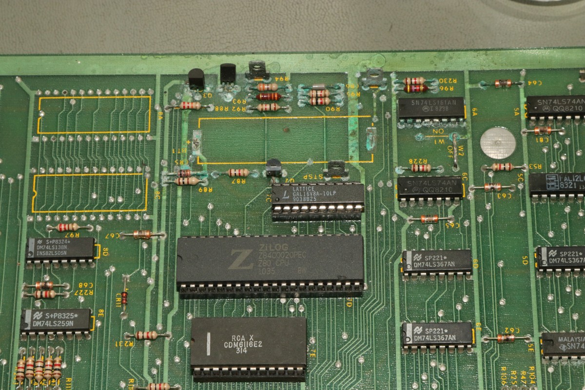 {Pole Position - echt ätzend} Zu Beginn meiner Webseitenzeit habe ich bereits die Reparatur einer Pole Position Platine beschrieben. Mittlerweile lag die Platine unbeachtet im Lager und selbst der GAL16V8 auf Position 7C wurde einer anderen Reparatur geopfert. Aus gegebenem Anlass fiel mir die Platine wieder in die Hände und ich dachte mir: jetzt mal alles fertig machen! Also geschwind ein neues GAL gebrannt - die Platine läuft immer noch! Und da fiel mir die Hinterlassenschaft des ausgelaufenen Akkus auf: echt ätzend! Und hier am Eck auch noch - Grünspan und Salzkrusten... Was für Linsen mit Spätzle gut ist, kann für Akkuseuche nicht schlecht sein! Essigessenz löst den Akkusiff unter heftiger Blasenbildung! Das hat schon Zerobrain herausgefunden... Mit Wattestäbchen großzügig aufgetragen, geht das fast von selbst: die Hinterlassenschaften lösen sich einfach auf... Unter fließendem Wasser mit der Bürste abgeschrubbt und dann mit dem Heißluftfön gut getrocknet: fast wie neu! Im Bereich des ehemaligen Akkus sind die Schäden natürlich größer gewesen - aber auch hier verbessert sich die Lage deutlich! Endlich ist diese Platine fertig! Da kann es ja an den Start gehen! |