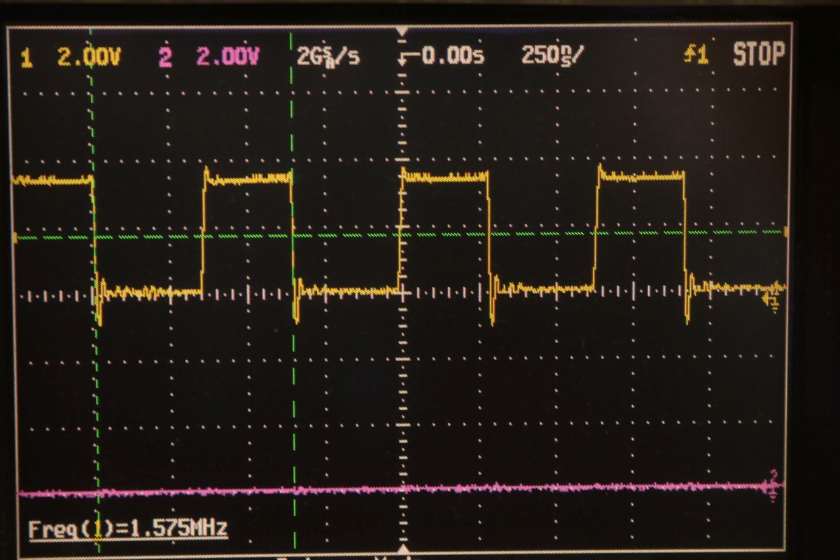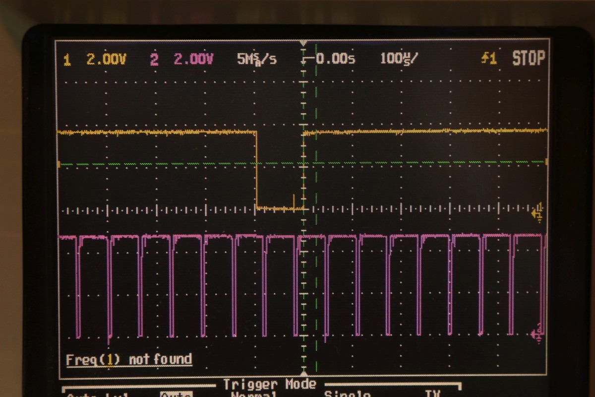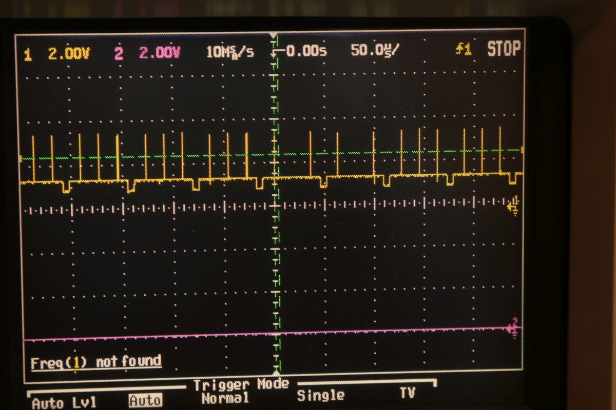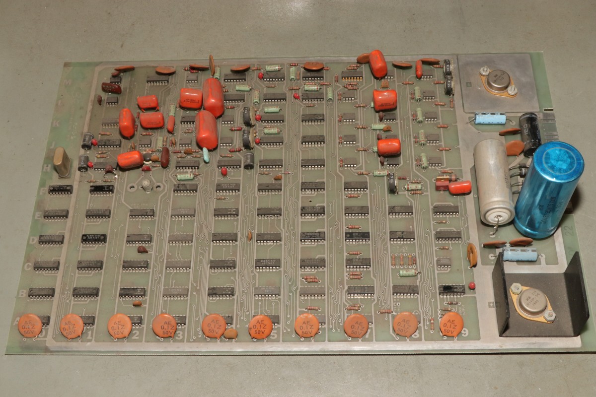 {T.V. Goalee von Chicago Coin (Chicago Dynamic Industries)} Der Werbetext verspricht ein hyperrealistisches Spielerlebnis - und ja, das Design dieses Spielautomaten von 1974 ist außergewöhnlich. Hier hat man sich echt Mühe gegeben, das Spielgeschehen wie ein echtes Fußbalfeld aussehen zu lassen! Die Chicago Skyline im Hintergrund und kleine Bäumchen am Spielfeldrand... Dann kamen die Limitierungen der damaligen Digitaltechnik... Dieses Spiel zählt noch zur Generation der "Discrete Electronics", der Spiele ohne Prozessor und ohne Programmspeicher. Obwohl, auch ein 7474 ist als Flipflop ja ein Speicher... Nur ein unscheinbares Kürzel weist auf den Hersteller hin: Ein Schaltplan für dieses Spiel existiert nicht, so muss ich mich Schritt für Schritt, IC für IC durch die Platine arbeiten. Als Erstes reichen mal separat eingespeiste 5V, um die TTLs zur Mitarbeit zu bewegen. Der Systemtakt liegt an. Ein Videobild gibt es nicht. Aber immerhin sind Hsync und Vsync da... Der Informationsgehalt des Videosignals (S/W, BAS) ist überschaubar. Gleich nach dem Quarz und dem üblichen 7404 als Taktgenerator kommt eine Batterie aus 7490 Dezimalzählerbausteinen. Die machen üblicher Weise die ganzen Horizontal- und Vertikal-Zählimpulse. Zwei davon sind taub. So sieht es dann aus, wenn alle mitzählen. Zahlreiche Zähler... ... zählen Zeilen. Immerhin: die Funktion ist schon umfangreicher geworden. Wir haben ein Spielfeld. Der Realismus ist kaum noch zu steigern. Fortsetzung folgt! |