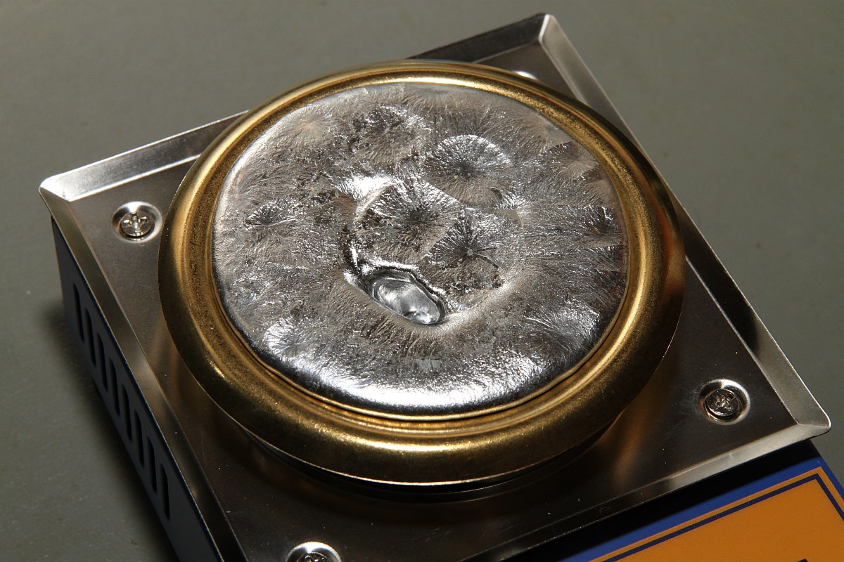 Das Einschmelzen hat keine Viertelstunde gedauert - es riecht kaum, spritzt nicht und geht alles völlig streßfrei ab! Beeindruckend ist die Oberflächenspannung bei flüssigem Zinn...