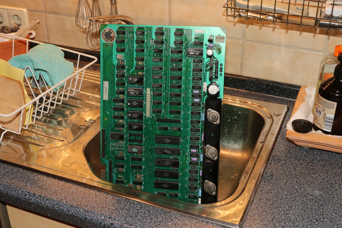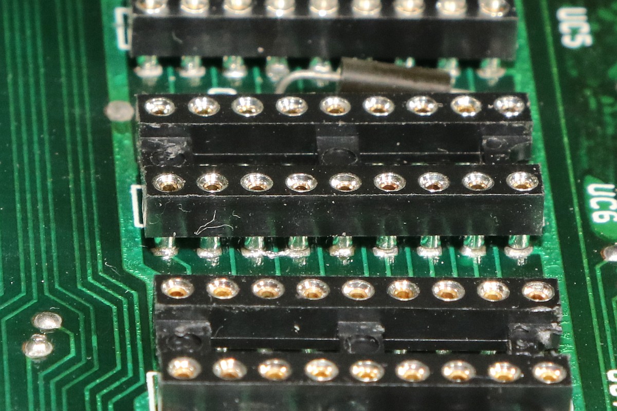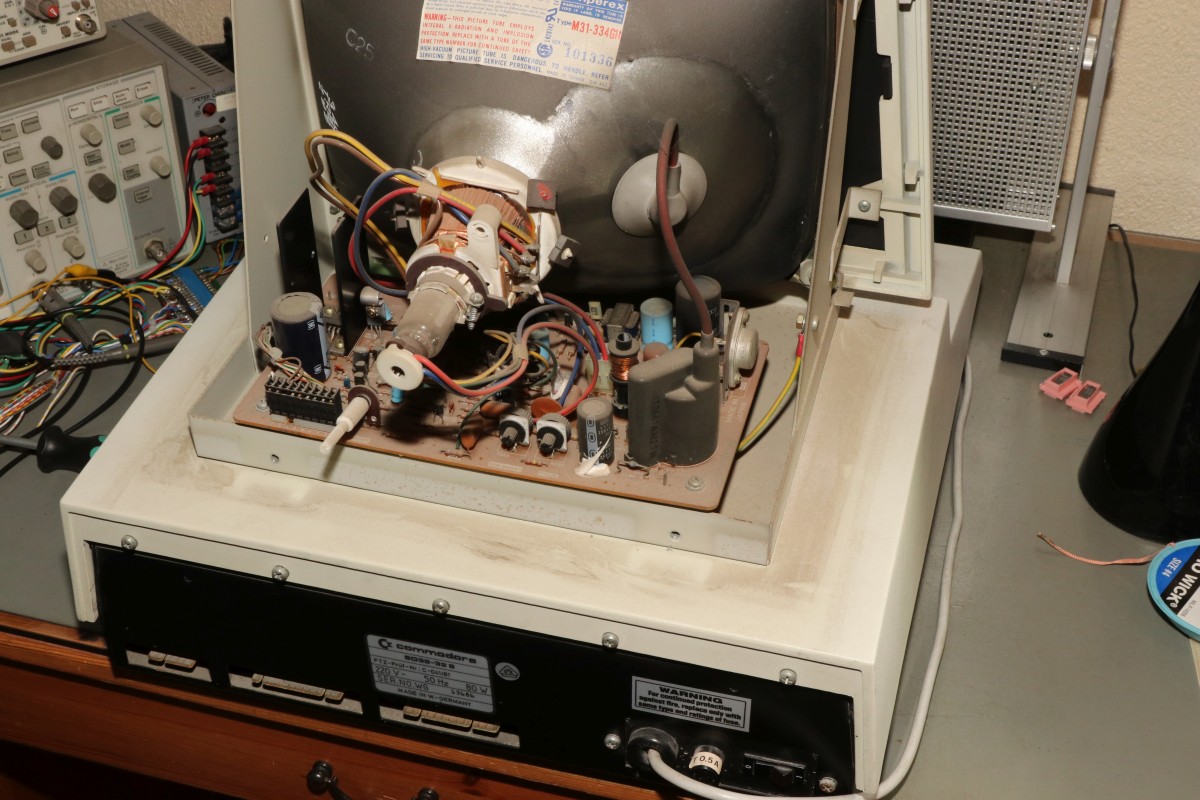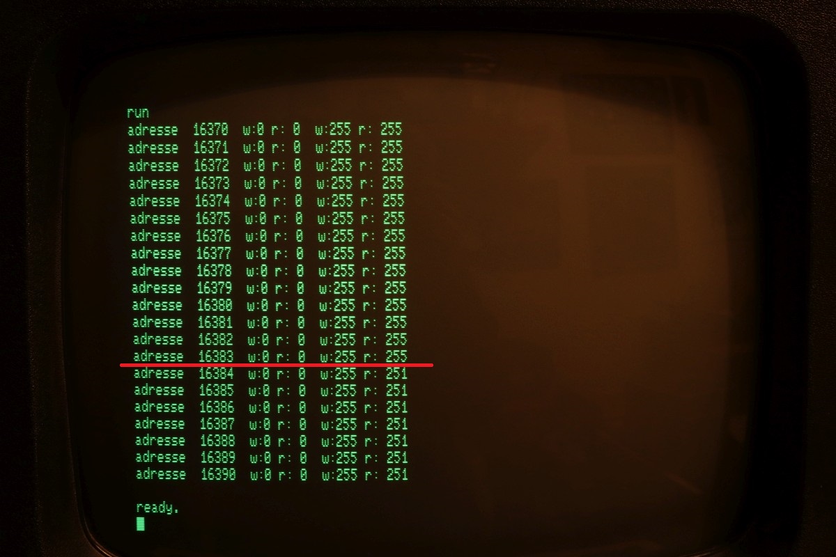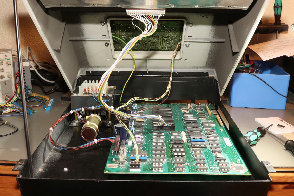 {Der CBM 4032/80} Irgendwie gibt es den garnicht... Oder doch? Aber der Reihe nach! Zu Beginn des Jahres wanderte ich nach einem anstrengenden Arbeitstag auf meiner Dienstreise so die Kastanienallee in Berlin entlang, wie mein Blick auf die fantastischen Schaufensterauslagen eines kleinen Computerladens fiel... DEN Rechner hätte ich auch gerne in meiner Sammlung, dachte ich mir. Ein halbes Jahr später schlug das Leben gnadenlos zu - der Besitzer verstarb, der Schaufensterinhalt musste schnell verkauft werden, da wurde ich in diversen Foren auf das Angebot aufmerksam. Und zu guter Letzt - und Dank einiger sehr netter Leute - bin ich nun an diesen Rechner gekommen. Seither ist es mir deutlich besusst geworden, dass alles sehr vergänglich ist und ich frage mich, was wohl mal mit meinen Geräten passieren wird. Aber heute noch nicht! Gekauft ungeprüft, wie gesehen... ich bin gespannt! Ein CBM Modell 4032/80. Moment, die Variante gibt es doch garnicht? Der CBM-Aufbau erinnert mich immer an meine Motorhaube beim Auto... Die Innereien sind verstaubt, aber trocken. Das Board ist aber kein 4032er... Mal sehen, was hinten so draufsteht: War klar - 8032-32B. Daher auch das 8032-80er Board innen drin. Das Label vorne scheint nicht original zu sein. Ungeduldig, wie ich bin, hab ich gleich mal eingeschaltet. Es tat sich - nichts... Das lag aber nur am Spannungsversorgungsstecker, ein Kontakt war schon mal etwas heißgelaufen, das ließ sich mit dem Rein-Raus-Spielchen lösen! Auweh... "Not great, not terrible!". Der Rechner lebt auf Anhieb - die Videorams dürften einen Schuss haben! Die Tastatur geht, die Zeichen lassen sich an bestimmten Adressen nicht korrekt abspeichern. Die Freude ist schon mal groß! Nach einer halben Stunde allerdings - das Gerät war ausgeschaltet aber eingesteckt - gab es aus dem Labor ein lautes "Plopp!" gefolgt von einem intensiven "Stink!". Klassischer Netzfilter-Fail! Wenn man den ausbauen will, muss man alles demontieren, sonst kommt man nicht an die Steckverbinder auf der Monitorplatine und das Erdungskabel am Monitorchassis dran!br> Alles mit wenigen Schrauben zu demontieren, sehr Wartungsfreundlich. Auch das Motherboard muss raus! Interessant: Die ROMs sind teilweise durch OTP-EPROMs ersetzt. Und weil 2732 nicht pinkompatibel mit den Mask-ROMs ist (oder 2532), gibt es Adaptersockel und umgebogene Beinchen! Hier ebenso: Hier ist ein Teil des dynamischen Arbeitssspeichers (4116). So, das Netzteil ist lose. Das Netzfilter befindet sich unter dem Trafo. Rustikale, deutsche Verdrahtungstechnik... Und solange ich auf das bestellte Ersatzfilter warte, kann ich ja mal die Platine putzen. Danach gründlich abtrocknen und mit dem Heißluftfön trockenpusten. Es lohnt sich! Die folgenden Platinenfotos sind überwiegend hoch auflösend. Auf Klick sieht man die ganze Pracht. Das ist übrigens der kleine Stinker... die gehen immer kaputt. Es geht sicher bald weiter!. {Das Netzfilter} . Das neue Netzfilter ist eingetroffen - nicht unbedingt nötig zur Reparatur, aber es hilft gegen EMV-Störungen. Der Transformator ist noch deutsche Wertarbeit - das erkennt man nach den Putzen. Auch die Bodenwanne erstrahlt nach dem Putzen in neuem Glanze... Da muss ich doch gleich mal das saubere Motherboard mit reinlegen. {Das Video-RAM} Die zwei Kilobyte Videospeicher stecken in den vier Stück 2114. Dem Monitorbild nach haben sie einige Defekte, ich tausche gleich mal alle aus. Das Auslöten gestaltet sich schwierig. Alle ICs haben nach innen gebogene Beinchen, damit sie beim Wellenlötbad nicht von der Platine hüpfen. Entlöten wird damit allerdings etwas problematischer. Die Dinger krallen sich fest. Saubere Sockel... Ja, der Heißluftfön hat die Platine etwas delaminiert, die ist echt empfindlich und verfärbt sich leicht... Nach dem Einschalten sind die Fehlzeichen weg... Aber hey, dafür lispelt der CBM jetzt. Comofofe... ich muss unwillkürlich an den Tyrannosaurus Rex mit Sprachfehler denken. Manche Tasten gehen problemlos, manche lösen je Spalte unterschiedlich aus und manche gehen sofort in die Autorepeat-Schleife - ganz seltsam! Der Vergleich der richtigen mit den falschen Zeichen im ASCII-Code liefert die Erkenntnis, dass Bit 1 und Bit 2 immer den gleichen Wert haben - das sollte ja so nicht sein. Vorher war das nicht so, ich sehe mir mal die Sockel an... Eine winzige Lötbrücke auf der Oberseite! Keine Ahnung, wie sowas da hin kommen kann. Endlich: der Rechner lispelt nicht mehr - das komische Autorepeat ist jetzt auch weg. Alles geht so, wie es soll, außer den dynamischen RAMs. Angezeigt werden beim Start nämlich nur 16k... {Das dynamische RAM} Die dynamischen RAMs 4116 mir drei Versorgungsspannungen sind ein steter Quell der Freude... Die gehen eigentlich immer kaputt. Gottseidank ist das diesmal im oberen RAM-Bereich, so läuft das Betriebssystem ungestört. Wer nicht sinnlos alle acht oberen RAMs tauschen möchte, analysiert mal den selbst geschriebenen Speichertest: 251 statt der erwarteten 255 - also vier zu wenig. Das ist Bit 2. Und Bit 2 befindet sich bei der oberen 16k-Bank in Baustein UA14. Also raus damit - diesmal bin ich vorsichtiger und sauge geduldig mit Heißluftunterstützung (200°C). Ich hab noch feine Sockel und noch feinere Keramik-4116er. Und schon sind die 32k wieder verfügbar! Nun ist der Rechner vollständig funktionsfähig - und toll aussehen tut er auch noch... Jetzt bleibt mir nur noch übrig, das Monitor-Chassis zu recappen!. {Kontaktprobleme} vorher allerdings möchte ich noch das Kontaktproblem am Stromversorgungsstecker beheben. Wenn man im Internet unter "MOLEX Serie KK" mit 3,96mm Stiftabstand sucht - bei den 9-poligen Steckverbindern wird man fündig. Das Set beinhaltet alles, was man benötigt: Stecker, Buchsengehäuse und Crimpkontakte... Der eine Pin am Originalstecker ist mächtig verzundert - der Federkontakt dürfte ähnlich ramponiert aussehen. Der Stecker lässt sich ganz leicht herauslöten, indem man jeweils eine Lötstelle flü