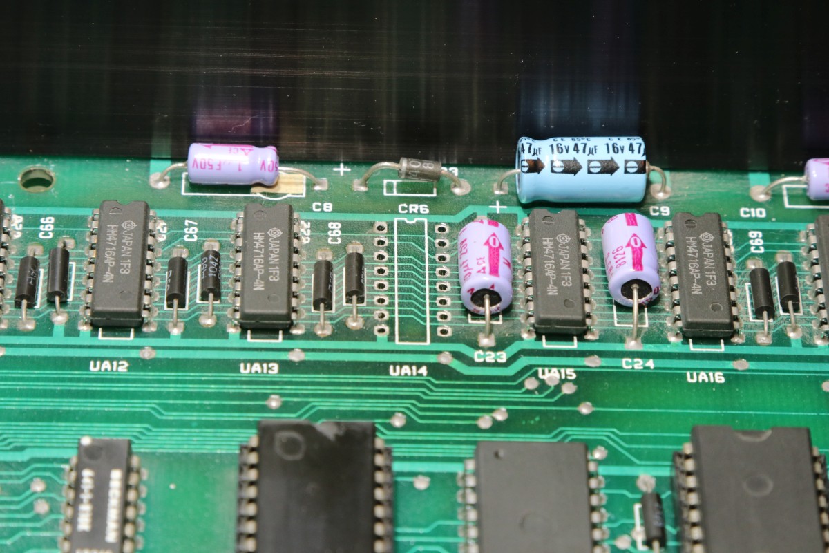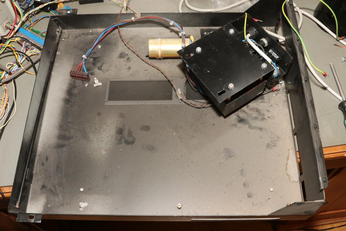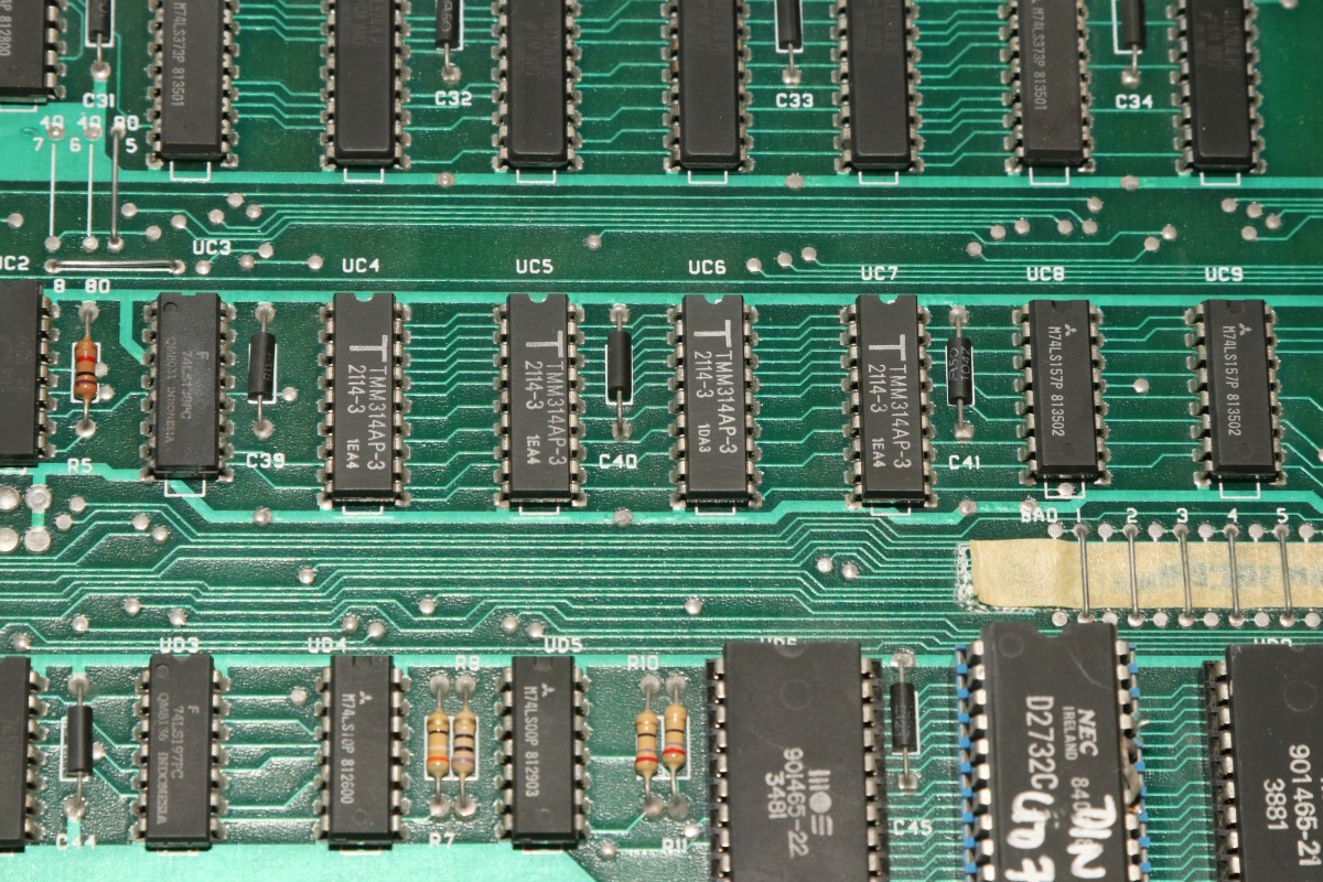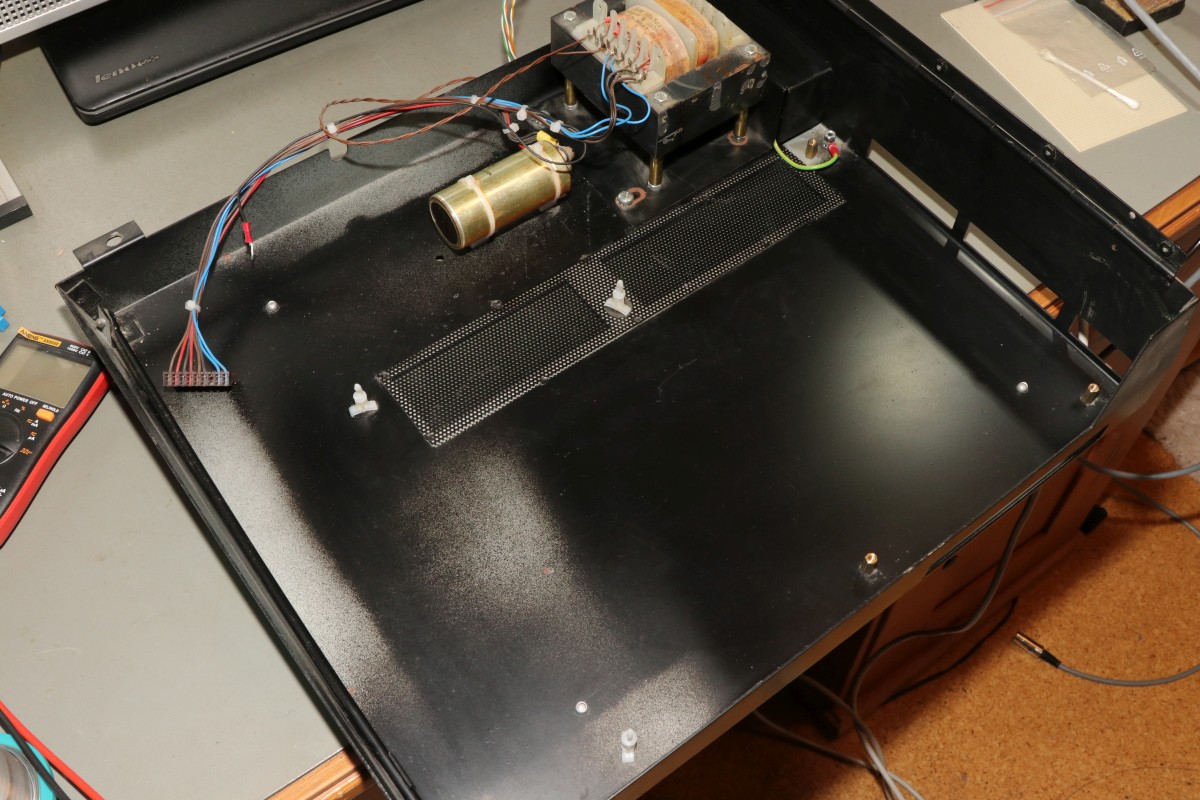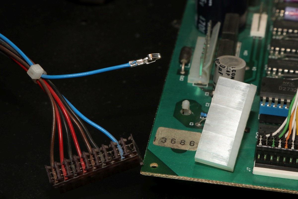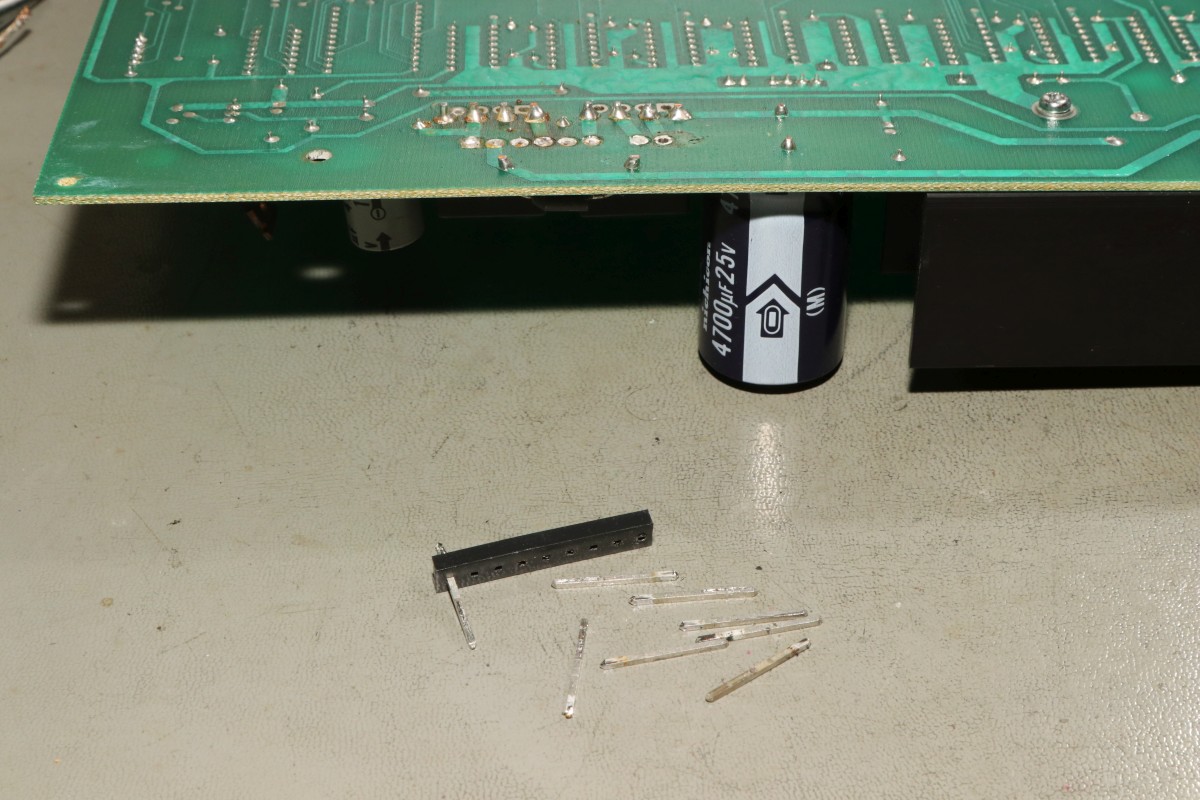{Der CBM 4032/80} Irgendwie gibt es den garnicht... Oder doch? Aber der Reihe nach! Zu Beginn des Jahres wanderte ich nach einem anstrengenden Arbeitstag auf meiner Dienstreise so die Kastanienallee in Berlin entlang, wie mein Blick auf die fantastischen Schaufensterauslagen eines kleinen Computerladens fiel... DEN Rechner hätte ich auch gerne in meiner Sammlung, dachte ich mir. Ein halbes Jahr später schlug das Leben gnadenlos zu - der Besitzer verstarb, der Schaufensterinhalt musste schnell verkauft werden, da wurde ich in diversen Foren auf das Angebot aufmerksam. Und zu guter Letzt - und Dank einiger sehr netter Leute - bin ich nun an diesen Rechner gekommen. Seither ist es mir deutlich besusst geworden, dass alles sehr vergänglich ist und ich frage mich, was wohl mal mit meinen Geräten passieren wird. Aber heute noch nicht! Gekauft ungeprüft, wie gesehen... ich bin gespannt! Ein CBM Modell 4032/80. Moment, die Variante gibt es doch garnicht? Der CBM-Aufbau erinnert mich immer an meine Motorhaube beim Auto... Die Innereien sind verstaubt, aber trocken. Das Board ist aber kein 4032er... Mal sehen, was hinten so draufsteht: War klar - 8032-32B. Daher auch das 8032-80er Board innen drin. Das Label vorne scheint nicht original zu sein. Ungeduldig, wie ich bin, hab ich gleich mal eingeschaltet. Es tat sich - nichts... Das lag aber nur am Spannungsversorgungsstecker, ein Kontakt war schon mal etwas heißgelaufen, das ließ sich mit dem Rein-Raus-Spielchen lösen! Auweh... "Not great, not terrible!". Der Rechner lebt auf Anhieb - die Videorams dürften einen Schuss haben! Die Tastatur geht, die Zeichen lassen sich an bestimmten Adressen nicht korrekt abspeichern. Die Freude ist schon mal groß! Nach einer halben Stunde allerdings - das Gerät war ausgeschaltet aber eingesteckt - gab es aus dem Labor ein lautes "Plopp!" gefolgt von einem intensiven "Stink!". Klassischer Netzfilter-Fail! Wenn man den ausbauen will, muss man alles demontieren, sonst kommt man nicht an die Steckverbinder auf der Monitorplatine und das Erdungskabel am Monitorchassis dran!br> Alles mit wenigen Schrauben zu demontieren, sehr Wartungsfreundlich. Auch das Motherboard muss raus! Interessant: Die ROMs sind teilweise durch OTP-EPROMs ersetzt. Und weil 2732 nicht pinkompatibel mit den Mask-ROMs ist (oder 2532), gibt es Adaptersockel und umgebogene Beinchen! Hier ebenso: Hier ist ein Teil des dynamischen Arbeitssspeichers (4116). So, das Netzteil ist lose. Das Netzfilter befindet sich unter dem Trafo. Rustikale, deutsche Verdrahtungstechnik... Und solange ich auf das bestellte Ersatzfilter warte, kann ich ja mal die Platine putzen. Danach gründlich abtrocknen und mit dem Heißluftfön trockenpusten. Es lohnt sich! Die folgenden Platinenfotos sind überwiegend hoch auflösend. Auf Klick sieht man die ganze Pracht. Das ist übrigens der kleine Stinker... die gehen immer kaputt. Es geht sicher bald weiter!. {Das Netzfilter} . Das neue Netzfilter ist eingetroffen - nicht unbedingt nötig zur Reparatur, aber es hilft gegen EMV-Störungen. Der Transformator ist noch deutsche Wertarbeit - das erkennt man nach den Putzen. Auch die Bodenwanne erstrahlt nach dem Putzen in neuem Glanze... Da muss ich doch gleich mal das saubere Motherboard mit reinlegen. {Das Video-RAM} Die zwei Kilobyte Videospeicher stecken in den vier Stück 2114. Dem Monitorbild nach haben sie einige Defekte, ich tausche gleich mal alle aus. Das Auslöten gestaltet sich schwierig. Alle ICs haben nach innen gebogene Beinchen, damit sie beim Wellenlötbad nicht von der Platine hüpfen. Entlöten wird damit allerdings etwas problematischer. Die Dinger krallen sich fest. Saubere Sockel... Ja, der Heißluftfön hat die Platine etwas delaminiert, die ist echt empfindlich und verfärbt sich leicht... Nach dem Einschalten sind die Fehlzeichen weg... Aber hey, dafür lispelt der CBM jetzt. Comofofe... ich muss unwillkürlich an den Tyrannosaurus Rex mit Sprachfehler denken. Manche Tasten gehen problemlos, manche lösen je Spalte unterschiedlich aus und manche gehen sofort in die Autorepeat-Schleife - ganz seltsam! Der Vergleich der richtigen mit den falschen Zeichen im ASCII-Code liefert die Erkenntnis, dass Bit 1 und Bit 2 immer den gleichen Wert haben - das sollte ja so nicht sein. Vorher war das nicht so, ich sehe mir mal die Sockel an... Eine winzige Lötbrücke auf der Oberseite! Keine Ahnung, wie sowas da hin kommen kann. Endlich: der Rechner lispelt nicht mehr - das komische Autorepeat ist jetzt auch weg. Alles geht so, wie es soll, außer den dynamischen RAMs. Angezeigt werden beim Start nämlich nur 16k... {Das dynamische RAM} Die dynamischen RAMs 4116 mir drei Versorgungsspannungen sind ein steter Quell der Freude... Die gehen eigentlich immer kaputt. Gottseidank ist das diesmal im oberen RAM-Bereich, so läuft das Betriebssystem ungestört. Wer nicht sinnlos alle acht oberen RAMs tauschen möchte, analysiert mal den selbst geschriebenen Speichertest: 251 statt der erwarteten 255 - also vier zu wenig. Das ist Bit 2. Und Bit 2 befindet sich bei der oberen 16k-Bank in Baustein UA14. Also raus damit - diesmal bin ich vorsichtiger und sauge geduldig mit Heißluftunterstützung (200°C). Ich hab noch feine Sockel und noch feinere Keramik-4116er. Und schon sind die 32k wieder verfügbar! Nun ist der Rechner vollständig funktionsfähig - und toll aussehen tut er auch noch... Jetzt bleibt mir nur noch übrig, das Monitor-Chassis zu recappen!. {Kontaktprobleme} vorher allerdings möchte ich noch das Kontaktproblem am Stromversorgungsstecker beheben. Wenn man im Internet unter "MOLEX Serie KK" mit 3,96mm Stiftabstand sucht - bei den 9-poligen Steckverbindern wird man fündig. Das Set beinhaltet alles, was man benötigt: Stecker, Buchsengehäuse und Crimpkontakte... Der eine Pin am Originalstecker ist mächtig verzundert - der Federkontakt dürfte ähnlich ramponiert aussehen. Der Stecker lässt sich ganz leicht herauslöten, indem man jeweils eine Lötstelle flü