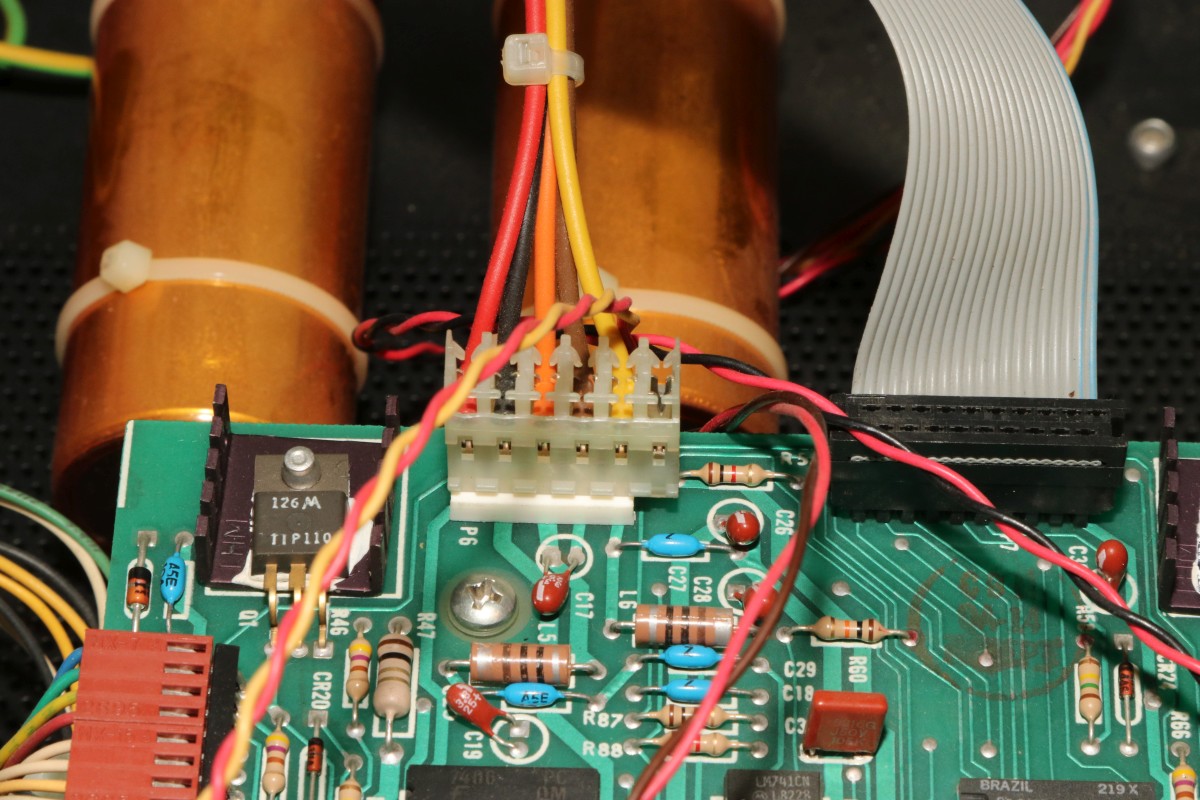 {CBM 8250 Doppelfloppy} Auf der schönen Alb ist mir ja ein gewaltiges CBM-Konvolut zugelaufen - dieses schöne CBM Doppelfloppy gehört auch mit dazu. Zustand: spannend - zumindest das Entstörfilter hat deutlich auf sich aufmerksam gemacht... Stirnseitig laden zwei imposante 5 1/4 Zoll Diskettenlaufwerke zum Füttern mit Datenträgern ein... Nach der ersten Grundreinigung sieht das Gerät von Außen schon mal fast wie neu aus. Je nach CBM Computer sollte man das passende Verbindungskabel parat haben: die älteren CBMs haben noch den Platinenstecker für den IEEE 488 Bus, bei den SK-Modellen ist es auf beiden Seiten der IEEE-Stecker. Alt: Nicht so alt... Das Motherboard des Diskettenlaufwerks ist überraschend sauber und extrem komplex. Hier steckt mehr Rechenpower drin, als im Hauptrechner. Das Platinenfoto ist hoch auflösend! Hier habe ich mal die einzelnen Bausteinen ihrer Funktion zugeordnet. Fun Fact: die 6530 sind die fiesen RRIOTs (ROM-RAM-IO-Timer), die auch schon im KIM ihr Unwesen treiben. In diesen Bausteinen ist nicht nur ein 6532 versteckt, sondern auch gleich ein spezifisches ROM. Wenn die kaputt gehen, dann wird der Ersatz trickreich. Die Laufwerke sind... äh... einfach. Laufwerk 0 (rechts) besitzt eine Abschirmplatte und die Laufwerkselektronik für zwei Laufwerke, Laufwerk 1 (links) besitzt Kabel... Klar, wenn ich eh immer nur ein Laufwerk gleichzeitig ansteuern kann, dann kann ich mir auch die Elektronik dafür sparen. Costdown at it's finest... Das Netzfilter hat sich erbrochen. Um das Netzfilter zu tauschen, muss die Trafoeinheit demontiert werden. Um diese zu entfernen, muss das linke Laufwerk ausgebaut werden. Als Erstes entfernt man den Stecker für die Schreib-/Leseköpfe. Hier sieht man noch mal die komplette Laufwerkselektronik - die Stecker an den Seiten sind jeweils für ein Laufwerk, die hinteren müssen für Laufwerk 1 abgesteckt werden. Zwischendrin ein Blick auf das Motherboard: CPU2, VIA und RRIOT. CPU1 und eines der ROMs. Das zweite ROM für CPU1 und zwei 6532, die bei Commodore frecher Weise C010750 heißen... Am Power-Stecker hat man einen überflüssigen Pin spendiert. Hier ist der IEEE 488 Stecker: Der sieht von hinten dann so aus: Ohne Deckel entfernt sich das Netzteil leichter. An die Laufwerksschrauben kommt man nur von unten ran - pro Laufwerk sind es drei Schrauben! Das Netzteil kommt am Laufwerk echt nicht vorbei... Bei den LED-Steckern sollte man sich die Orientierung merken. Ebenso bei den Steckern zur Laufwerksmechanik. Es gibt hier keinen Verpolschutz. Upps... da fällt mir was entgegen. Das war die Tachoscheibe. Die hält wieder bombenfest mit einem Kraftkleber meiner Wahl. Die Laufwerksmechanik ist echt einfach gebaut, läuft aber nach 40 Jahren immer noch. Ein paar Tropfen harzfreies Öl erfreut Lager und Schneckenantriebe. Der Schrittmotor für die Kopfpositionierung ist rustikal. Jetzt, wo das Laufwerk entfernt ist, kann man auch den Trafo ausbauen. Ein Erdungskabel muss dafür auch gelöst werden. Man muss den Trafo nicht komplett ausbauen, es reicht, wenn man den Block auf den Rücken dreht... Das alte Filter wird abgeschraubt, die Schraube kann man gleich wieder reindrehen, wenn das neue Filter keine Öse hat... Der Trafo ist deutsch... erstaunlich. Das neue Filter hatte ich zufällig im Fundus: vollständig isoliert, das kann ich ganz frech unter der Metallabdeckung bei Sicherung und Schalter verstecken. Die Zuleitung geht über eine Lüsterklemme, die beiden Ableitungen werden an Schalter und Sicherung gelötet. Hier die Leiche: Jetzt wird's spannend: ob das Laufwerk wohl noch funktioniert? Beim Einschalten blinken die drei LEDs vorschriftsmäßig. Beide Diskettenlaufwerke werden erkannt. Die ersten Disketten laufen, dann erwische ich eine, die schon etwas klebt - das Laufwerk gibt fiese, quietschende Geräusche von sich... Ein Ohrstäbchen mit Alkohol besitigt das Problem wieder, der Kopf war nur verdreckt. Mittlerweile habe ich sogar eine Reinigungsdiskette - auch diese funktioniert einwandfrei! Lesen und Schreiben funktioniert, ebenso das Formatieren von neuen Disketten. Profitip: wenn man sich nicht sicher ist, ob die Disks schmieren, dann besser in Laufwerk D1 einlegen. Da kommt man problemlos mit einem Wattestäbchen ran. Für das rechte Laufwerk D0 muss man ganz schön was demontieren... Die Köpfe sind empfindlich - nur was für Feinmotoriker! Das übrigens ist der Befehl zum Formatieren einer neuen Disk. |
