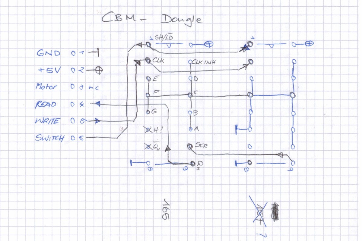 {CBM Programmschutz-Dongle} Im Beifang zum CBM-Konvolut fand ich einen Programmschutzdongle für den Cassetten-Port. Diese Teile wurden damals wie heute dafür verwendet, dass man Programme nicht als Raubkopie verwenden konnte. Ohne Dongle lief nichts. Heute benutzt man ausgeklügelte Crypto-Routinen, aber was war in den 80ern drin? Da ich das Programm nicht besitze und der Dongle auch keine Beschriftung mehr aufweist, will ich doch einfach mal Zerobrain-mäßig nachsehen. Wo ist meine Beisszange? Okay, die Beisszange kommt später. Zuerst wird das Kunststoffgehäuse mit viel wohldosierter Wärme gefügig gemacht: Zuerst ziert es sich noch.... ... aber es geht rückstandslos ab. Toll. Komplett vergossen. Aber auch hier helfen 200°C und Geduld. Das Harz wird weich und krümelig, den Rest besorgen Beisszange und Schraubenzieher. Und von Unten - interessant: nicht alle Pins der unkenntlich gemachten ICs sind verlötet. Was da wohl dahinter steckt? Heute habe ich mal keine Geduld: auf den Chips stehen oft interessante Infos als Klartext, aber dazu muss man erst mal an diese gelangen. Der Heißluftfön hilft auch hier. Und die Beisszange. Der erste Chip geht mittels Fön und Uhrmacherschraubenzieher nur beschädigt raus, der zweite fällt mir perfekt erhalten entgegen. Ich lese etwas von 157 und 165. 165 passt gut - ein 8-Bit Schieberegister 74LS165. Was anderes passt auch nicht an die wenigen Steuersignale und Eingänge des Cassettenports. Der Rest vom zweiten Chip sieht aber auch nicht wie ein 74LS157 (Quad-Multiplexer) aus... Meine Reverse-Engineering-Skizze ist widersprüchlich... {710er Deckel? Die Lösung!} Schlaue Leute in schlauen Foren (VzEkC e. V.) schmunzeln. Da war doch dieser uralte Blondinenwitz mit dem 710er Deckel in der KFZ-Werkstatt, der sich beim Umdrehen als OIL-Deckel entpuppte. Alter Falter - ich hätte nicht gedacht, dass mir das passiert. Da macht doch das Schaltbild auf Anhieb einen richtig guten Eindruck: ein 16-Bit-Schieberegister mit hartverdrahtetem Bitmuster (Eingang nicht verbunden: "1"). |