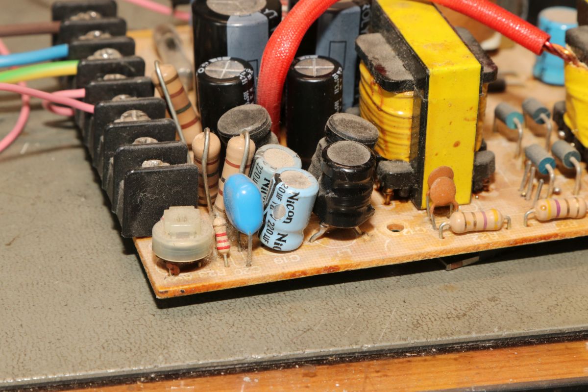 {Arcadenetzteile im Dreierpack - Teil 1: das Normale} Wer mit Arcadeplatinen hantiert, der benötigt Arcade-Netzteile. 5V, 12V und -5V sind nötig, viel Ampere sind gut. Diese Netzteile sind mittlerweile recht günstig und das hat seine Gründe. Erst einmal ist die Schaltung sehr einfach und zweitens nehmen die Hersteller teilweise so richtig billige Komponenten. Ganz selten ist mal ein Treibertransistor durchlegiert, das stellt man im ausgelöteten Zustand schnell mit dem Diodentester fest. Die hier waren in Ordnung, dann bleibt die wahrscheinlichste Ursache: ausgetrocknete Elkos. Sowohl die großen Pufferelkos an den Ausgängen, als auch die kleinen Hilfselkos für Reset, Timing, Überspannung etc. kommen in Frage - einfach alle raus! Die einzigen Elkos, die ich nur auf dringenden Bedarf tausche, sind die 200V-Eingangskreistypen, die sind teuer, schwer zu bekommen und selten defekt. Interessantes Detail bei dieser Art von Netzteilen: sie laufen ohne Grundlast, weil sie ihre Grundlast permanent selbst verbraten. das führt zu (ganz normalen) erheblichen Temperaturen an manchen Lastwiderständen... die Kisten bekommen keinen Umweltengel. {Arcadenetzteile im Dreierpack - Teil 2: das Luxusexemplar} Der zweite Patient kommt im schicken Strangpressgehäuse daher - war bestimmt nicht so billig wie die anderen Geräte... Die Ausgangselkos machen schon optisch dicke Backen... Die HV-Elkos sind O.K.. Hier muss man richtig arbeiten, um die Platine zu demontieren. 2SC3039 ist hier weit verbreitet... Die Ausgangsgleichrichter gehen nur sehr selten kaputt, kommt aber auch mal vor. Hier ist das gute Stück ohne Kühlkörper: Die Pluspole sind markiert - falls nicht, helfen Fotos... Die Ernte hat sich gelohnt. Nach Kondensatortausch funktioniert das Netzteil einbwandfrei. {Arcadenetzteile im Dreierpack - Teil 3: das Billige} Und dann noch der totale Billigheimer - billiges Blech, billige Montage, billige Platine... Lose Pins? Ach... die Transistoren sind rückwärtig montiert - mit aufgelegten Pads... Wie Kraut und Rüben... Wer findet die kalte Lötstelle? Der Schmodder ist Kleber - aber der Elko ist schon gut gewölbt. Und der hier zieht sich schon das Kleid aus, weil's so warm ist... Neubestückt - geht wieder. Bei der Qualität lohnt sich die Arbeitszeit aber nicht wirklich {Der Standard-Schaltplan} Wer nun für so ein Billignetzteil einen Schaltplan sucht, der zumindest ähnlich ist, wird beim Arcadespiel "Badlands" fündig. Die Gegentaktstufe mit 2SC3039 ist hier fast 1:1 mit drin. |