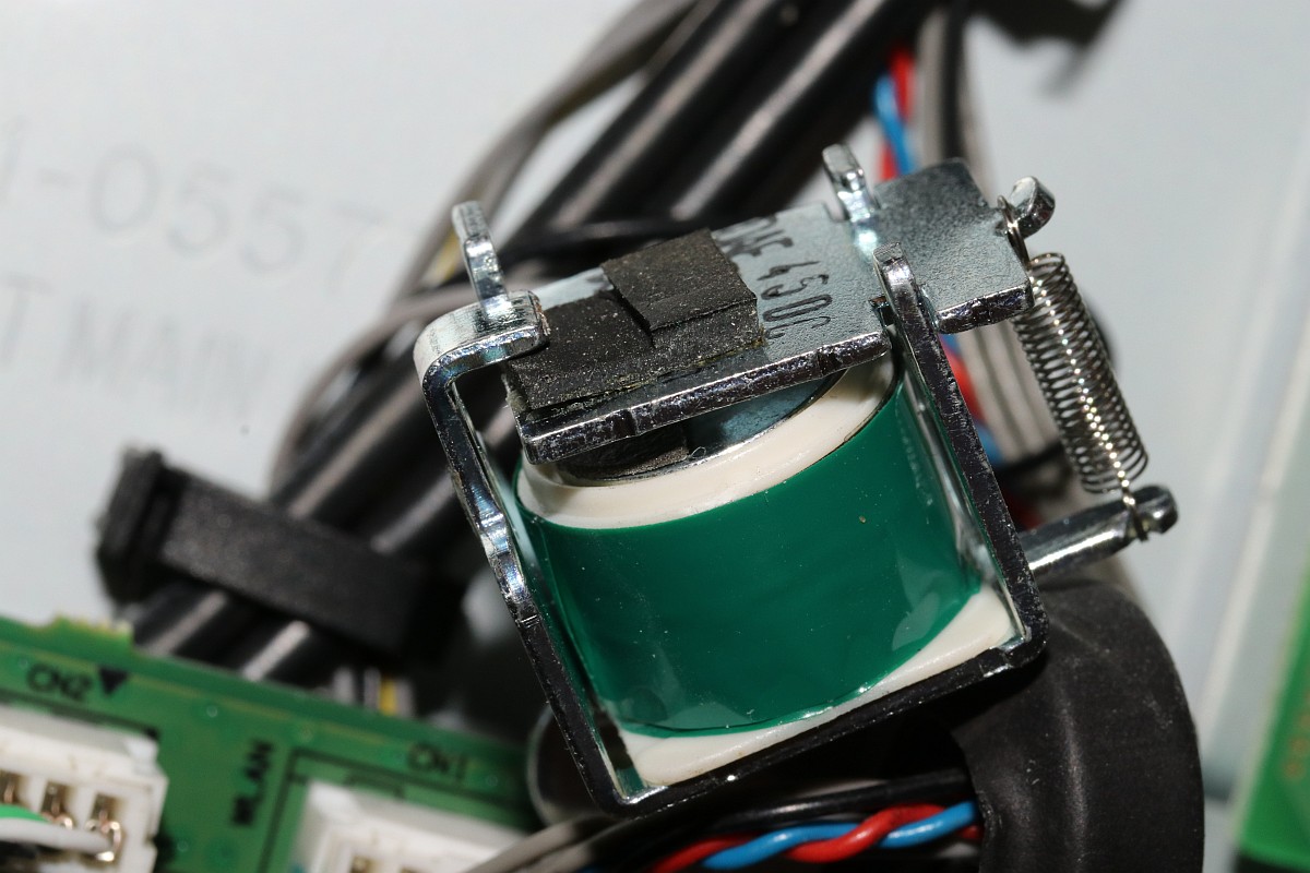 {Samsung CLX-6260FW Error A1-4111} Für mein Hobby benötige ich einen Farbdrucker und Tintenpanscher sind mir ein Graus. Mit den Billiglasern der 100-200 Euro-Klasse habe ich in der Vergangenheit nur schlechte Erfahrungen gemacht, wenn es um farbstarke Ausdrucke geht. Jetzt hatte ich die Schnauze endlich voll (wer billig kauft, kauft zweimal) und habe Geld in die Hand genommen - also eigentlich Geld aus der Hand gegeben. Ein Samsung CLX-6260FW kam mir leicht gebraucht ins Haus. Das Teil ist die Wucht! Nicht nur, dass der Schreibtisch jetzt endlich voll ist und ich kaum noch aus dem Fenster sehen kann, nein! Die Ausdrucke sind fantastisch, selbst mit Billigtoner, das Teil druckt Duplex und schnell und das Teil scannt Duplex und extrem schnell. Also alles richtig gemacht! Auf der Papierfachseite sind zwei Schrauben zu lösen: Diese hier! (Es befindet sich unter der Papierschublade keine weitere Schraube!) Auf der Rückseite... ...sind auch zwei Schrauben zu lösen - die obere Schraube versteckt sich etwas im Inneren, die untere (nicht auf dem Foto) ist einfacher zu finden. Das Seitenteil des Gehäuses lässt sich jetzt ganz leicht nach rechts schieben und kann dann abgenommen werden. Hier sitzt der übliche Übeltäter, ein Arretiermagnet: Nebenbei: vordere und hintere Schrauben sind von unterschiedlicher Bauform - nicht durcheinanderbringen! Der Elektromagnet ist mit genau einer Schraube befestigt, diese kann problemlos rausgedreht werden - für die Befestigung nach der Reparatur sind keinerlei Justagemaßnahmen erforderlich! Abgeschraubt! der Kabelclip kann mit einem Uhrmacherschraubendreher geöffnet werden, dann kommt man besser an alles ran. Auf der Spule (sieht man hier nicht) und auf der Oberseite der Klappe (das ist hier die Ursache des Fehlers!) befinden sich Schaumstoffpolster. Die werden mit der Zeit klebrig und lassen den Anker nicht auf Anhieb frei! Kann man mit einem Skalpell leicht abheben und klebt echt eklig. Dieser Puffer kann durch ein beliebiges elastisches Material der richtigen Dicke ersetzt werden. Ich hatte aufklebbare Gummmifolie da, aber die war viel zu dick. Man muss ein wenig mit der Dicke experimentieren - weniger ist besser, ist das Teil zu dick, dann arretiert der Anker die drehende Scheibe nicht und diese läuft etliche Male rund... Man merkt es beim Einschalten! Dann kann man immer noch mit einem Skalpell nachbessern... Zumindest mein Samsung läuft jetzt wieder perfekt! |