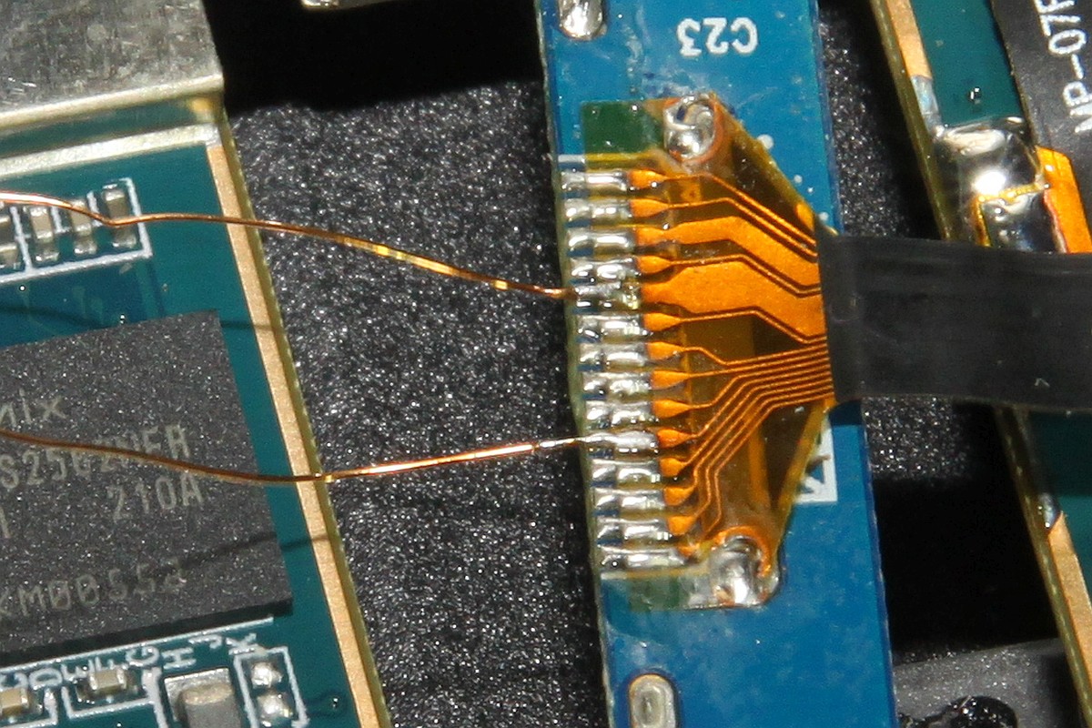 Der Apple Anschlussstecker - pfriemelig! Es gibt Adapterkabel, ich ziehe die direkte Methode vor.