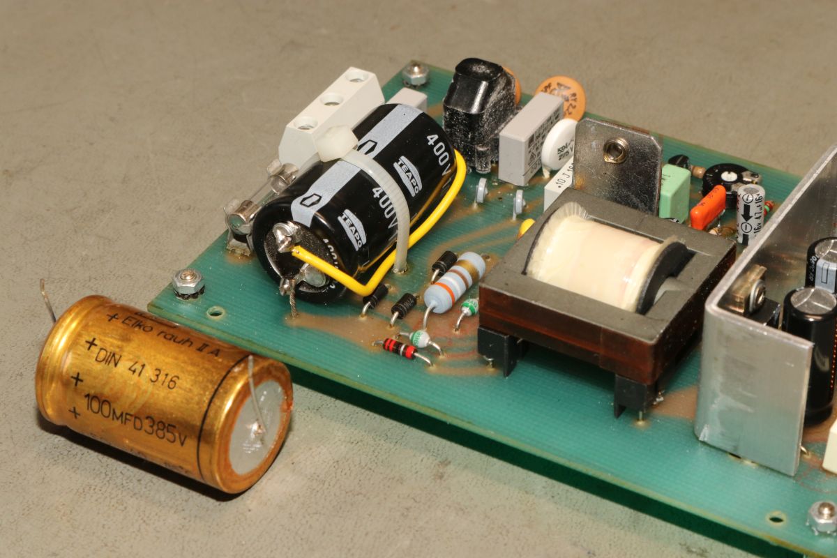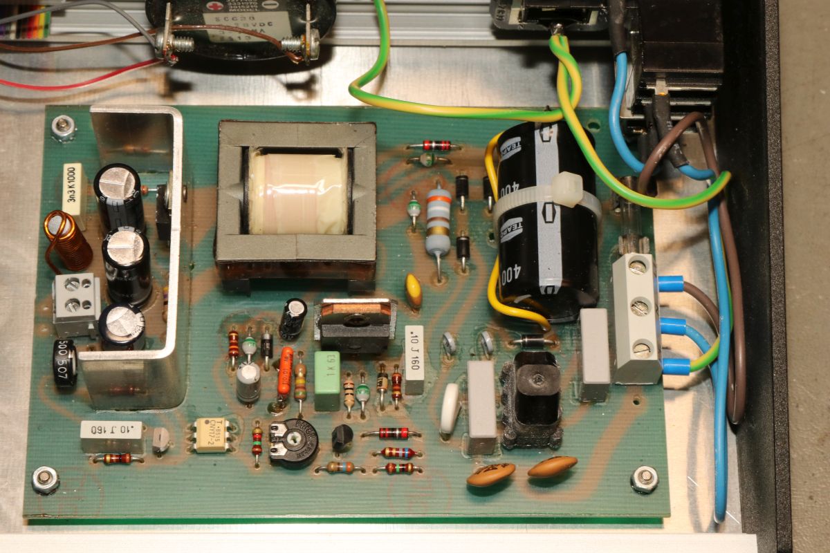 {Burr-Brown TM77 Terminal} 1982 gab es von Burr-Brown eine ganze Reihe von Terminalmodulen mit 6502 und hübschen Bubble-LED-Displays: 2024 landeten dann zwei dieser Teile bei mir. Einerseits haben mich die Displays fasziniert, andererseits wollte ich mal sehen, ob man damit nicht manchem SBC zu einer Datenausgabeeinheit verhelfen kann... Ergänzt werden diese Terminals hier durch ein formschönes Aluminiumgehäuse und primärgetaktete Schaltnetzteile. Die Netzteile allerdings sind nach so vielen Jahren von fragwürdiger Qualität - entgegen meiner sonstigen Überzeugung entschließe ich mich hier aus Sicherheitsgründen für ein umfangreiches Recapping.... Ein schönes altehrwürdiges primärgetaktetes Schaltnetzteil geht auch ohne hochintegrierten Controller! Und ja, der Trafokern ist gebrochen. Das funktioniert aber trotzdem, pfeift halt etwas. Ein Problem, welches sich mit dünnflüssigem Sekundenkleber lösen lässt. Die 68nF X-Kondensatoren fliegen sicherheitshalber auch raus, es sind zwar nicht die bernsteinfarbenen RIFA-Rauchbomben, aber sicher ist sicher. 2200µF 6V - die 6V sind ganz schön auf Kante genäht... Aber die Frako fliegen eh raus, sie neigen gerne mal zu kompletten Kurzschlüssen. Mein Kondensatordealer hat geliefert. Die kleinen Teile sind schnell gewechselt. Mehr Probleme macht die Beschaffung eines Ersatzes für die 100µF/385V in axialer Bauform. Radiale Elkos gibt es wie Sand am Meer - da muss ich eben etwas improvisieren. Und nach der Beseitigung von einigen kalten Lötstellen im Steckerbereich findet das Netzteil wieder seinen alten Platz. Sauber verkabelt: Es piept und leuchtet. Der Cursor ist kaum zu sehen... Nach der Eingabe von einigen Zeichen kommt Freude auf: das Gerät funktioniert soweit. Die Displays sind nicht sehr hell, aber ich finde die Farbe so schön... Nächster Plan: Inbetriebnahme der externen RS-232-Kommunikation. |