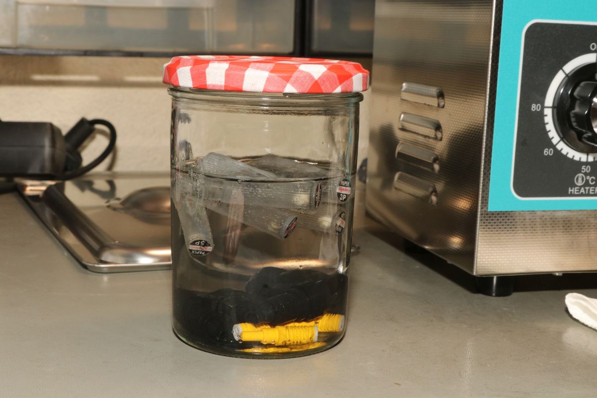 {Vevor Ultraschall Reinigungsbad} Nachdem ich tagelang versucht habe, eingetrocknete Tuschestifte für meinen Plotter wieder gangbar zu machen, habe ich mir ein neues Spielzeug gegönnt. Hier nun meine Erfahrung mit Chinabottichen und völlig eingetrockneten Tuschestiften. Die Stifte lagen vorab für drei Tage in Spiritus, was aber die Tusche nicht wirklich beeindruckt hat. Deswegen hab ich mir ein VEVOR 3,2l Bad für knapp über 60 Euro geleistet. Das war trotz Chinahändler in zwei Tagen da... Tschechischer Containerstandort... Edelstahl mit Schutzfolie... Sieht von außen sauber aus und auch die Bedienknöpfe laufen sauber und fest. Das Blech vom Gehäuse ist zwar Edelstahl, aber es ist sehr dünn... Wanne und Korb hingegen sind sehr stabil. Und man kann auch Tee kochen... Mit Wasser und einem Schuss Spüli gefüllt - die angegebenen 3,2l sind ein Witz, nach 2l war die Wanne voll. Die Chinesen haben irgendwie andere Liter. Die ersten Plastikteile in den Korb gelegt und angeschaltet... die Tinte schießt nur so aus allen Öffnungen: Der Deckel dämpft das Zirpen... Nach 10 Minuten: noch nicht fertig - schwarze Brühe entsorgt und noch mal neu gefüllt: Nach weiteren 10 Minuten: grandioses Ergebnis! Vorsichtshalber habe ich die Teile noch mal in klares Wasser gelegt: keinerlei Reste sichtbar. So sieht das dann ohne Nachbearbeitung aus: Mit Tusche gefüllt und zusammengebaut: Alle Stifte haben auf Anhieb funktioniert - kein mühsames Nachbearbeiten der dünnen Kanülen mehr, kein Siff mit Tuscheflecken und stundenlanges Rumgeklopfe... Und dann hat mich natürlich noch das rustikale Innenleben des Gerätes interessiert. Das dünne Blech wird von verzweifelten Metallgewindeschrauben gehalten - die haben bei der Blechstärke kaum Gewindegänge zu erwarten und sind dementsprechend lümmelig... da muss man ein Auge drauf haben und ggf. eine Blechschraube reinwürgen. Die Elektronik ist ordentlich, Schutzisolierung vorhanden. Die beiden Ultraschallgeber sehen brachial aus... Der Einsatz einer 12.9er Schraube erzählt von den Kräften, die hier auftreten. Die Temperaturregelung erfolgt durch einen aufgeklebten Kapillar-Thermostaten und die Klingel an der Zeitschaltuhr ist süß. Immerhin alles Mechanik - das dürfte eine Weile halten. Fazit: die Reinigungswirkung ist für den Preis echt unschlagbar. Ich kann natürlich noch nicht beurteilen, wie lange das Gerät halten wird, das wird sich zeigen. Aber es ist bis auf die Verschraubung der Bodenplatte sauber aufgebaut. Kein Profigerät, aber für den Hobbygebrauch sehr brauchbar! |
