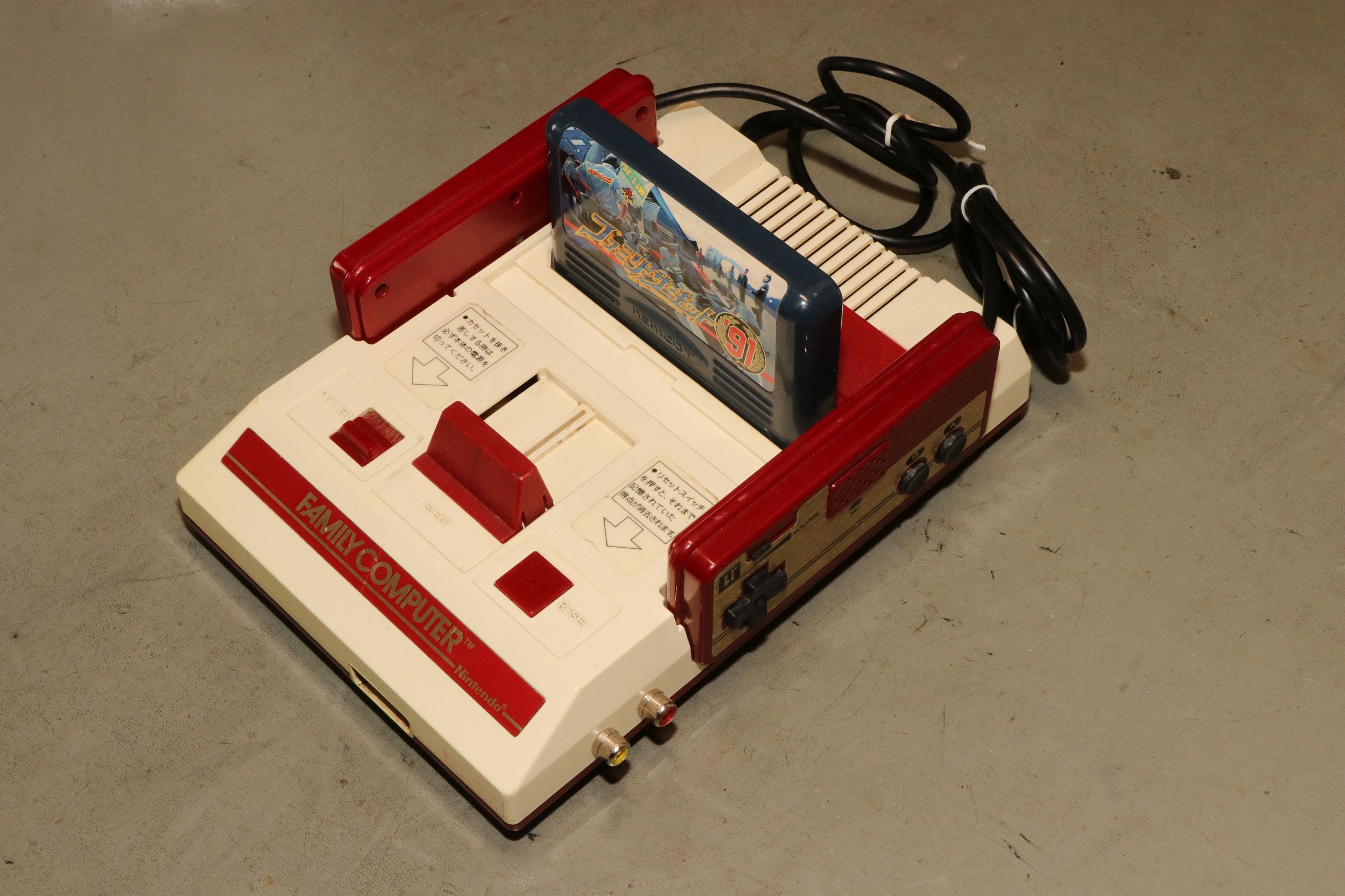 {Nintendo Famicom} Gerade zugelaufen: die japanische Version des Nintendo NES, der Nintendo Family Computer, kurz "Famicom" von 1983. Leider defekt. Eines der beiden fest verkabelten Bedienteile - mit Mikrofon... Der Cartridge-Stecker ist rustikal. Die Bodenwanne bietet Befestigungsschlitze für das Famicom-Disc-System. Cooles Rennautospiel - leider kann ich kein Japanisch. Auch die umfangreiche Bedruckung der Rückseite hilft mir nicht weiter... Na dann werde ich mal sehen, was drin ist. Die Demontage gestaltet sich problemlos, alles ist normal geschraubt. Da wurde schon etwas modifiziert: separater Video- und Sound-Anschluss. Hier findet sich die Nintendo-typische 2A03-CPU (6502 mit allerlei zusätzlichem Gedöhns) und die 2C02-PPU - die "Picture Processing Unit" in der Japan-typischen NTSC-Variante. Auf ein Boot-ROM wurde verzichtet, ohne Cartridge ist das System tot... Das schwarze Kabel klaut sich das Audio-Signal vom Cartridge Stecker. Das beigelegte Steckernetzteil 9V hatte leider die in Europa übliche Beschaltung (Masse außen). Famicom hätte das gerne andersrum. Das Netzteil ist totgebraten, der eingangsseitige 7805 durchlegiert. Hoffentlich hat er mit seinem Tod den Rest geschützt. Nächste Aufgabe: 7805 ersetzen und testen, ob die Board-Elektronik die Tortur überlebt hat... {Nintendo Famicom - die Reparatur} Manchmal ist es einfacher als man denkt. Der Spannungsregler war quicklebendig, dafür war der Eingangselko der Meinung, 2 Ohm Innenwiderstand haben zu wollen... Provisorisch ausgetauscht gegen ein Exemplar mit mehr Bauhöhe - ich bin gespannt, ob der in das Gehäuse passt... Und nach dem Rückbau der Audio-/Video-Pfriemelei wird das Ganze provisorisch in Betrieb genommen: Wow... wir haben ein Videosignal. Gut, wenn man einen Monitor mit Videoeingang hat - allerdings zeigt sich hier, dass PAL-taugliche Geräte im Umgang mit Japan-Konsolen etwas untauglich sind. Der Bildfang ließ sich noch einstellen, Farbe gibt es aber aufgrund abweichender Farbträgerfrequenzen nicht... In Japan herrschte leider NTSC. Vielleicht kann ja mein großer Fernseher Multinorm... Das Spiel ist übrigens "Family Circuit '91" - ein Autorennspiel in Draufsicht von (wer hätte es geahnt?) 1991. |