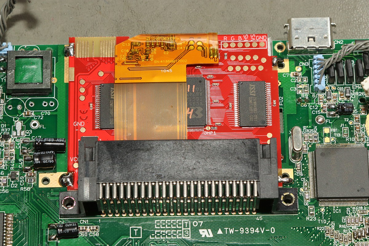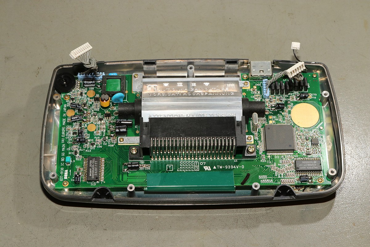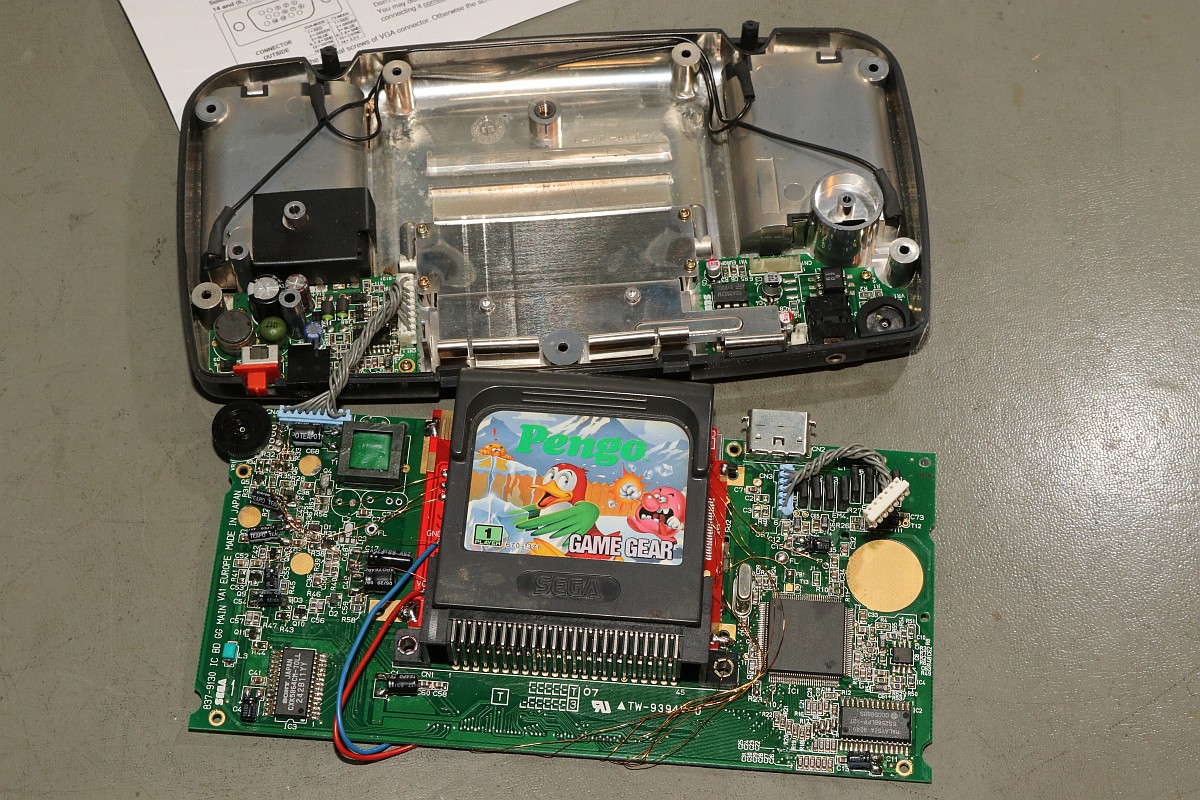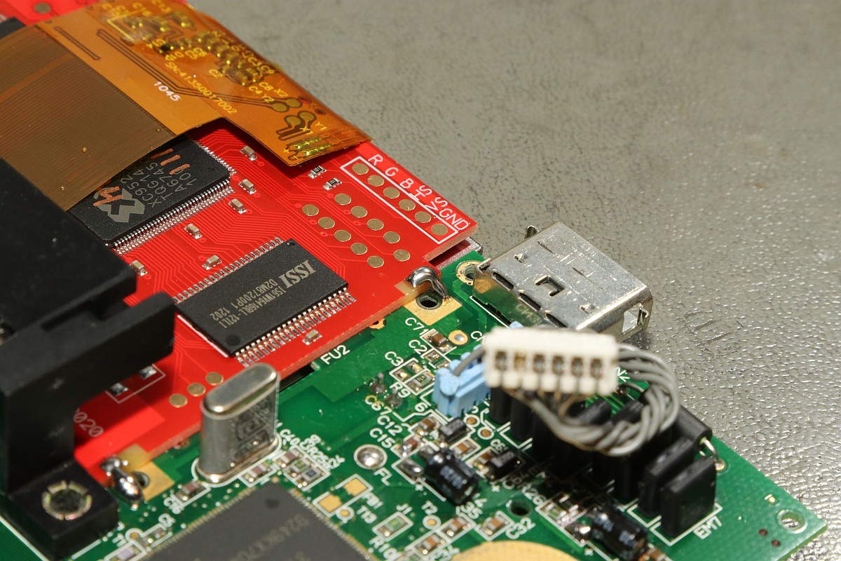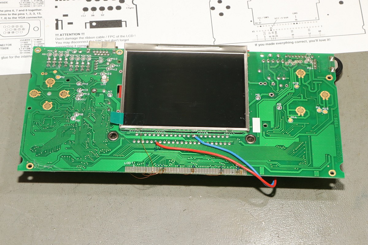 {McWill Sega Game Gear LCD Mod} Wenn ich für meinen Sega Game Gear etwas wirklich will, dann ist es von McWill! (Boah, war der Wortwitz flach...) Das Paket von Dragonbox ist da - superfix noch vor Weihnachten verschickt! Wirklich viel ist da ja nicht drin - aber das Schmankerl liegt im Detail. Eine ordentliche Anleitung auf Englisch, ein LCD-Modul (fertig verklebt) und ein VGA-Stecker für diejenigen, die sich ihr Gehäuse durchlöchern wollen... Das Display wird von einer Folie geschützt - die sollte man erst ganz am Schluss entfernen! Also frisch an's Werk - zwei Stunden Arbeitszeit sollte man schon einplanen, eine ruhige Hand, gute Augen und einen guten Lötkolben! Erst einmal muss das Mainboard samt LCD aus der Unterschale gelöst werden: Dann lötet man die Leuchtstoffröhre auf beiden Seiten aus und entfernt sie samt Reflektor. Hier ist in der Anleitung eine andere Reihenfolge angegeben, aber die halte ich nicht für sinnvoll! Das alte Display wird nach unten ausgeklappt und der Klebestreifen auf der Oberseite wird vorsichtig abgezogen. Die Klebereste vom Streifen kann man danach mit Benzin ablösen. Hier sollte man vorsichtig sein, nicht zu viel Gewalt auf das Flachbandkabel auszuüben, die Pads auf der Unterseite sollten alle dranbleiben! Jetzt dreht man das Mainboard um und zieht das Flachbandkabel vorsichtig (!) von den Lötpads ab. Das Zinn ist hier extrem weich und geht an den meisten Stellen ohne Löten ab - trotzdem reißen immer ein paar Leiterbahnen vom Flachbandkabel ab und bleiben auf den Pads haften. Die muss man nachher mit dem Lötkolben vorsichtig entfernen. Das LCD ist danach zwangsläufig Schrott - es gibt hier kein Zurück! Und wer zu stark rupft, reißt die Pads von der Platine, das wird dann auch sehr häßlich! Geduld du musst haben, junger Modder! Wenn alles gut geht, dann sieht das Ergebnis ungefähr so aus (ein unverbundenes Pad ist mir beim Verzinnen abgegangen - das geht echt fix!): Und wenn es dann komplett geputzt und mit viel Flux neu verzinnt ist, dann so: Das alte LCD ist Schrott - da können wir es uns ja noch mal genauer ansehen... Ein Citizen UC-320... gibt es nicht mehr zu kaufen und Datenblätter sind auch Fehlanzeige! Aber ich habe da mal ein Systembild von seinem größeren Bruder UC-380 gefunden, daran kann man mal die Grundfunktion der meisten Anschlüsse des Displays erkennen... Die Chips sind auf das Glas gelötet - als BGA on Glass... Coole Technik, dass man das so genau ausrichten kann, fasziniert mich! Und unter der Polarisationsfolie versteckt sich das Geheimnis der Farbdarstellung - aufgedruckte Farbfilterstreifen! Hier in groß: Zurück zum Baseboard: jetzt müssen Brücken gesetzt und Bauteile entfernt werden - hier ist die Anleitung super genau - einfach daran halten, dann kann nichts schief gehen! Vier sehr kleine Widerstände werden entfernt und als Brücke ersetzt - nicht so einfach! Da sollte man schon Übung im Löten haben! Das fliegt alles raus: ...dann sieht das Baseboard so aus: Dann wird das Display eingeschoben und ausgerichtet... ...und mit Lötbrücken fixiert: So sieht das dann aus: Und von vorne: Jetzt beginnt das mühsame Löten von Verbindungskabeln. Auch hier ist die Anleitung etwas unpraktisch: man kommt nicht sehr gut an alle Lötpunkte des Displays dran, wenn es bereits im Baseboard verbaut ist - mit etwas Geschick geht das aber. Besser: Kabel vorher anlöten, dann Display einbauen! Als "Kabel" nehme ich hier gerne Fädeldraht mit lötbarer Isolierung - diese Drähte sind fein genug für die Aufgabe! Am alten LCD-Anschluss geht es nämlich sehr eng zu und Kurzschlüsse will man hier nicht haben! Sehr eng! Wenn man dann alles geschafft hat, möchte man vorher wissen, ob die Operation erfolgreich war - das geht auch bei offenem Gehäuse... Boah - sieht das gut aus! Und bei meinem Lieblingsspiel erst! Jetzt noch die eine Gehäusebefestigung abzwicken... ...und die Blechfedern entfernen (steht alles in der Anleitung!), dann kann der Game Gear wieder zusammengeschraubt werden! Das Ergebnis ist einfach irre! Nicht billig aber jeden Cent wert, meiner Meinung nach! Sodele, jetzt noch eine unzerkratzte Oberschale und mein Game Gear ist perfekt! |