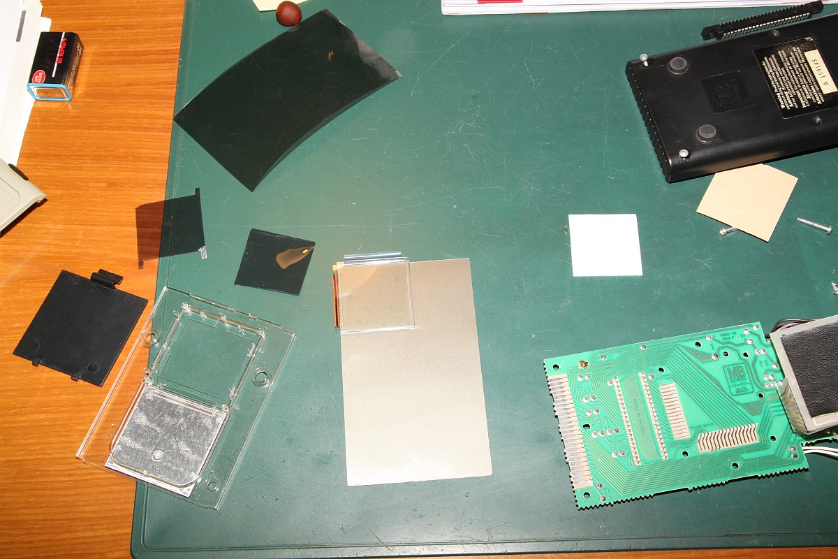{MB Micro Vision} Fuck Yeah, it's not Arcade. Aber es ist geil. Hab ich mir als Kind immer gewünscht. Und hey, ich hab's für 28 Euro geschossen. Entschuldigung für die Gossensprache, aber ich gfrei mi halt so sakrisch... ;-) {Dämpfer} Gut, in der Auktion stand "Defekt", aber das sieht jetzt schon komisch aus: abgesehen von üblen Wackelkontakten sieht das Display richtig gruselig aus: {Demontage} Hinter dem Display befindet sich eine Reflexionsfolie aus Alu, die im vorliegenden Modell völlig korrodiert war. Aber Vosicht! Es ist nicht nur Alufolie, es ist auch die hintere Polarisationsfolie! Also muss man die defekte Alufolie vorsichtig von der Kuststofffolie abziehen und die Kleberüberreste schön sanft mit Brennspiritus abwischen... {Wackelkontakte} um die massiven Wackelkontakte zu beseitigen, wähle ich meist den Glasfaserstifft. Er kennt keine Kompromisse in Bezug auf Oxydschichten. Wer öfter mit der Restauration von alter Elektronik zu tun hat, lernt ihn schätzen! {Re-Montage} Weil ich keine passende hochreflektive Alufolie zur Hand hatte, habe ich den billigen Weg gewählt: einfach einen hochweißen Papieraufkleber zurecht geschnitten und auf den rückwärtigen Schaumstoff geklebt, das tut's zur Not auch erst mal. Es ist nicht so gut wie das Original, man kann aber spielen. Und Vorsicht auch bei der Montage der flexiblen Tastaturfolie!!! Diese geht zwar leicht raus, aber um sie wieder rein zu bekommen, muss man die Blechfeder an den rückwätigen Laschen umbiegen und das Konstrukt dann gewaltfrei wieder montieren. Ach, die alten Zeiten... Gottseidank konnte ich mir das damals nicht leisten, das Gameplay wird doch rasch ein wenig, äh, eintönig... {Reflektiv} Endlich ein abschließendes Update! Aus der Firmen-Schrottkiste konnte ich ein großes gebrochenes reflektives LCD greifen. Mit einem Heißluftfön habe ich die Folien vorsichtig abgezogen (ein Ceranfeld-Schaber hilft, um den Anfang zu finden) und erhielt eine hoch-Reflektive Rückfolie und eine dazu passende Frontfolie. Da der Kleber unbeschädigt war, konnte man die zugeschnittenen Stücke auch prima fixieren. Das Ergebnis ist traumhaft... |