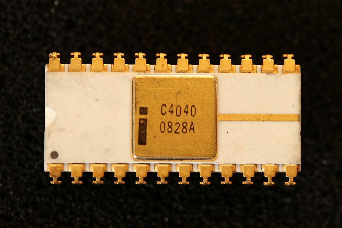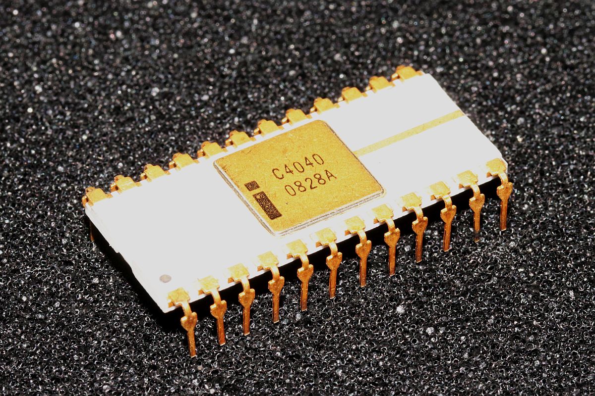 {Der Intel D4040} Der Nachfolger des 4004 in der dunklen Keramikvariante: mehr Befehle, mehr Programmspeicher, mehr Register und jetzt auch mit Interruptfähigkeit. Trotzdem nur 4 Bit... Es war noch ein weiter Weg bis zum Pentium. ;-)