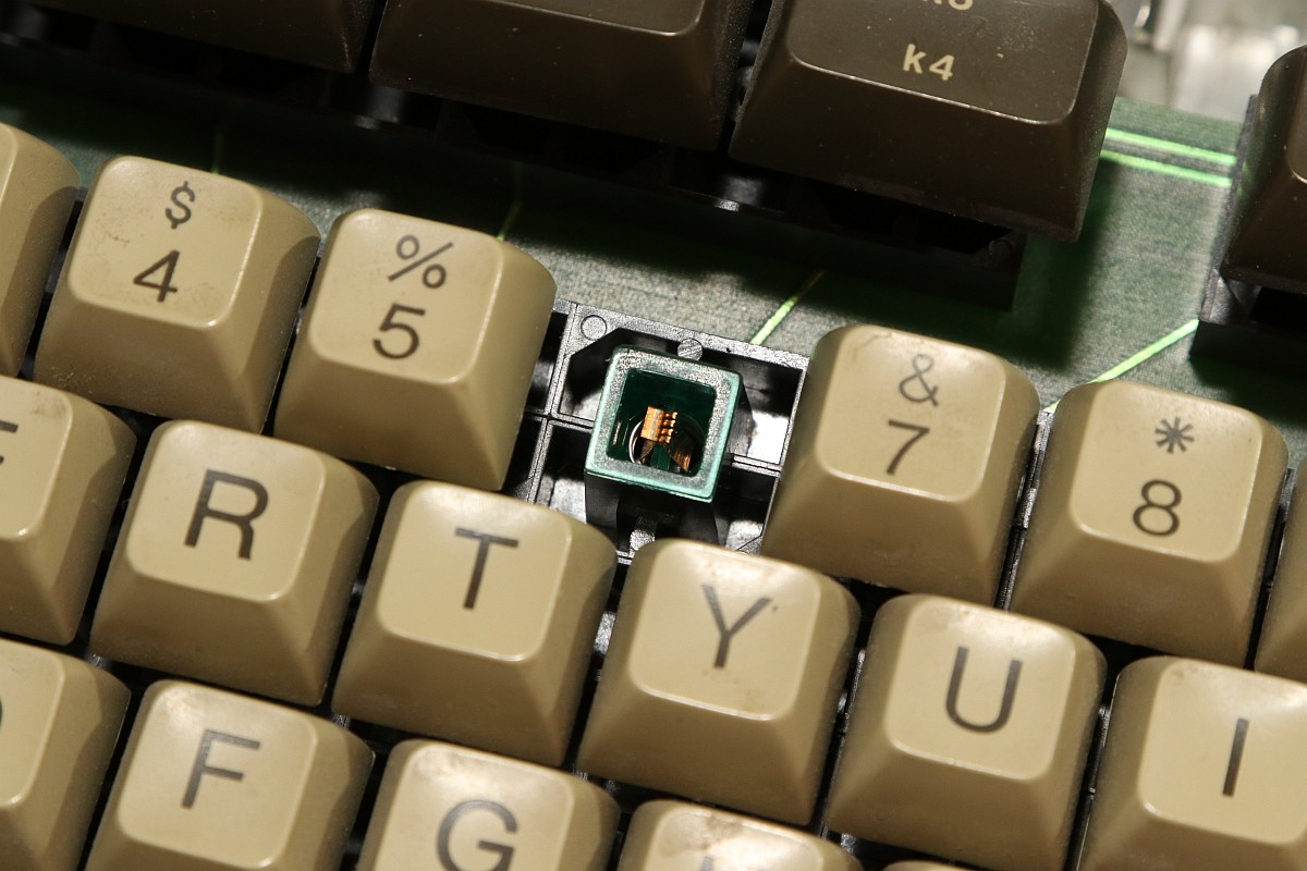 {HP-85 - Keyboard} Ach die HP-85 Tasten... Putzteufel stellen schnell fest, dass die Demontage aller Tastenkappen zu Reinigungszwecken mehr schadet, als nützt...