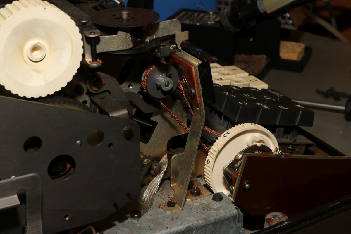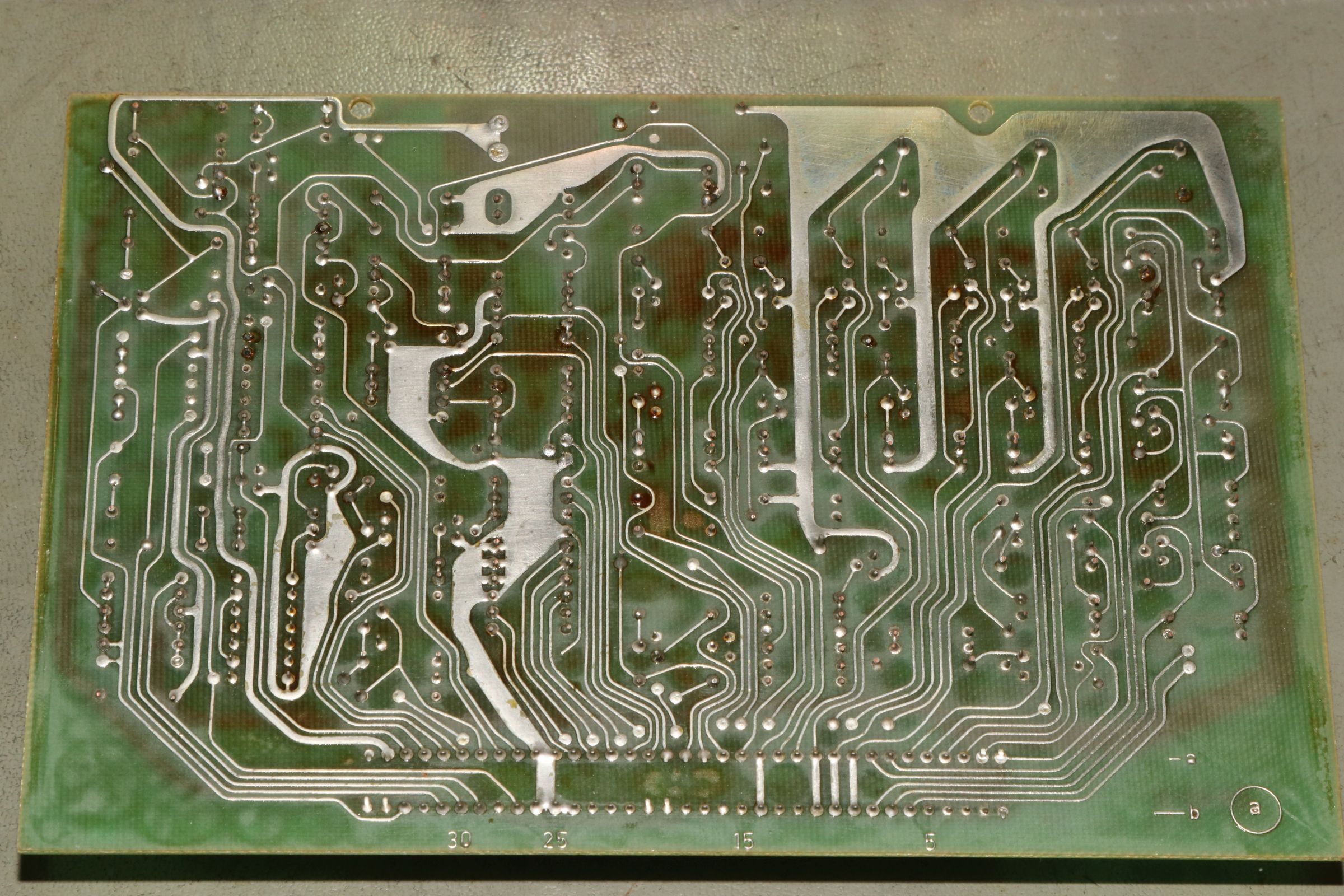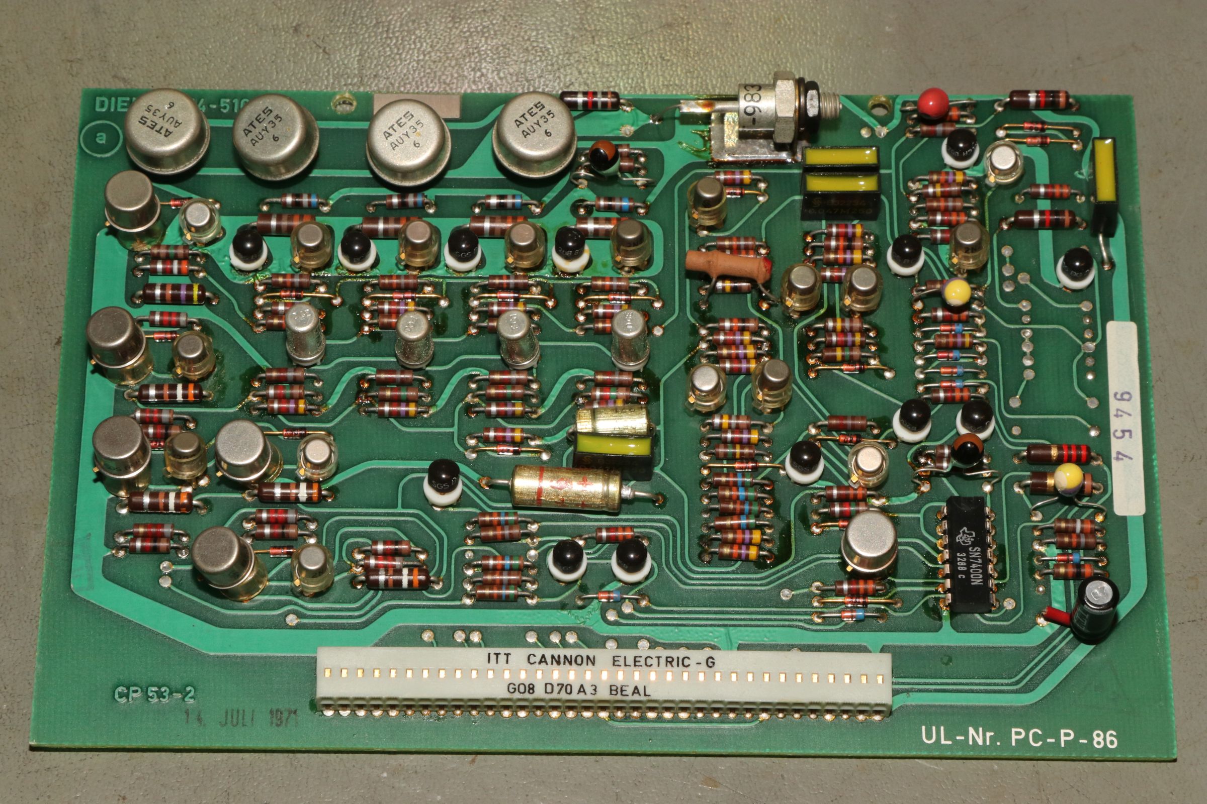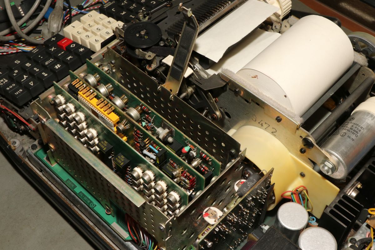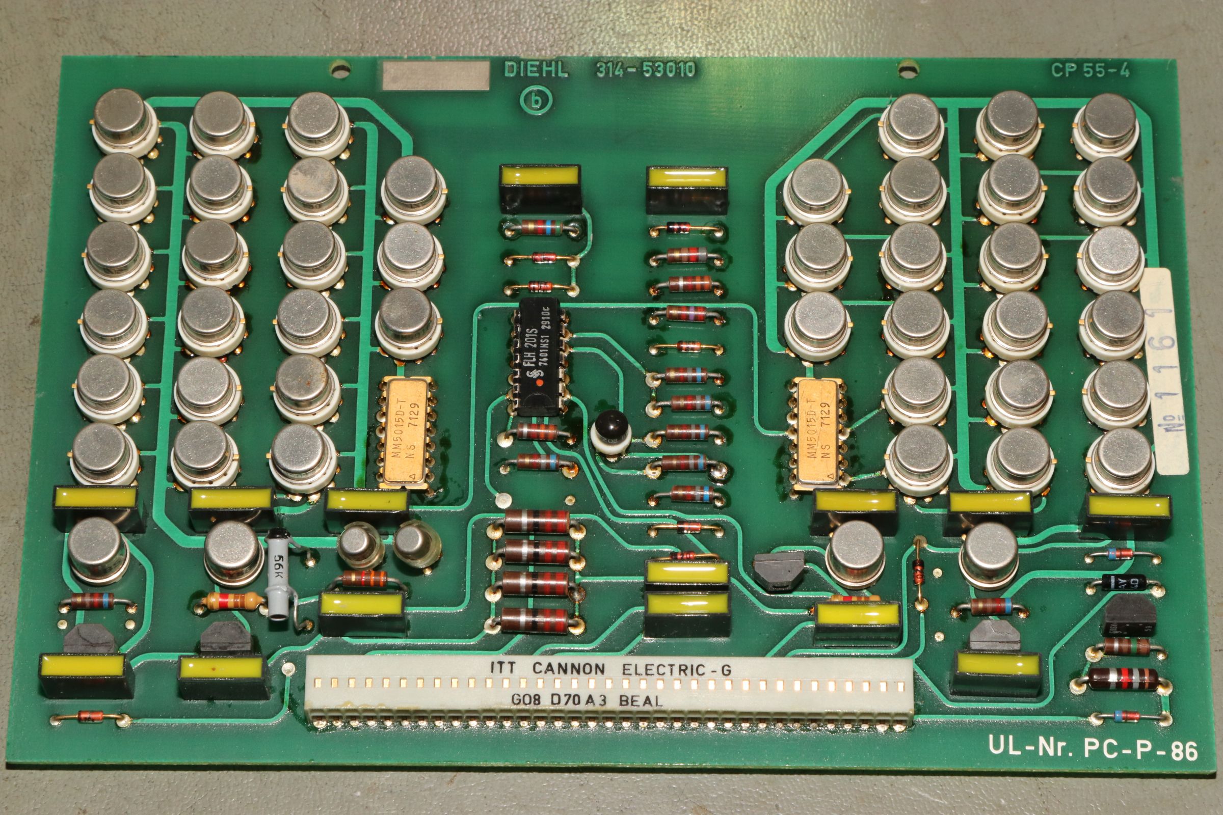{Diehl Algotronic} Die Diehl-Geschichte geht weiter: hier ist die Diehl Algotronic! Eigentlich sieht sie auf den ersten Blick wie die Combitronic aus, aber das täuscht... Ich finde diese erhabenen Logos einfach schön... Das lässt sich sicher sauber kleben... Ja, die Algotronic unterscheidet sich schon erheblich. Der Boot-Lochstreifen besitzt zwei Datenspuren. Hier werden ja auch mehr Funktionen benötigt, die in Software bereit gestellt werden müssen! Ach ja, das alte Diehl-Gummiproblem... Die Lese-Lichtschranke ist jetzt natürlich für drei Spuren ausgelegt: Der Dezimalstellen-Zahnriemen ist natürlich auch wieder verrottet. Die Elektronik ist irgendwie anders... Klar: die Algotronic verwendet nun keinen Laufzeitspeicher mehr, sondern eine gewaltige Batterie von Schieberegisterspeichern. Dafür gibt es eine dritte Logikplatine. I/O- und CPU-Platine sind fast gleich geblieben, die Speicherkarte steckt vorne... Alle Platinen haben einen neuen Steckverbinder spendiert bekommen, die Einzelstecker waren wohl doch nicht so praktisch in der Bestückung. Nachteil: die Karten lassen sich nicht mehr in älteren Maschinen verwenden. Hier in hochauflösender Pracht: die Speicherplatine. Die Bausteine MM5015 (triple 60+4 Bit) und MM5016 (512 Bit). Hier in hochauflösender Pracht: die CPU-Platine. Hier in hochauflösender Pracht: die I/O-Platine. Und die Tastatur ermöglicht ganz neue Rechenmöglichkeiten! (Wenn die Kiste denn je funktionieren sollte...) Jetzt muss ich erst mal zum Sanitärfachhändler, Hahnscheiben für den Antrieb besorgen... |
